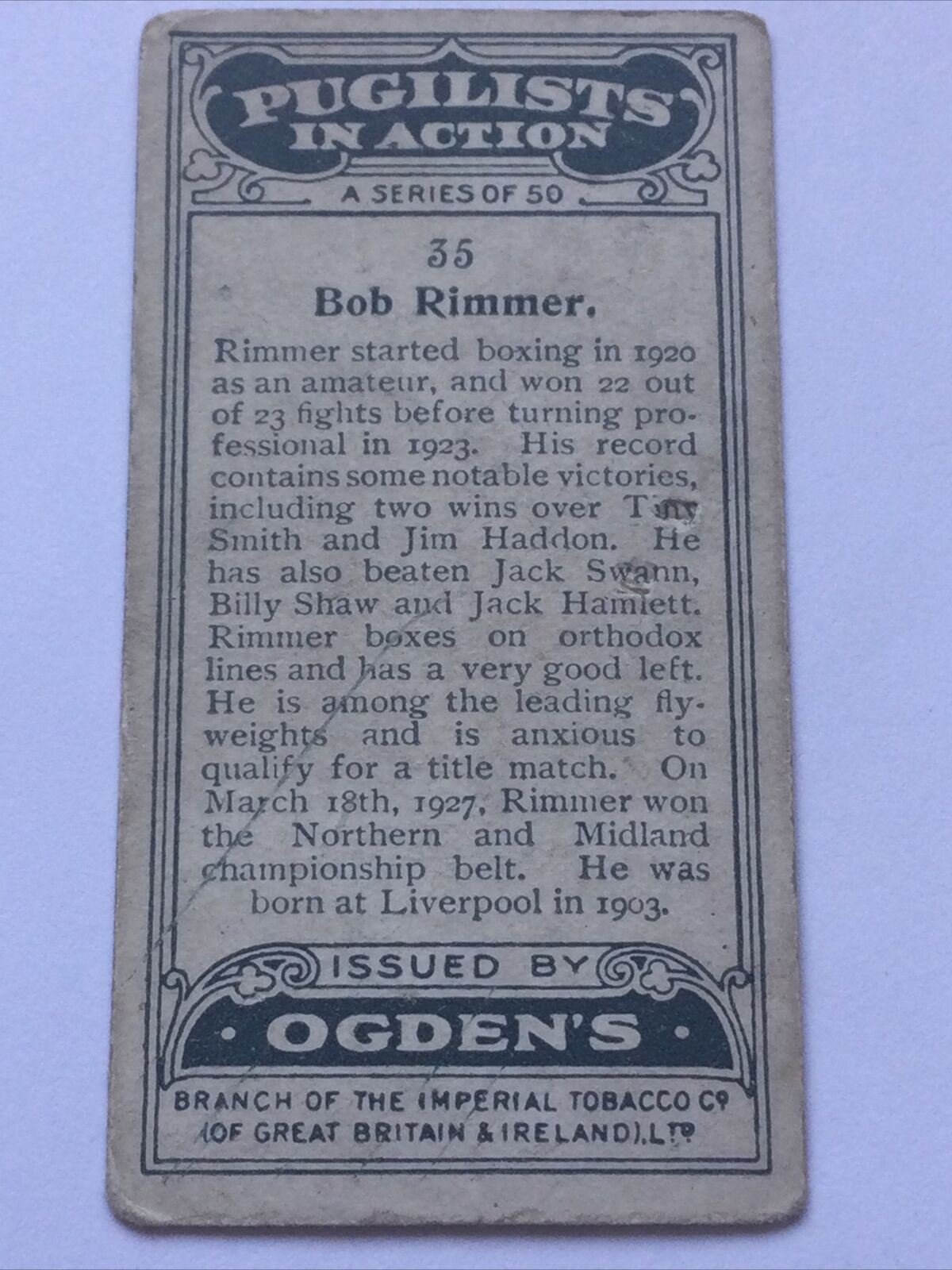 BOB RIMMER VINTAGE CIGARETTE CARD Ogden’s PUGILISTS IN ACTION #35 1920s Boxing