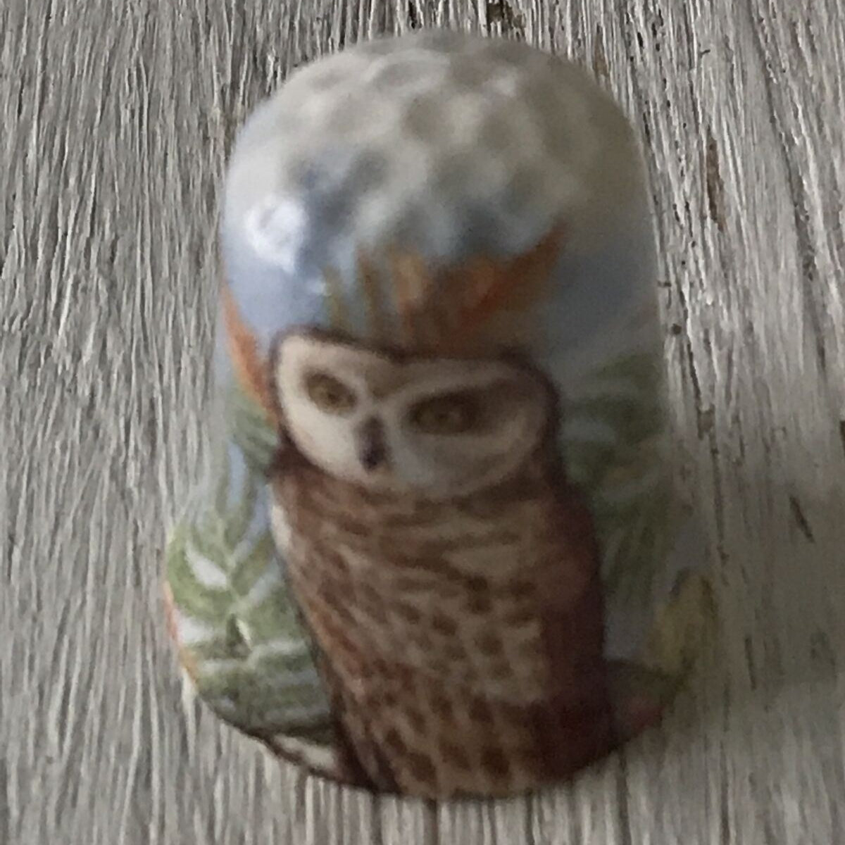 Bone China Thimble - Owl - Bird Design - The Thimble Guild - Rim slightly damaged - see photos
