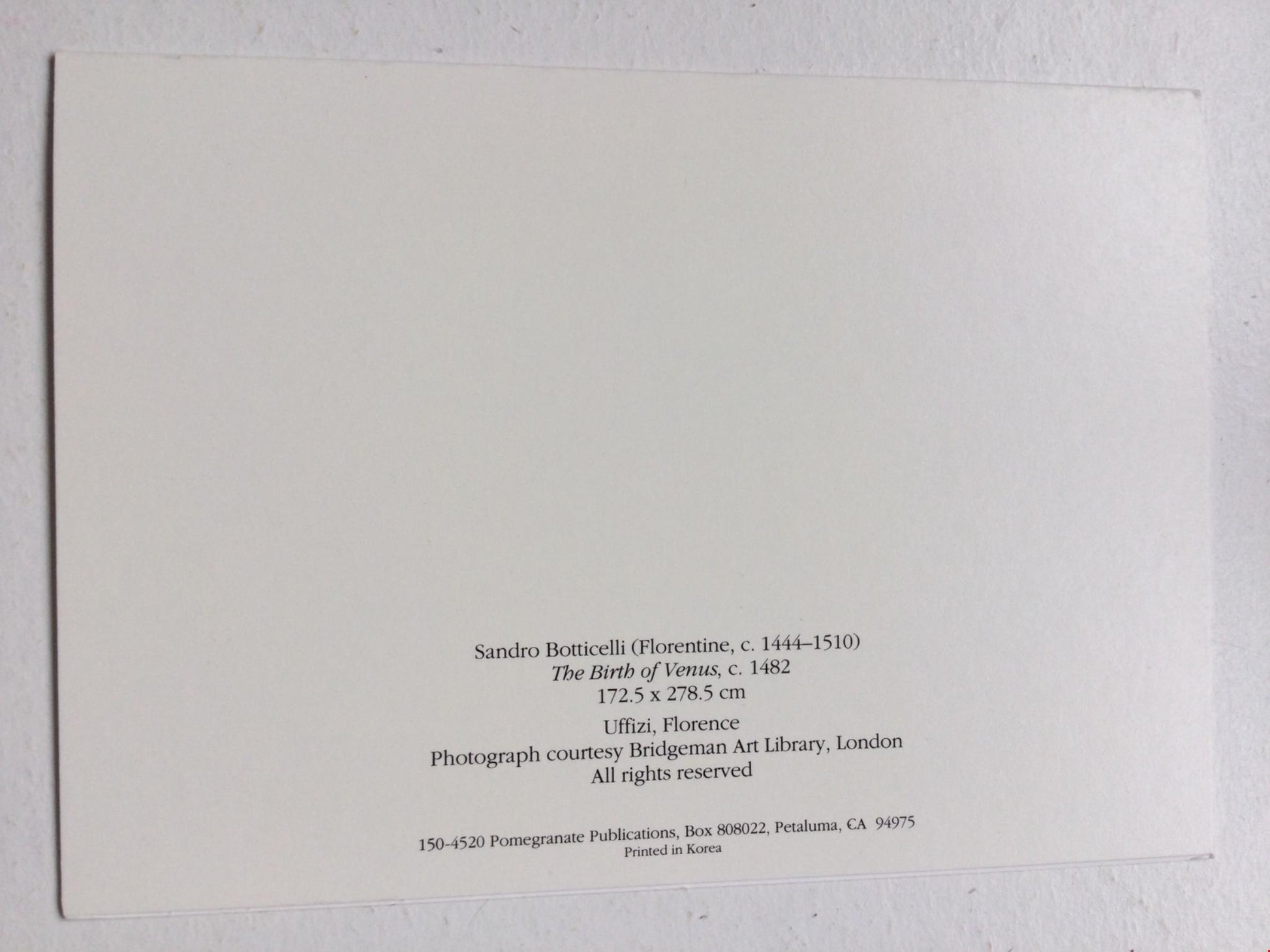 BOTTICELLI THE BIRTH OF VENUS c1482 Blank Card, No Envelope