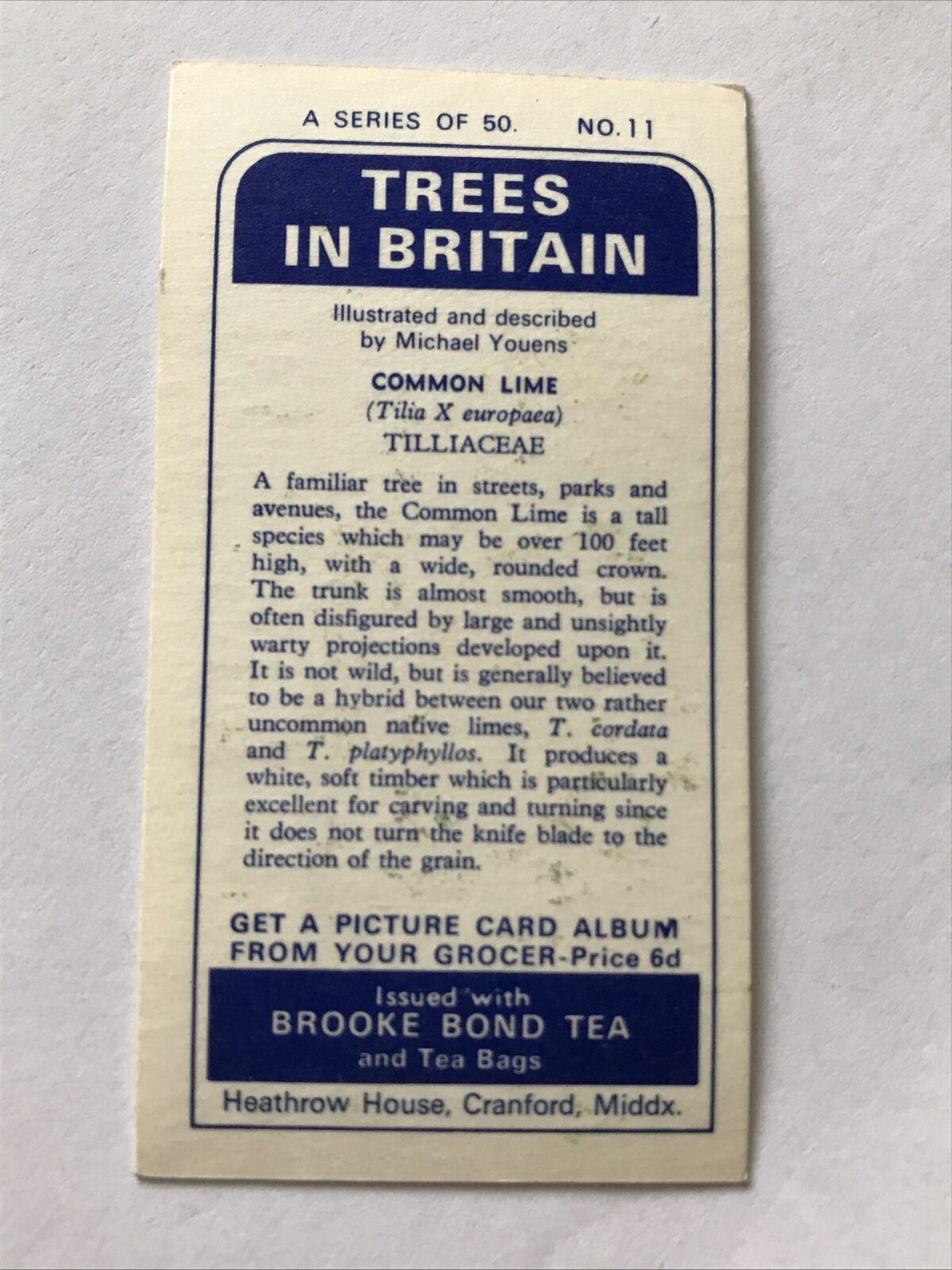 Brooke Bond Tea Card Trees In Britain No 11 Common Lime 1960s Collectable