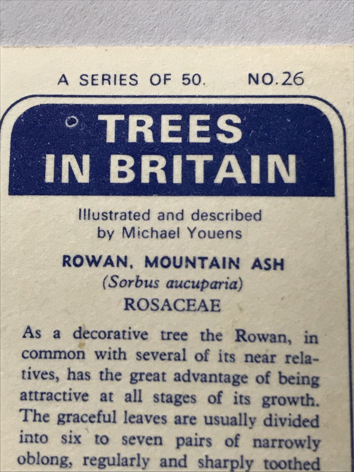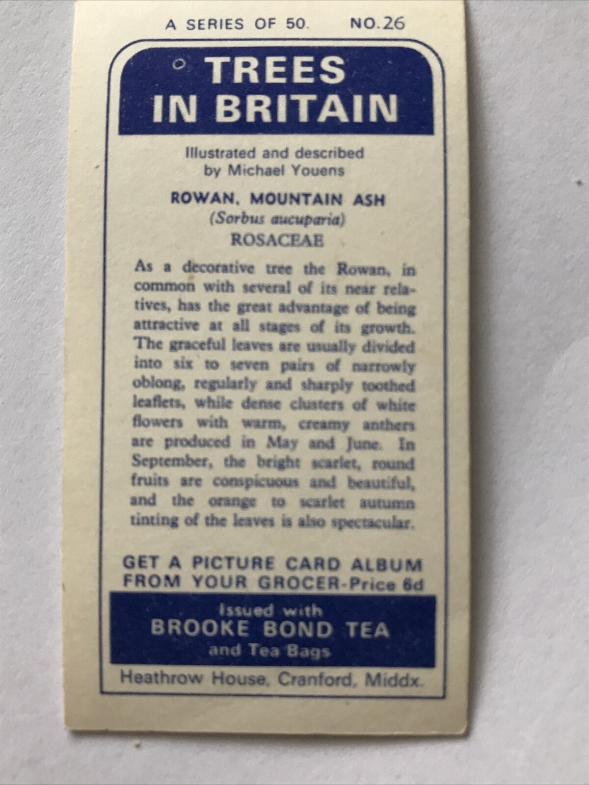 Brooke Bond Tea Card. Trees In Britain No 26. Rowan Mountain Ash 1960s Collectable