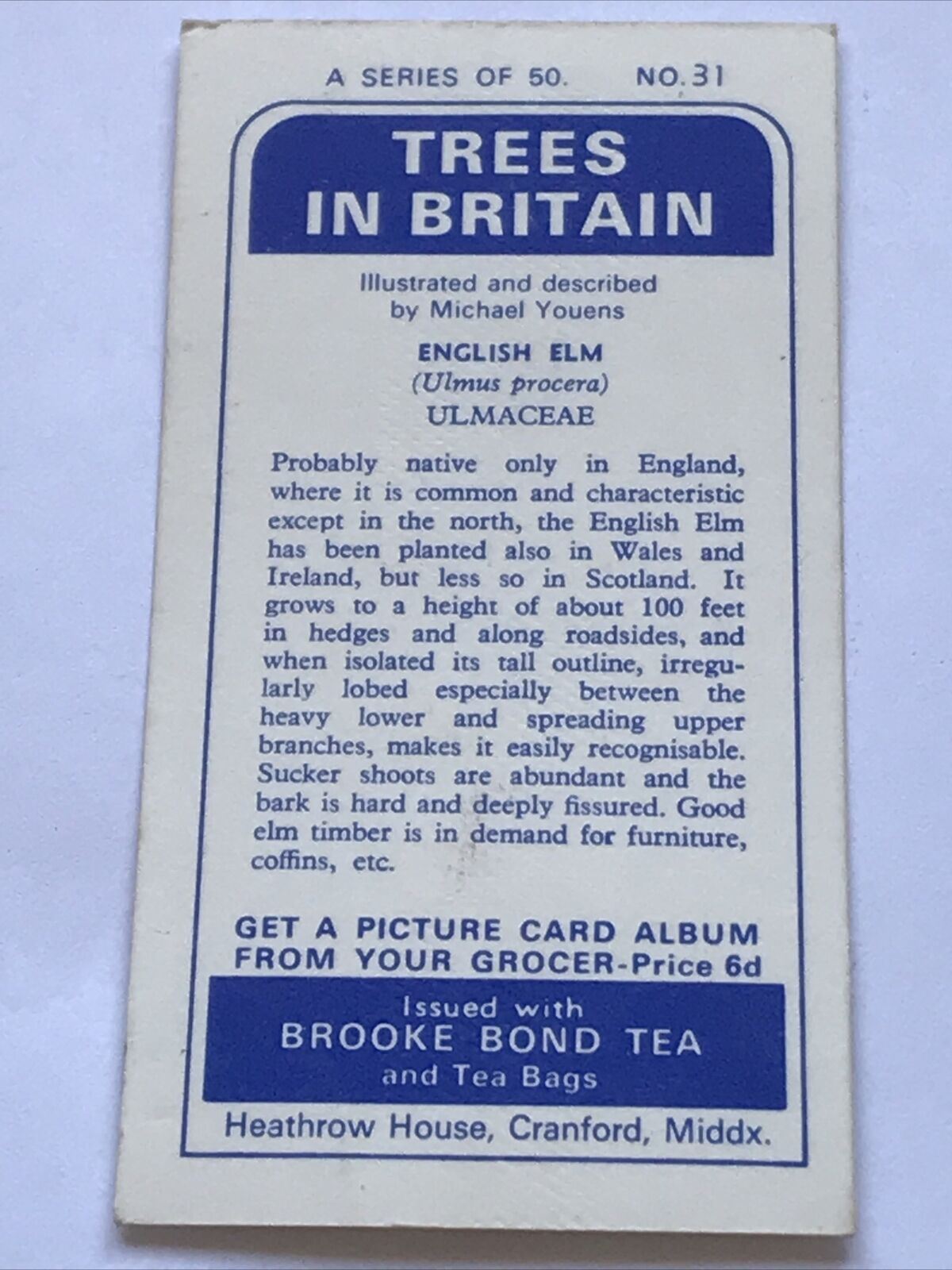 Brooke Bond Tea Card Trees In Britain No 31 ENGLISH ELM ULMACEAE 1960s
