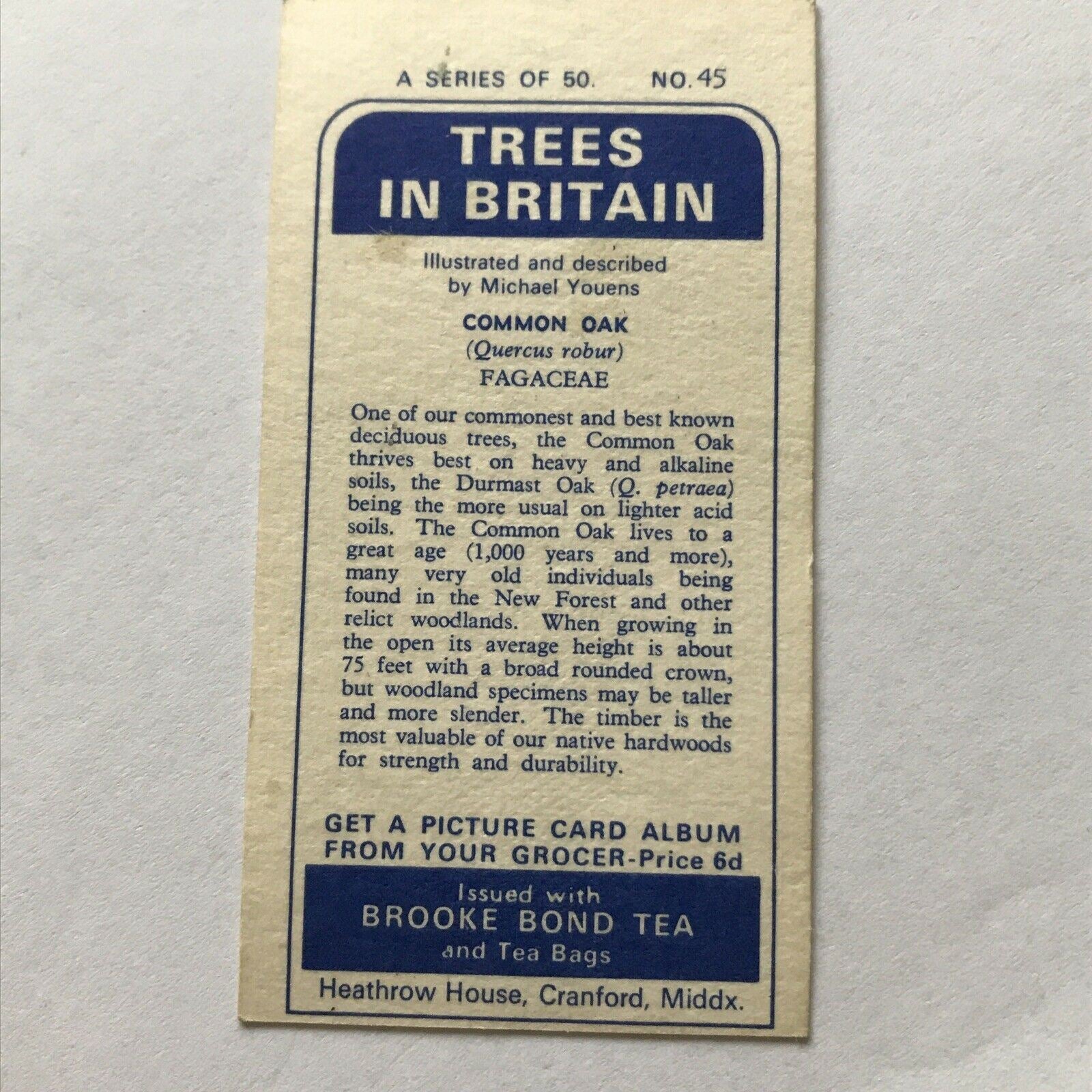 Brooke Bond Tea Card Trees In Britain No 45 Common Oak 1960s