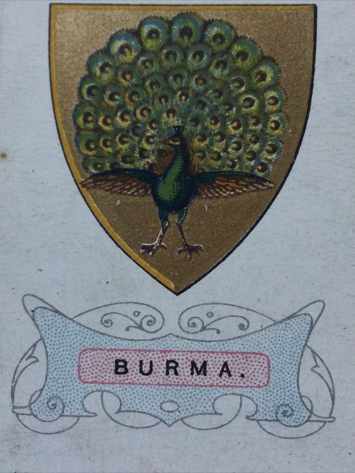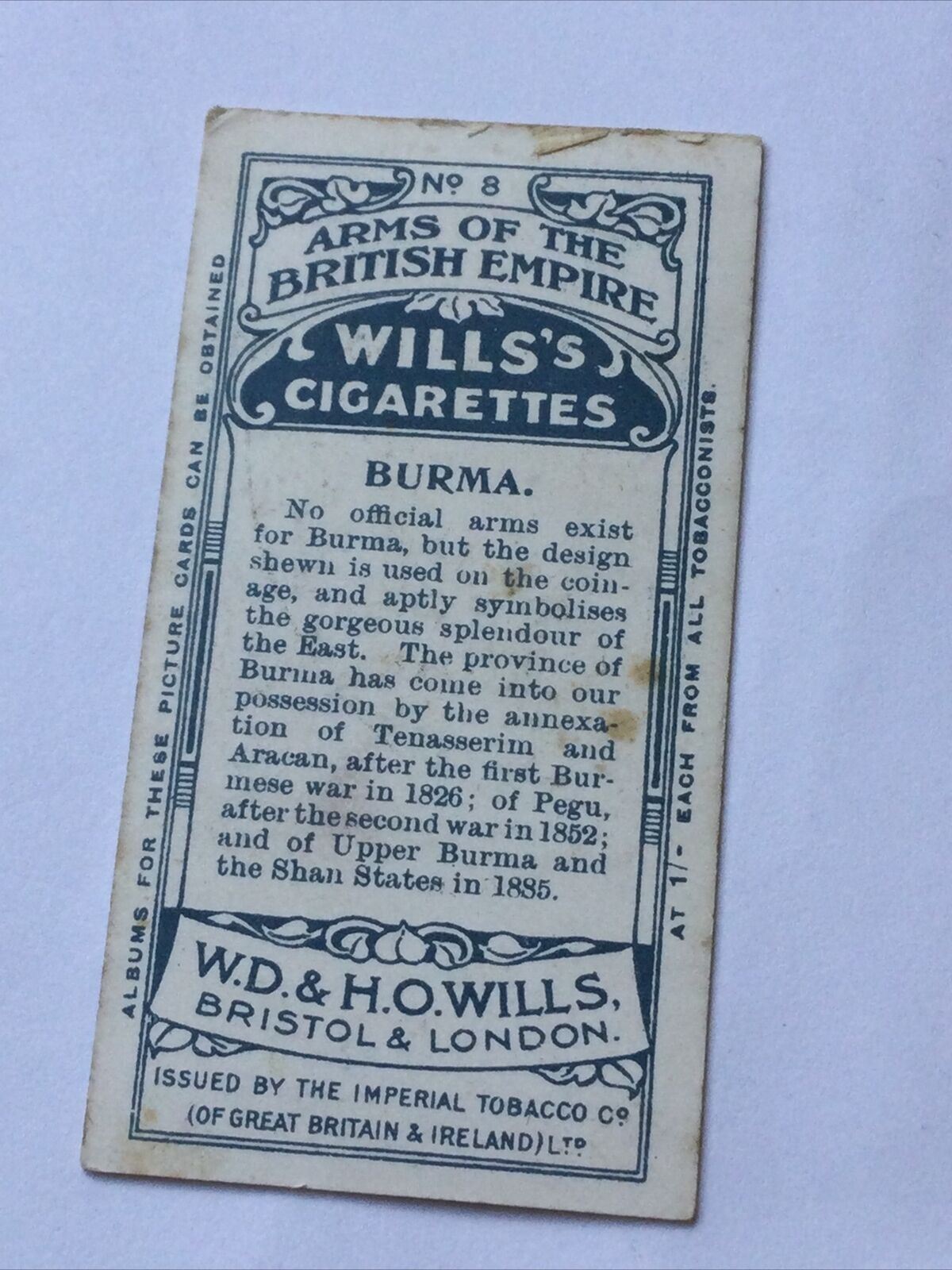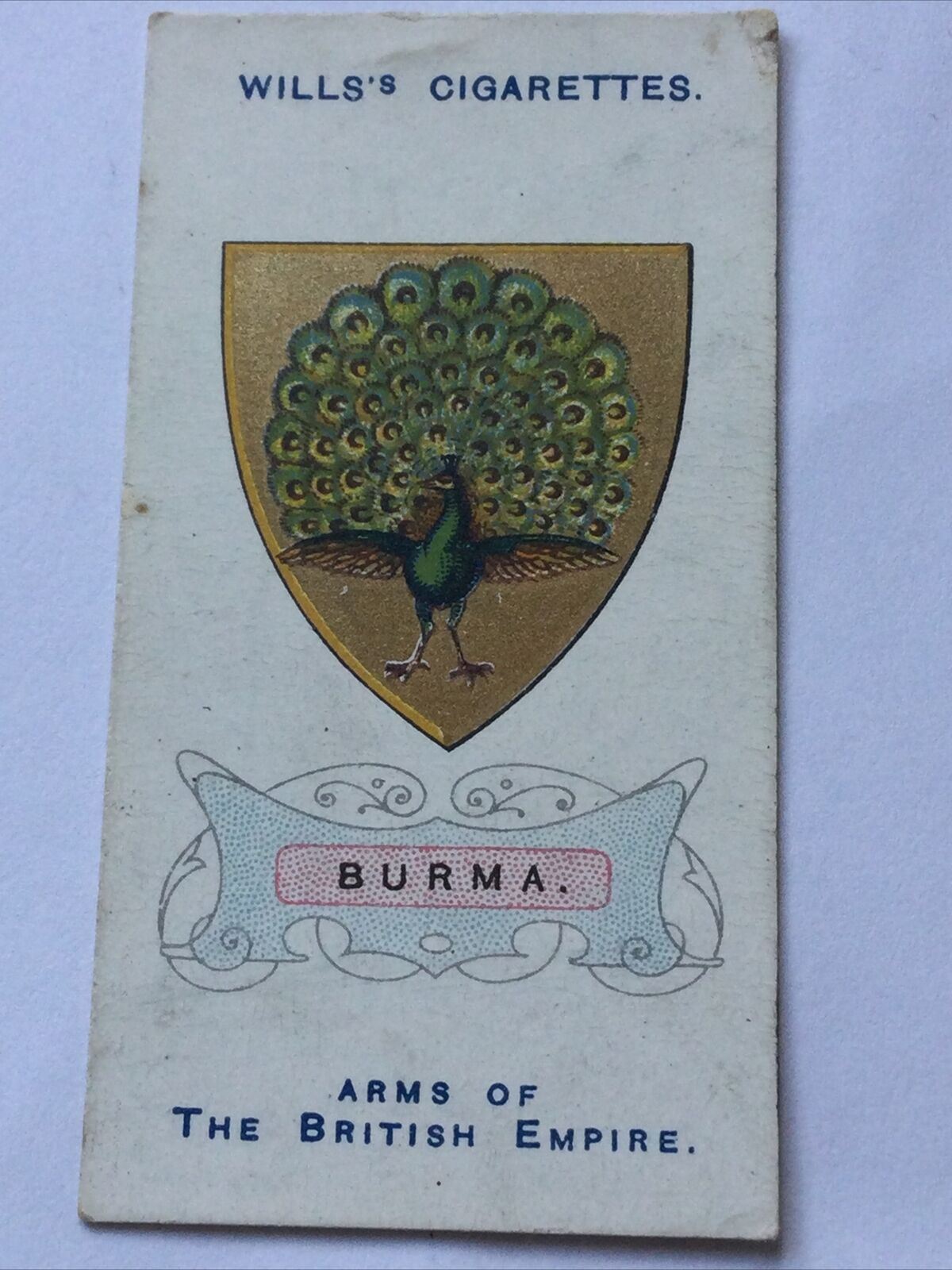 BURMA, WILLS CIGARETTE CARD #8 Arms Of The British Empire Peacock Design