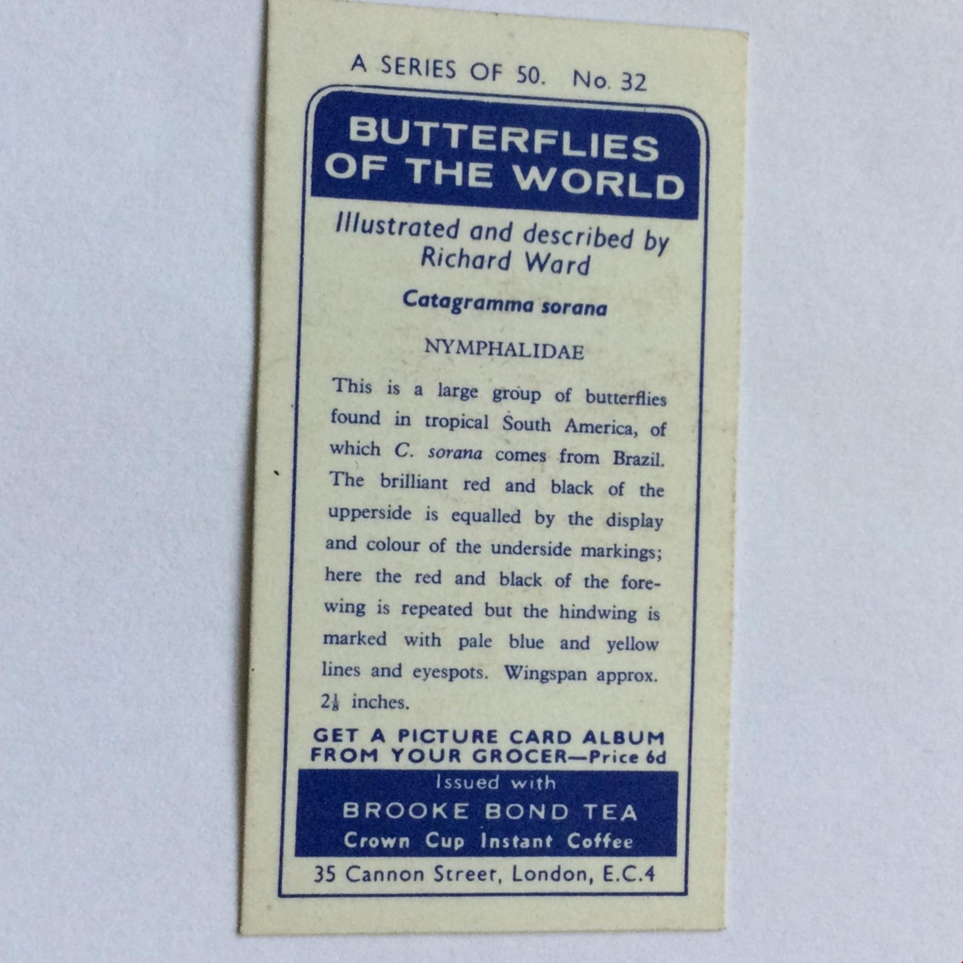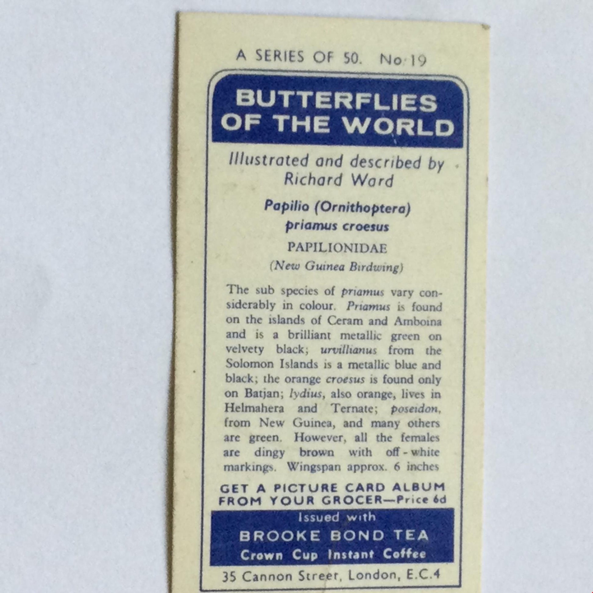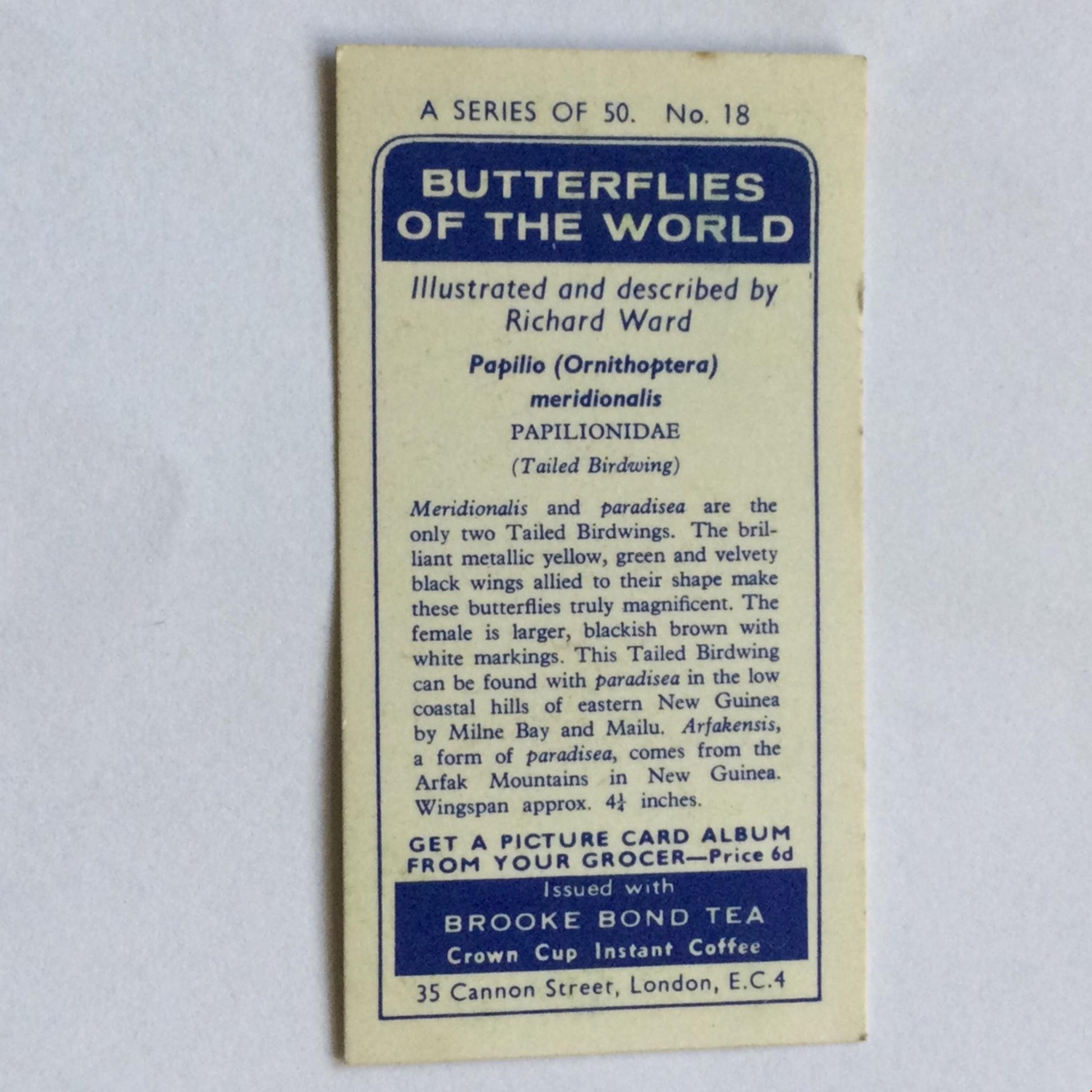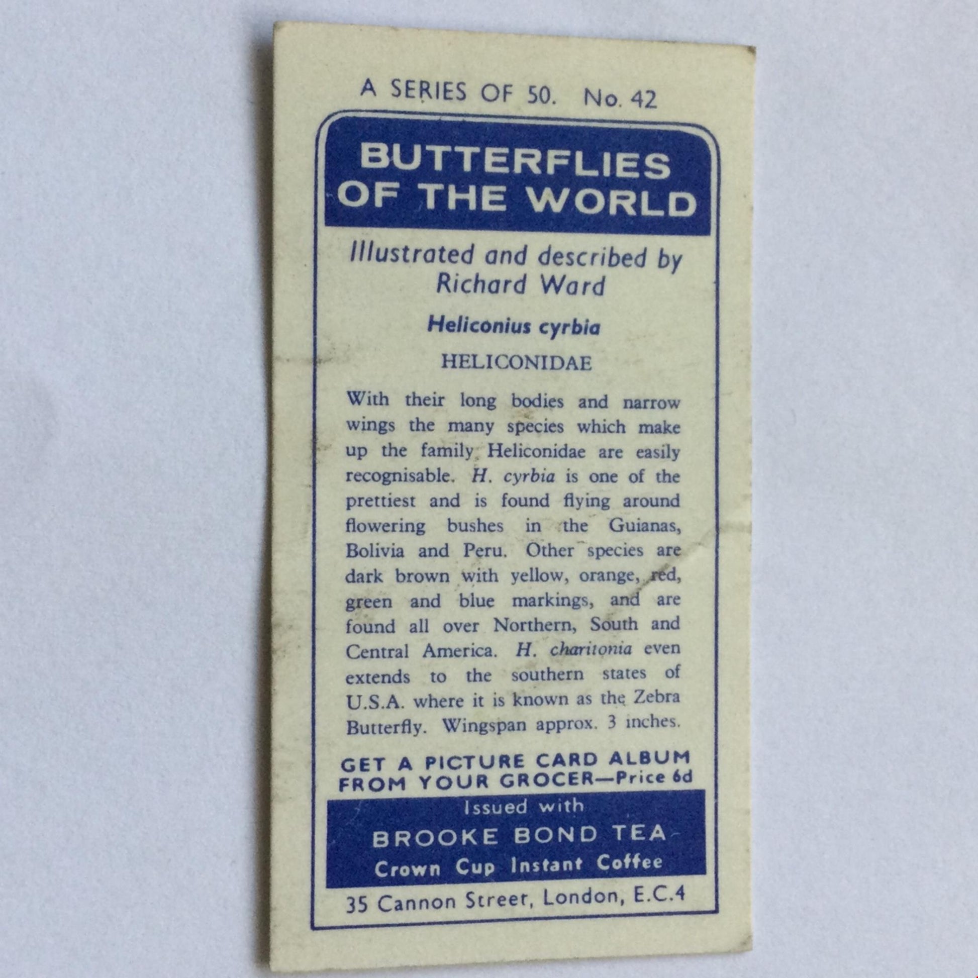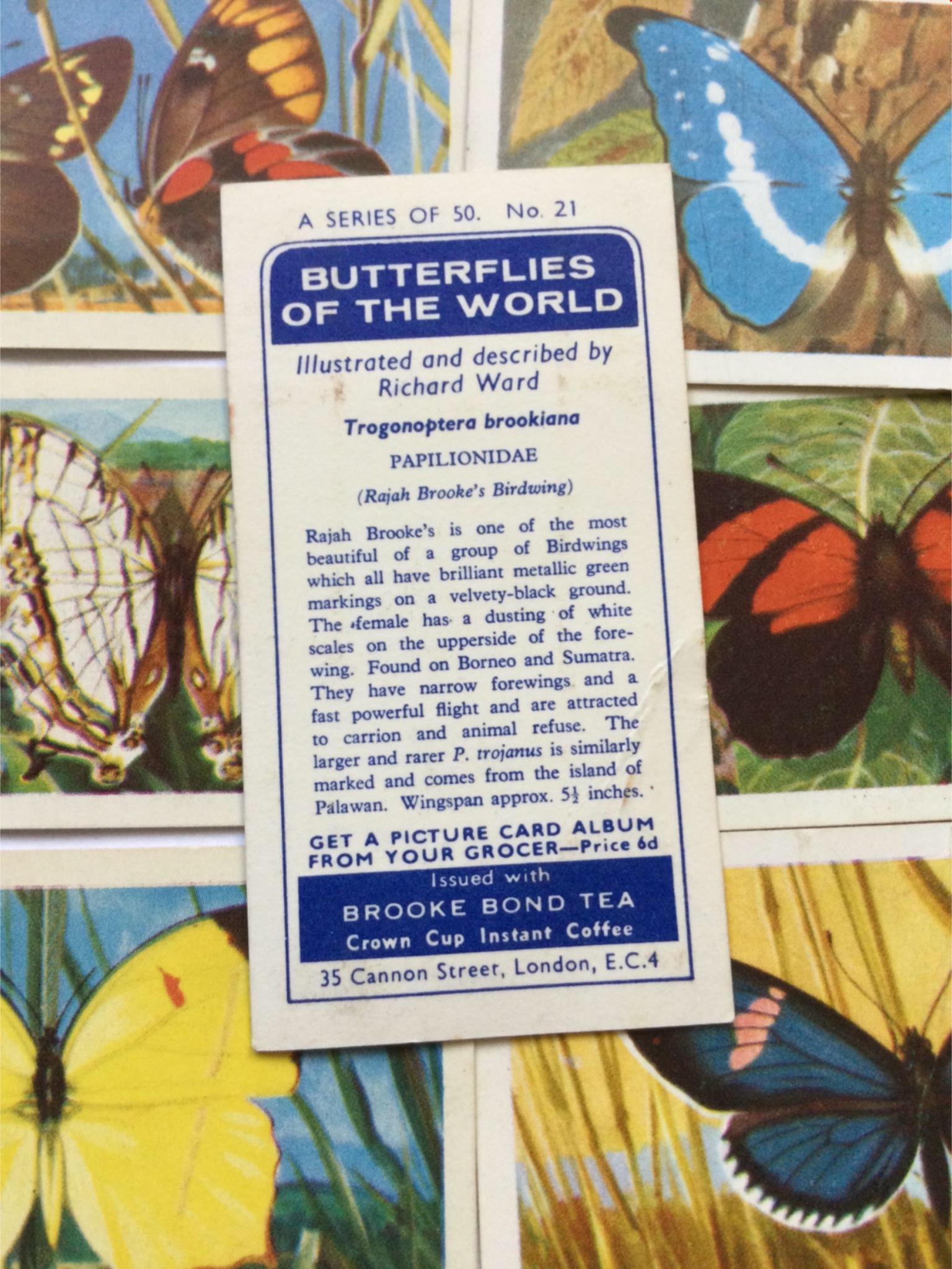 BUTTERFLIES OF THE WORLD- Brooke Bond Tea Cards- sold individually 1960s