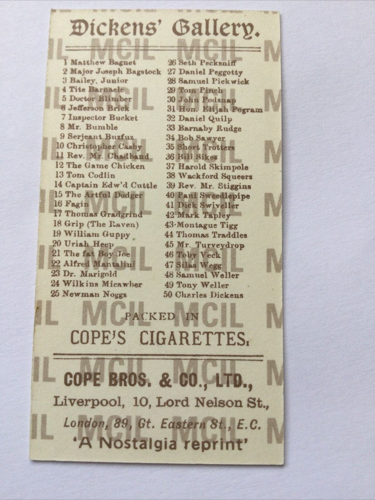CAPTAIN CUTTLE Dombey and Son. Dickens Gallery Cope Bros Cigarette Card #14 Nostalgia Reprint 1989