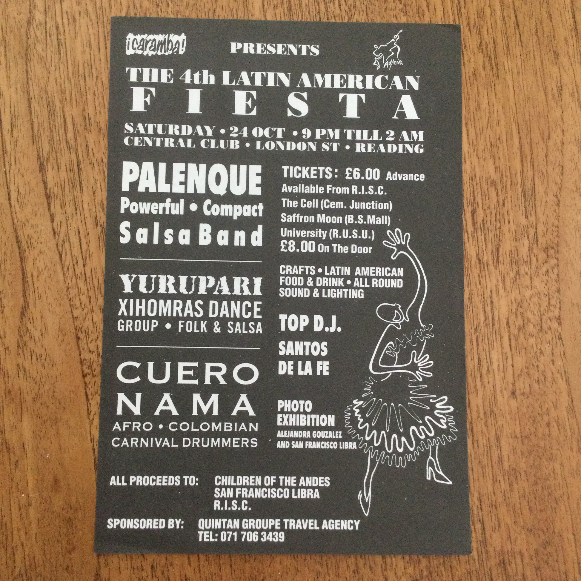 Caramba! Reading World Music Scene Memorabilia. 1990s 90s A5 Flyer. 4th Latin American Fiesta. Central Club