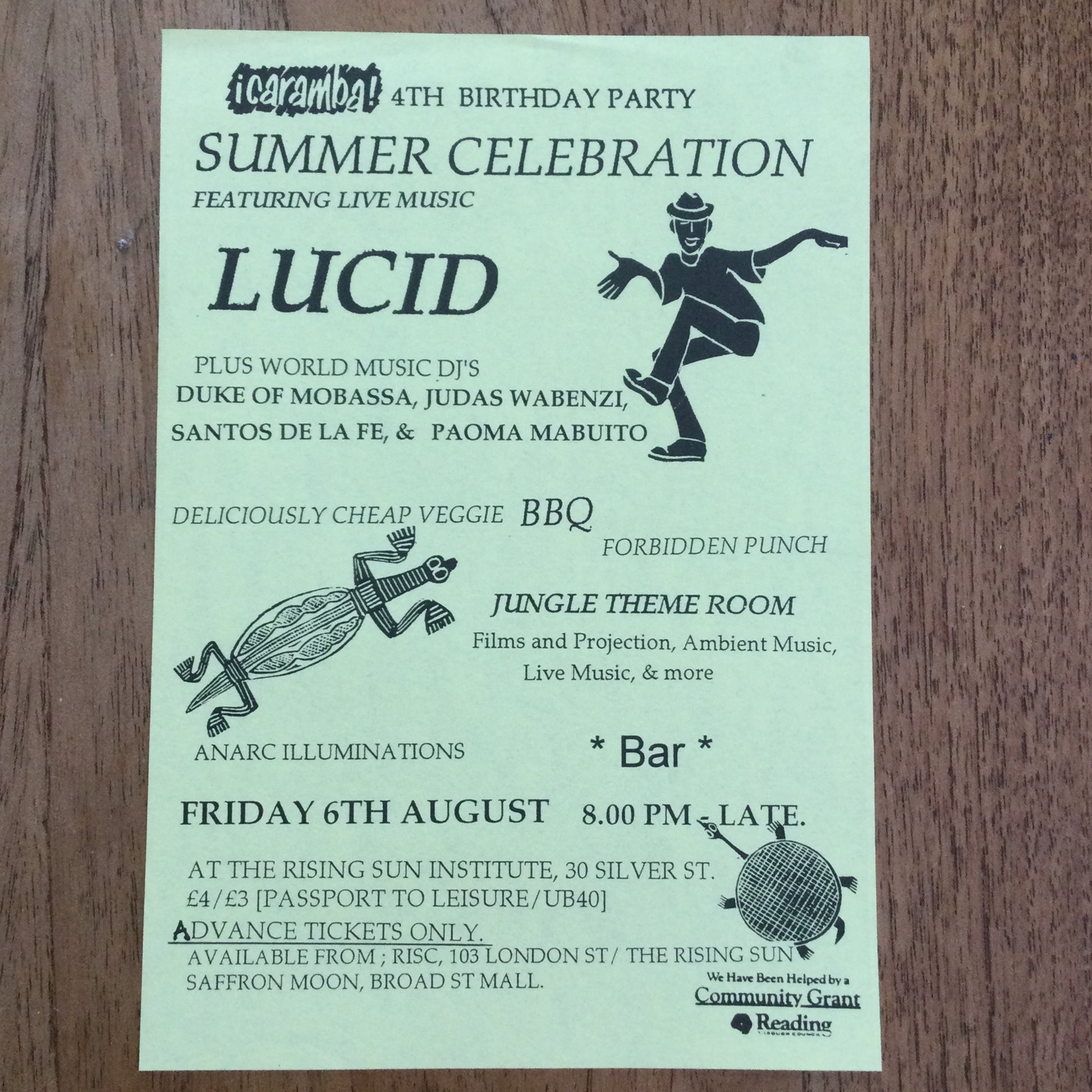 Caramba! Reading World Music Scene Memorabilia. 1990s 90s A5 Flyer Summer Celebration Lucid