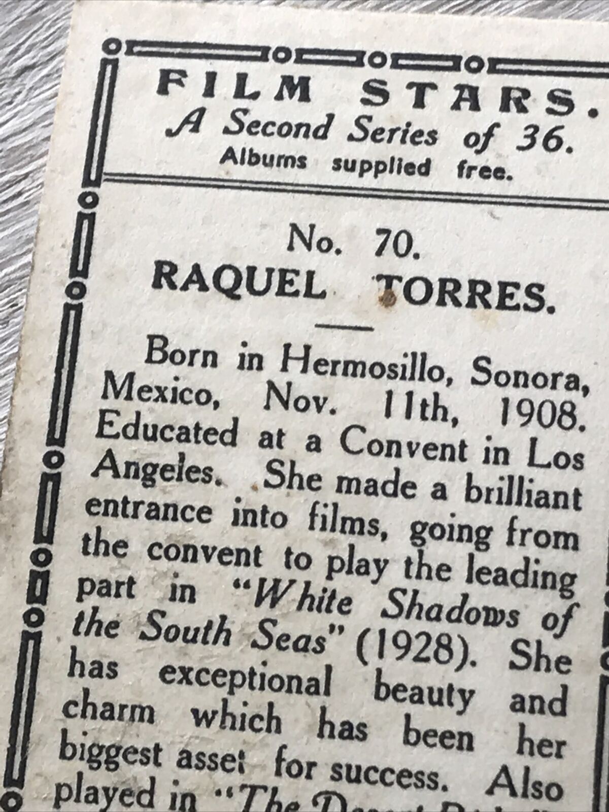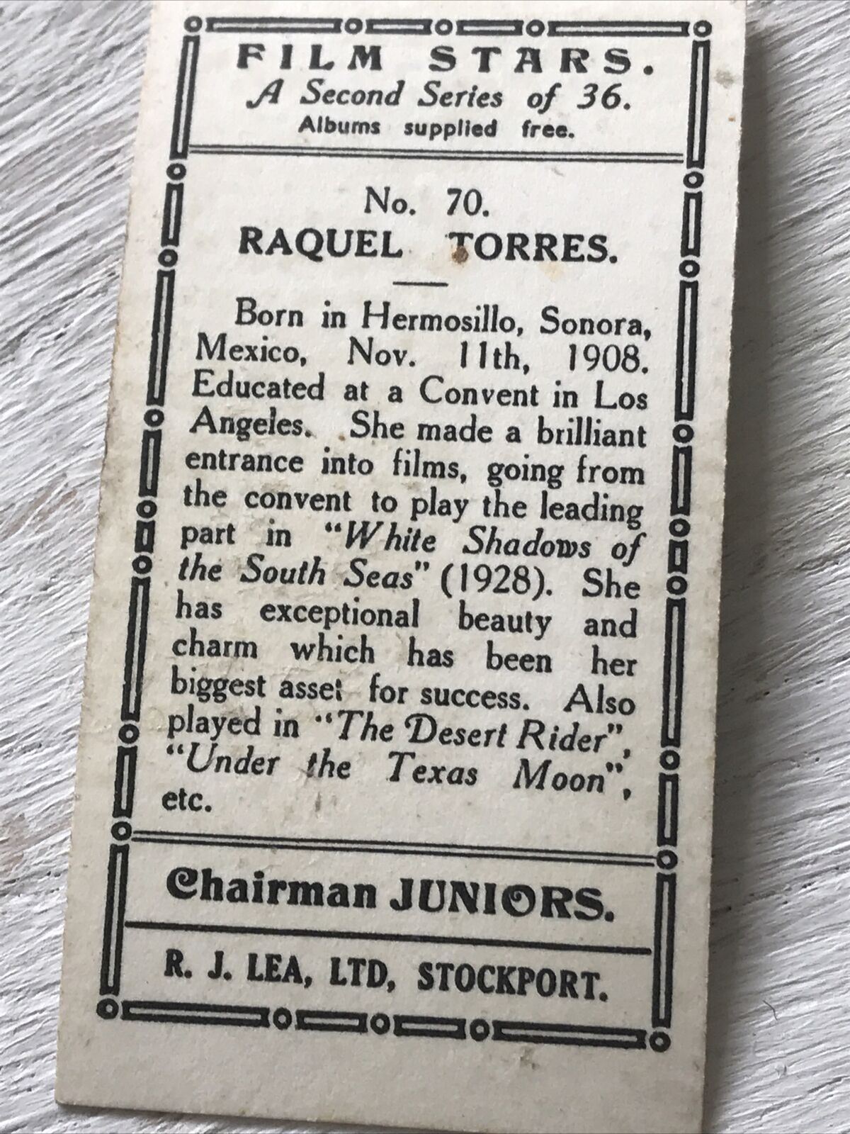 Chairman Juniors Cigarette Card Film Stars 70 Raquel Torres The Desert Rider