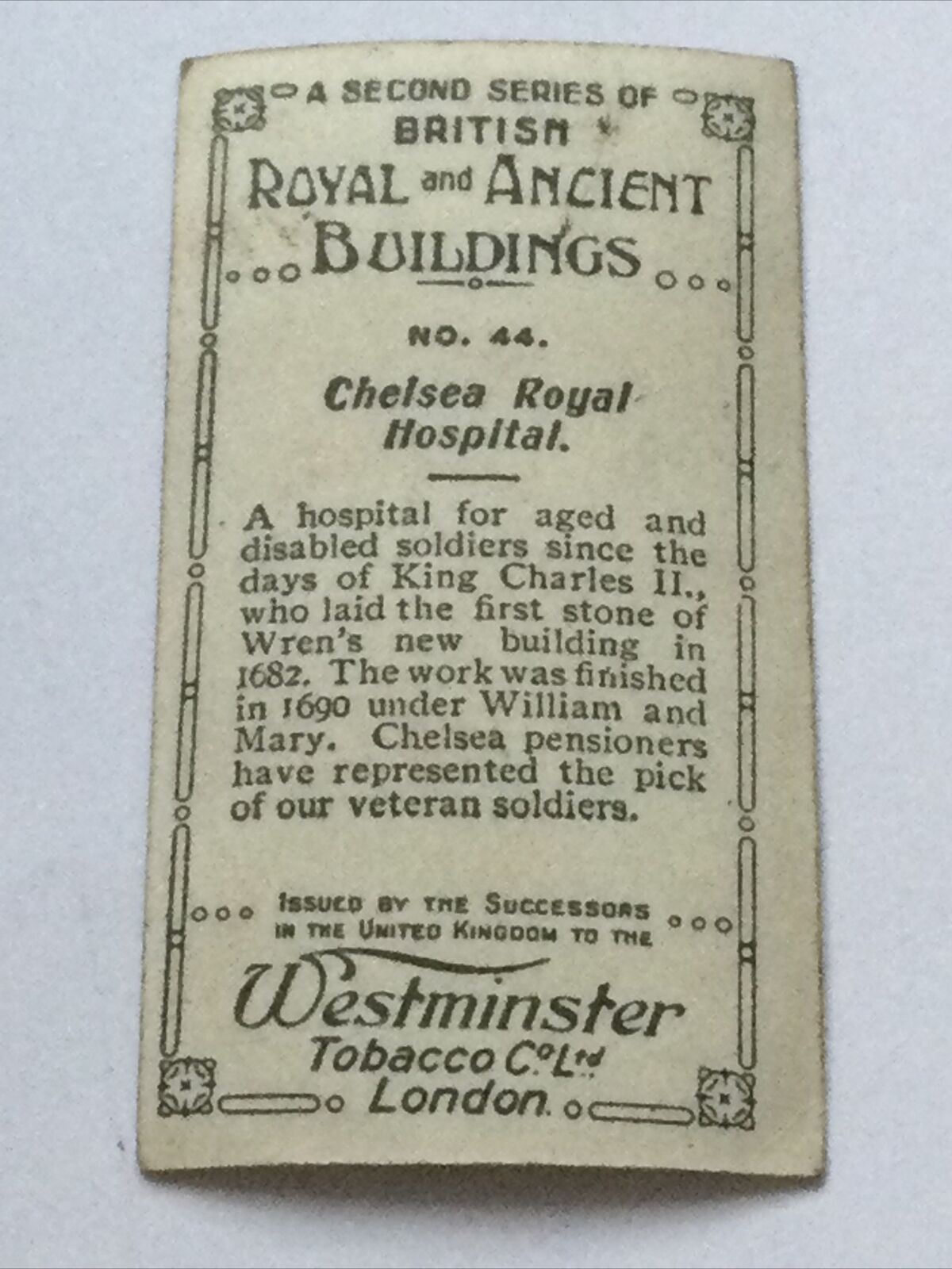 Chelsea Royal Hospital Vintage Real Photo Cigarette Card Westminster Royal & Anc.