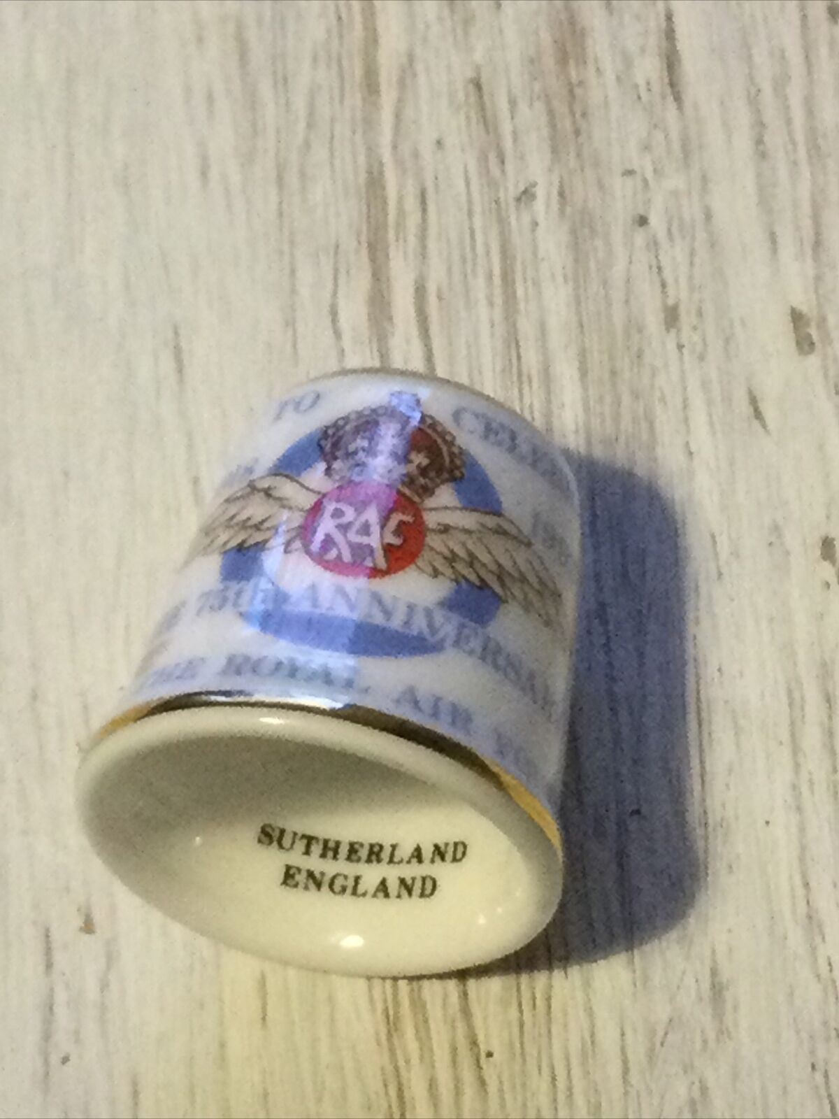 China Thimble 75th Anniversary Of Royal Air Force. Sutherland.. Condition is "Used". Dispatched with Royal Mail 2nd Class.