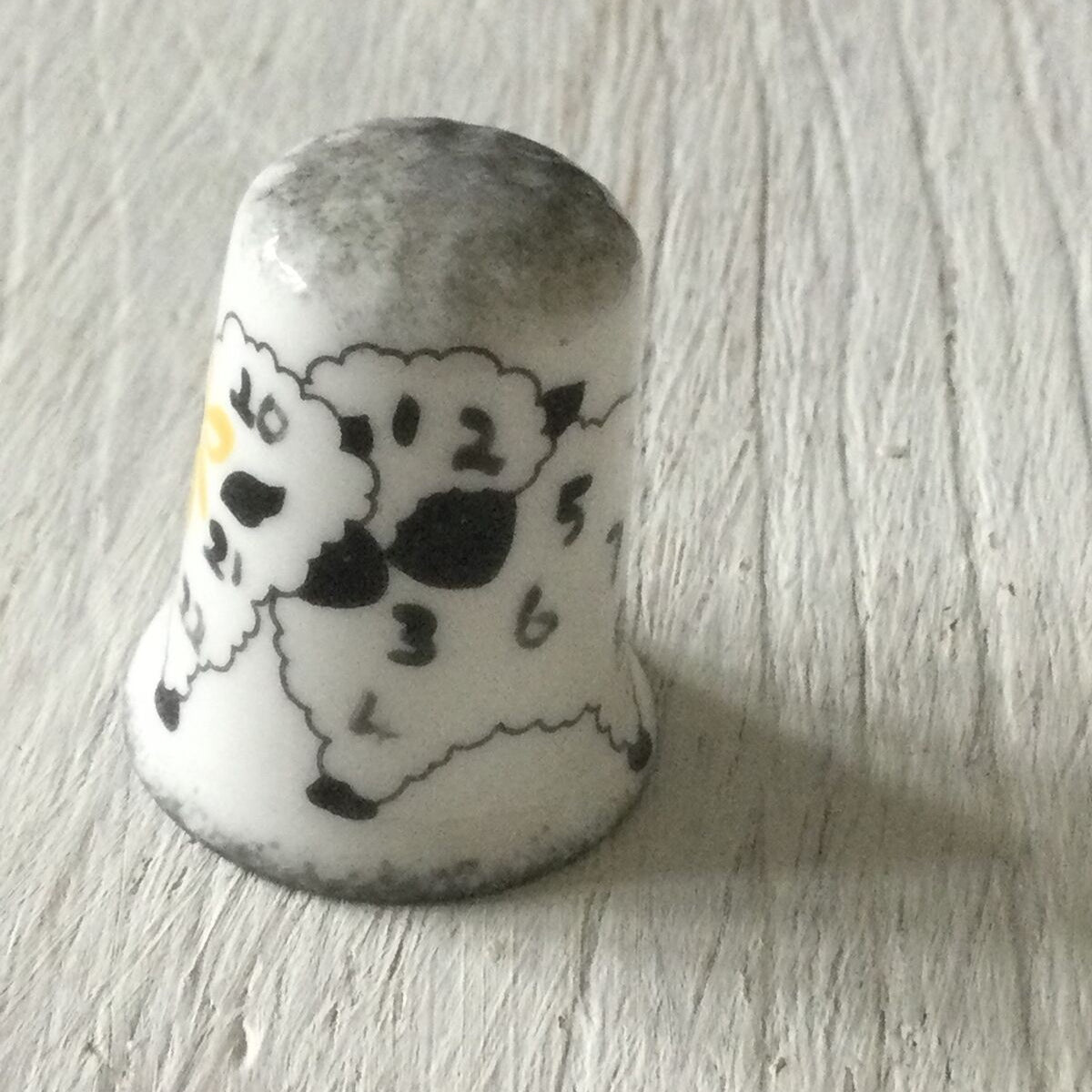 Vintage China Thimble. Sheep With Numbers. Staffordshire England. 'Counting sheep'