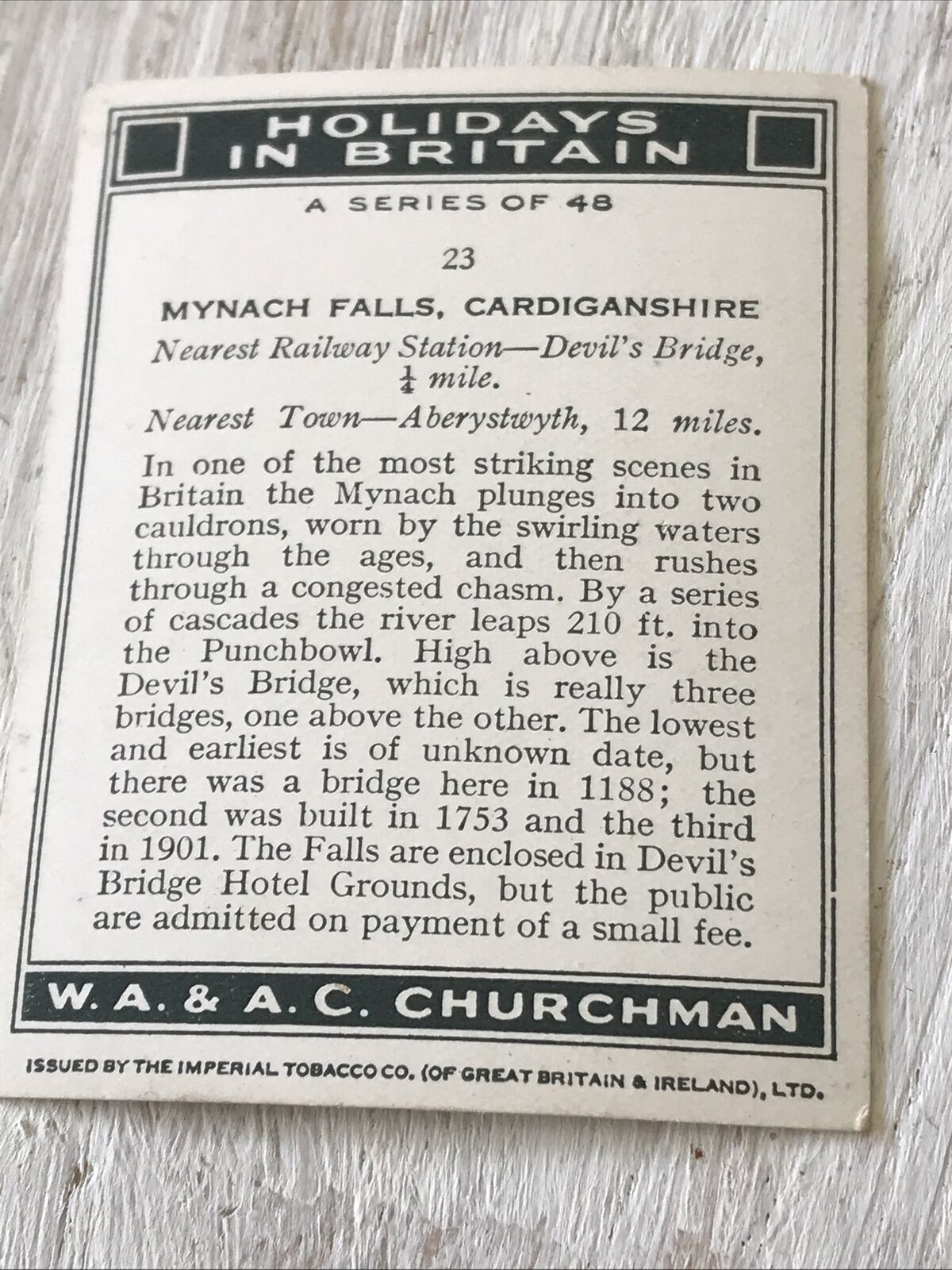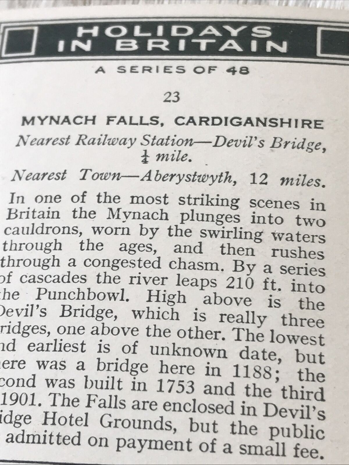 Churchmans Cigarette Card Holidays In Britain 23 Mynach Falls Cardiganshire