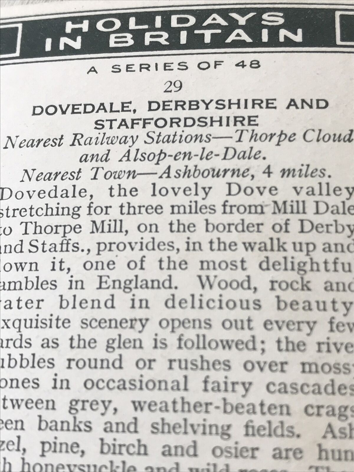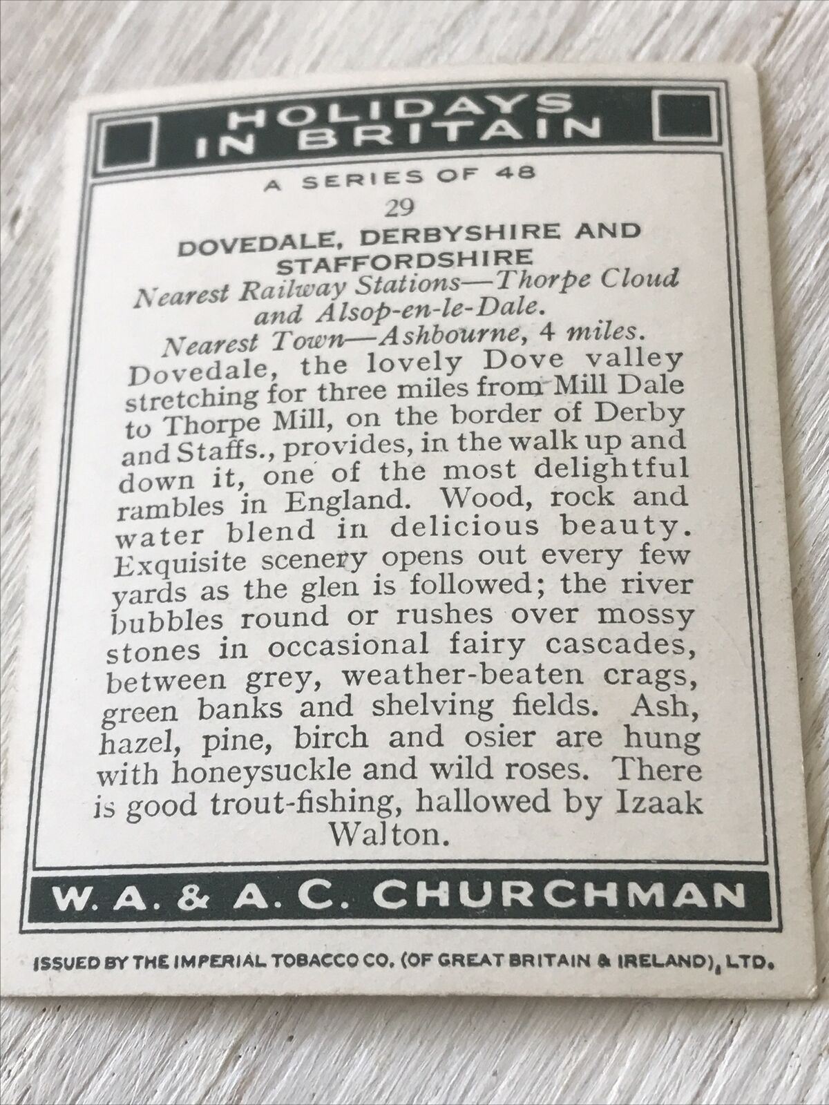Churchmans Cigarette Card Holidays In Britain 29 Dovedale Derbyshire Staffordshi