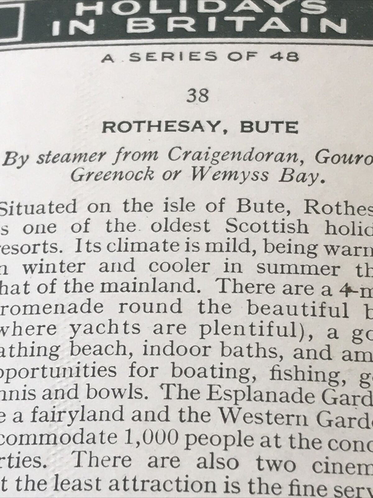 Churchmans Cigarette Card Holidays In Britain 38 Rothesay Bute Vintage Picture
