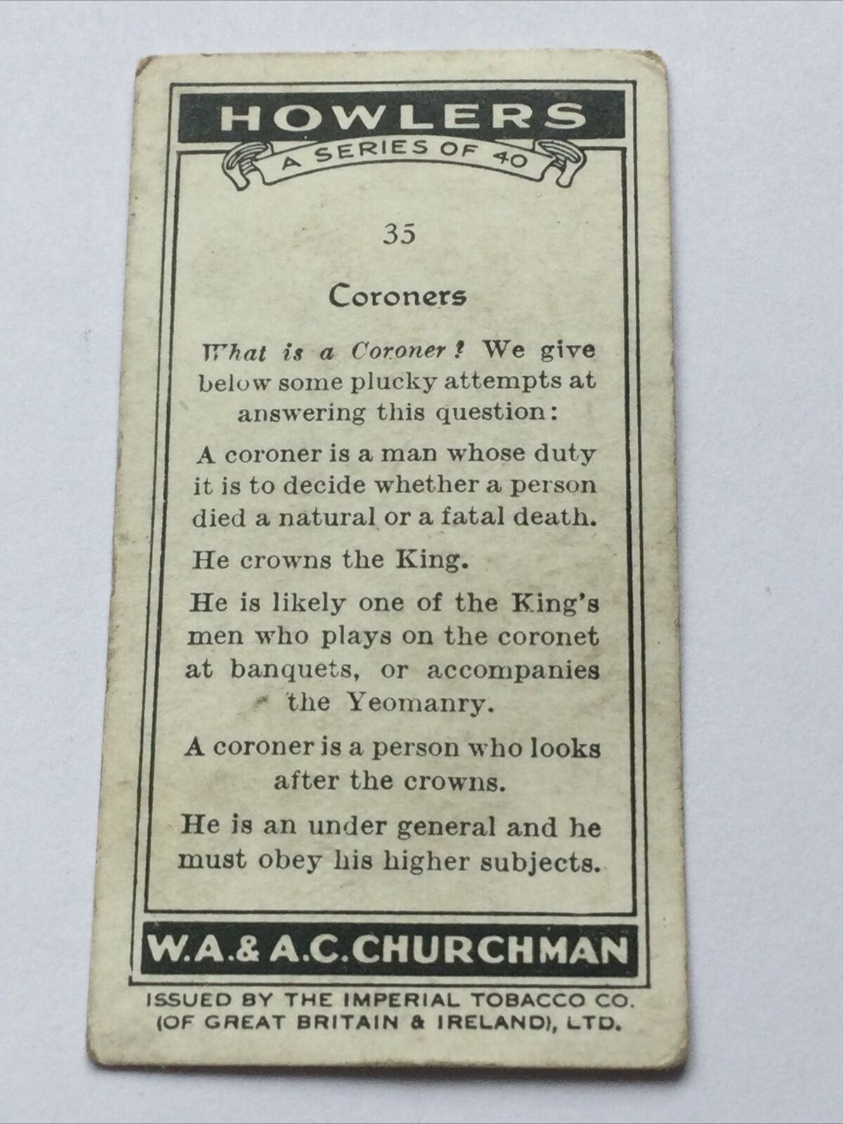Churchmans Cigarette Card HOWLERS CORONERS #35/50 Humorous ‘plucky’