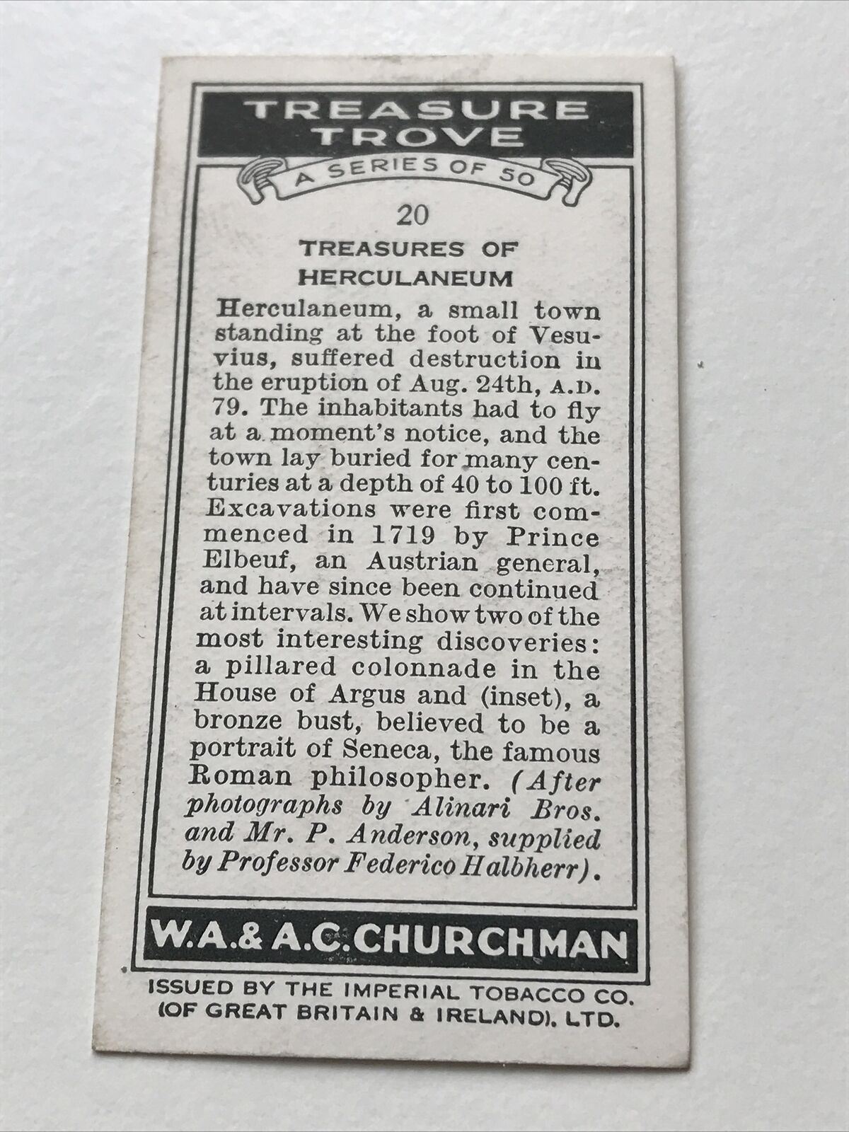 Churchmans Cigarette Card Treasure Trove #20 Treasures Of Herculaneum Vesuvius