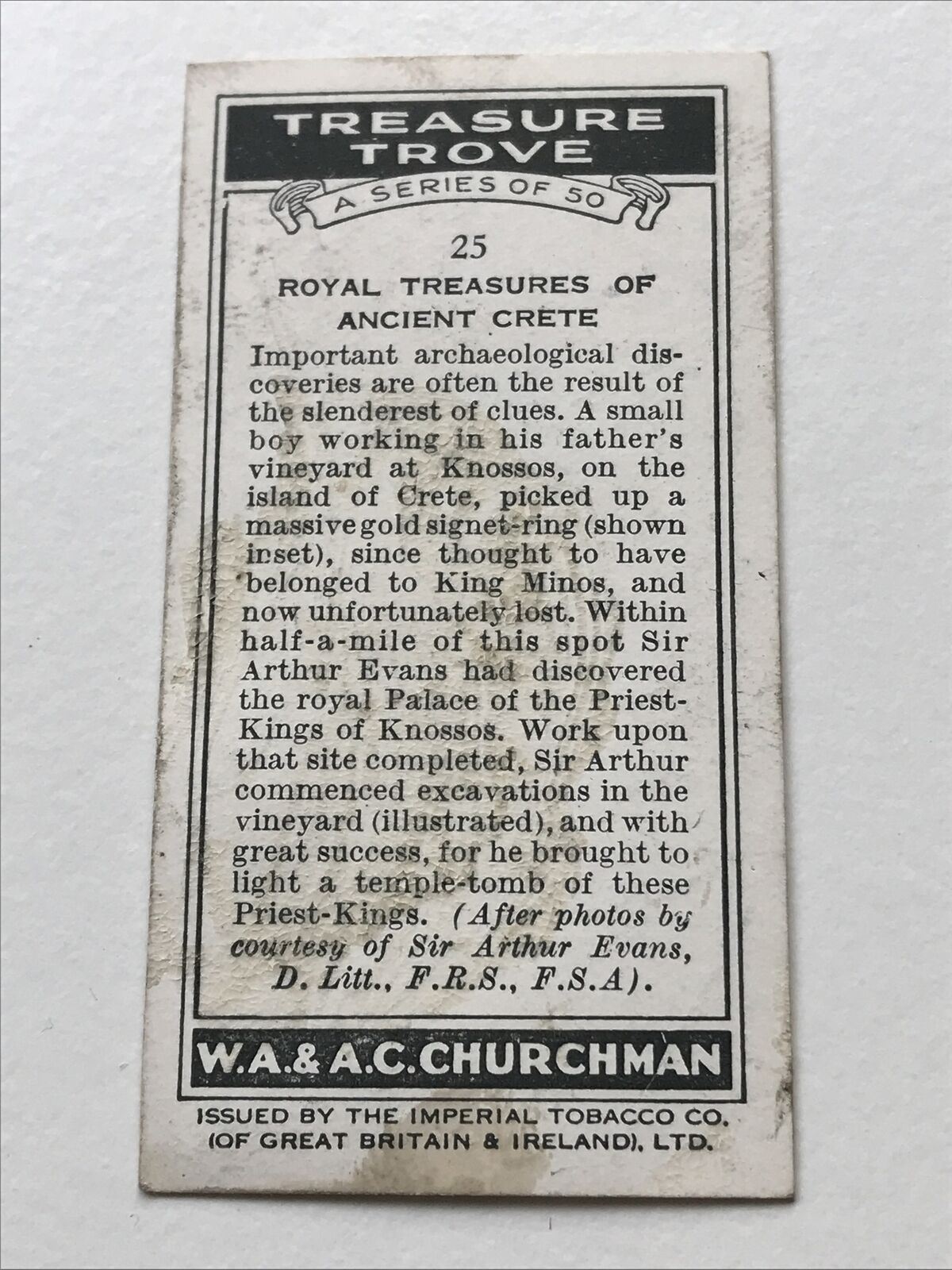 Churchmans Cigarette Card Treasure Trove #25 Royal Treasures Of Ancient Crete