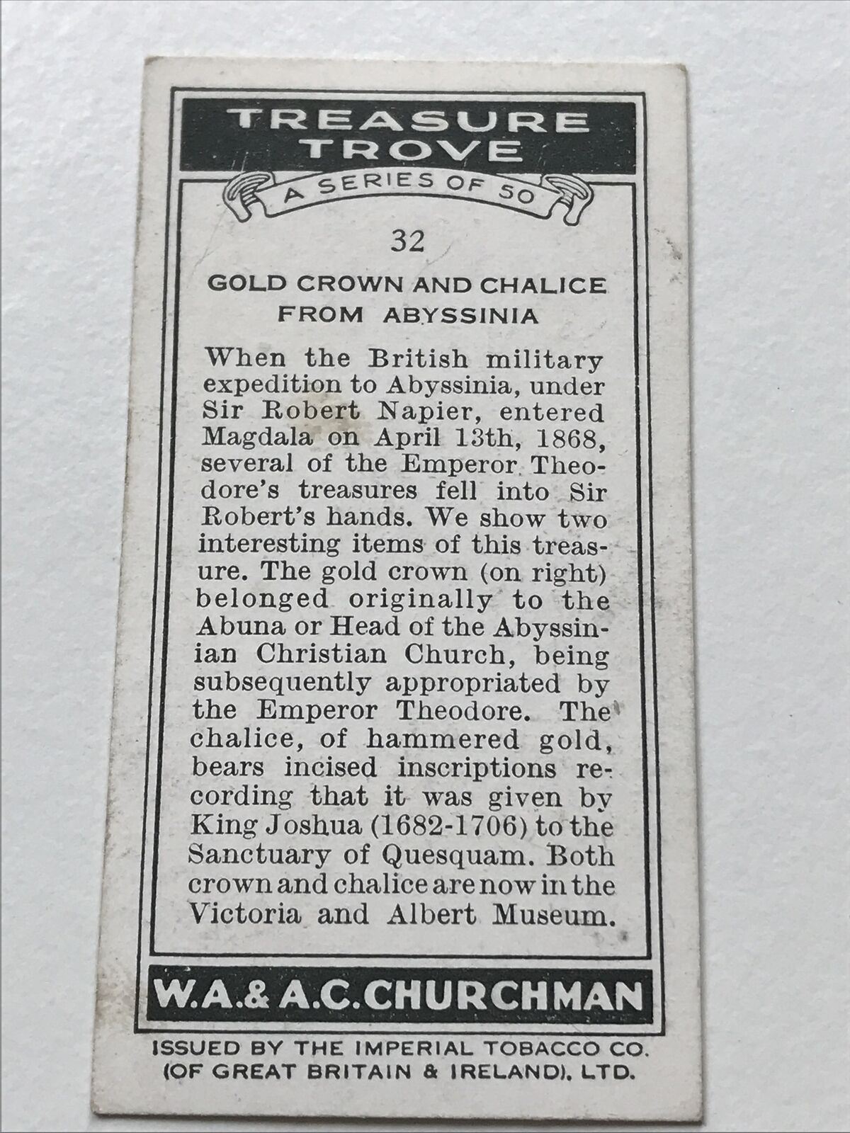 Churchmans Cigarette Card Treasure Trove #32 Gold Crown & Chalice From Abyssinia