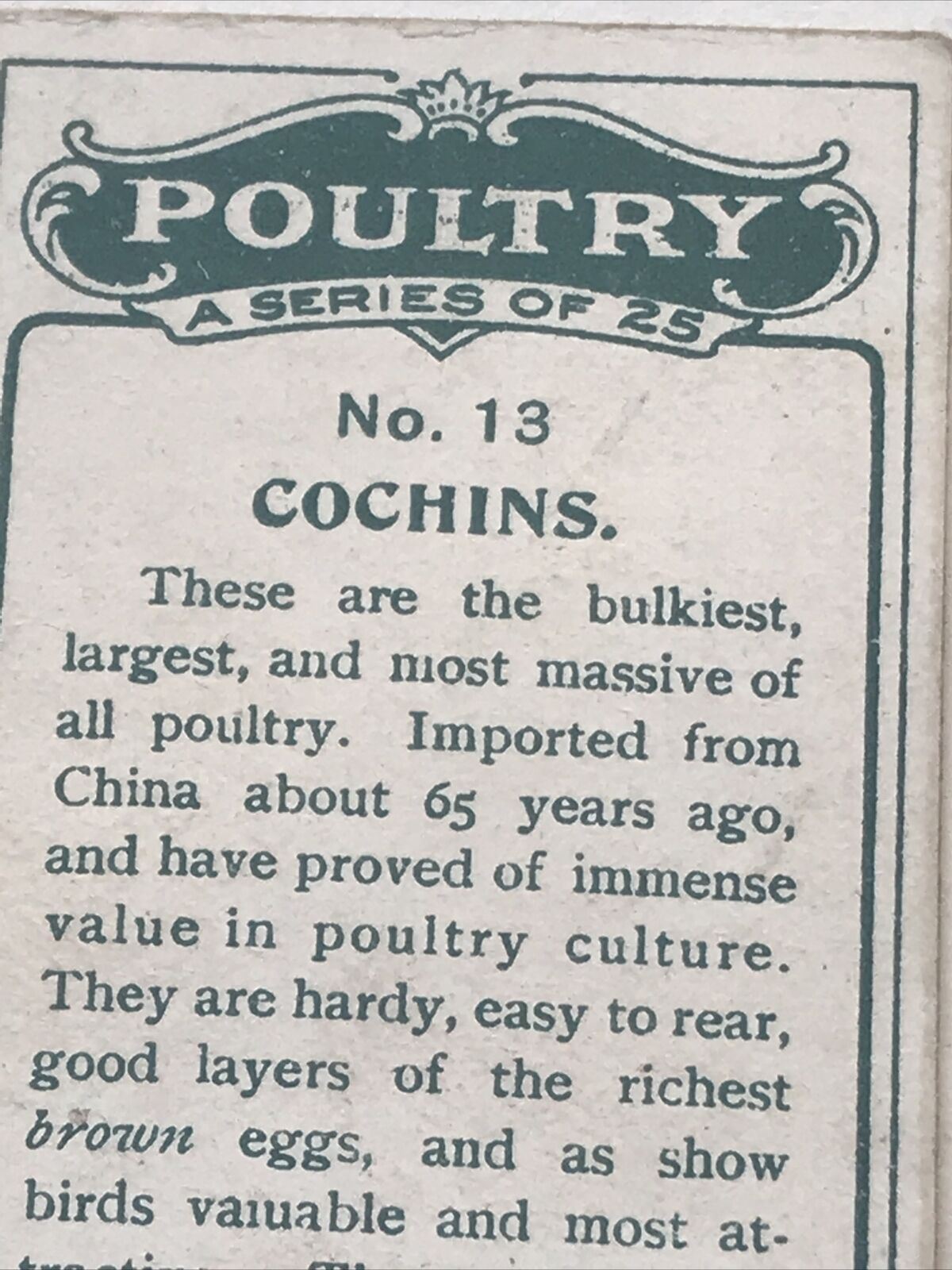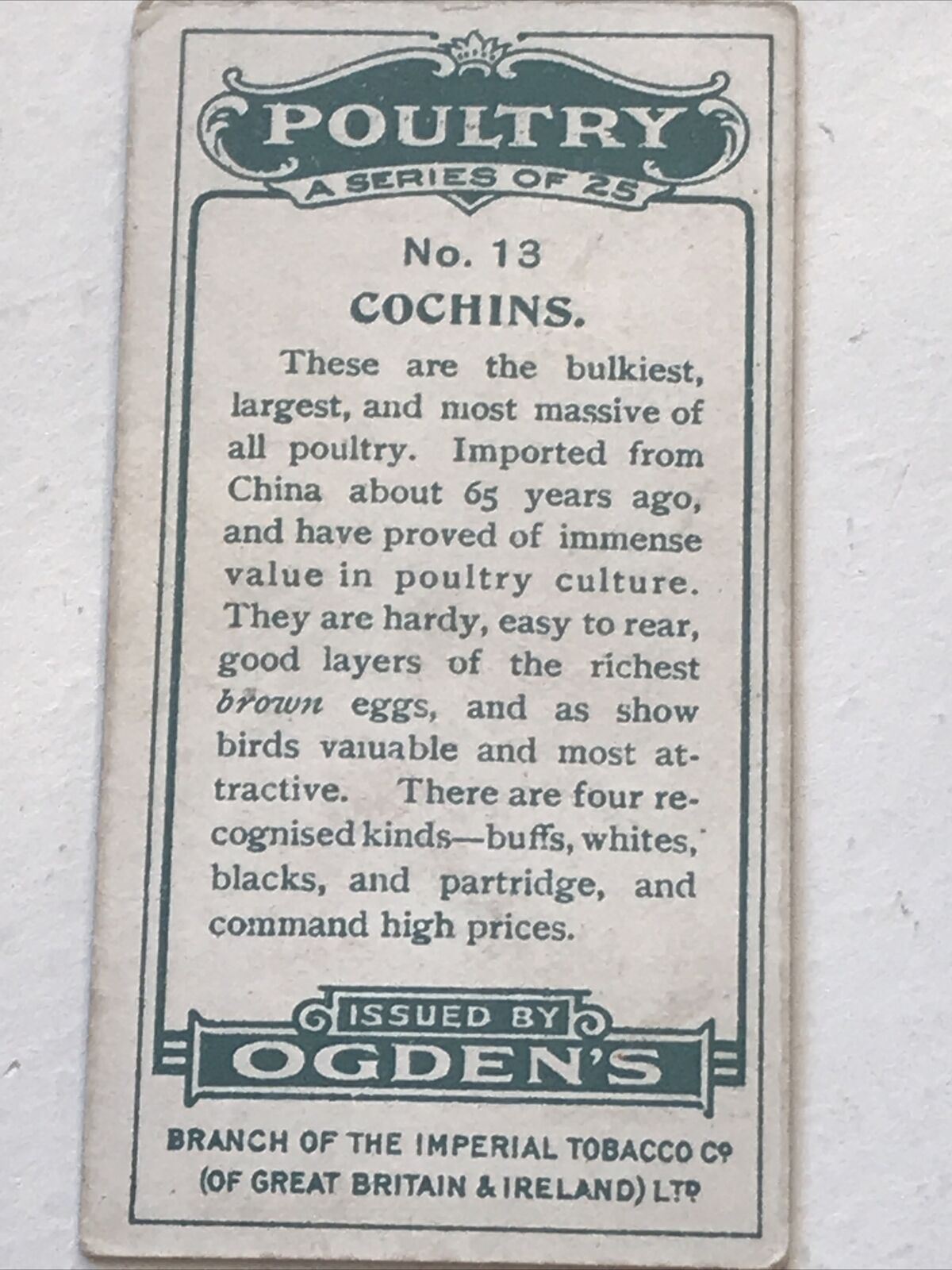 COCHINS Ogden’s Cigarette Card, Poultry #13 Hen Cock Fowl Vintage Print