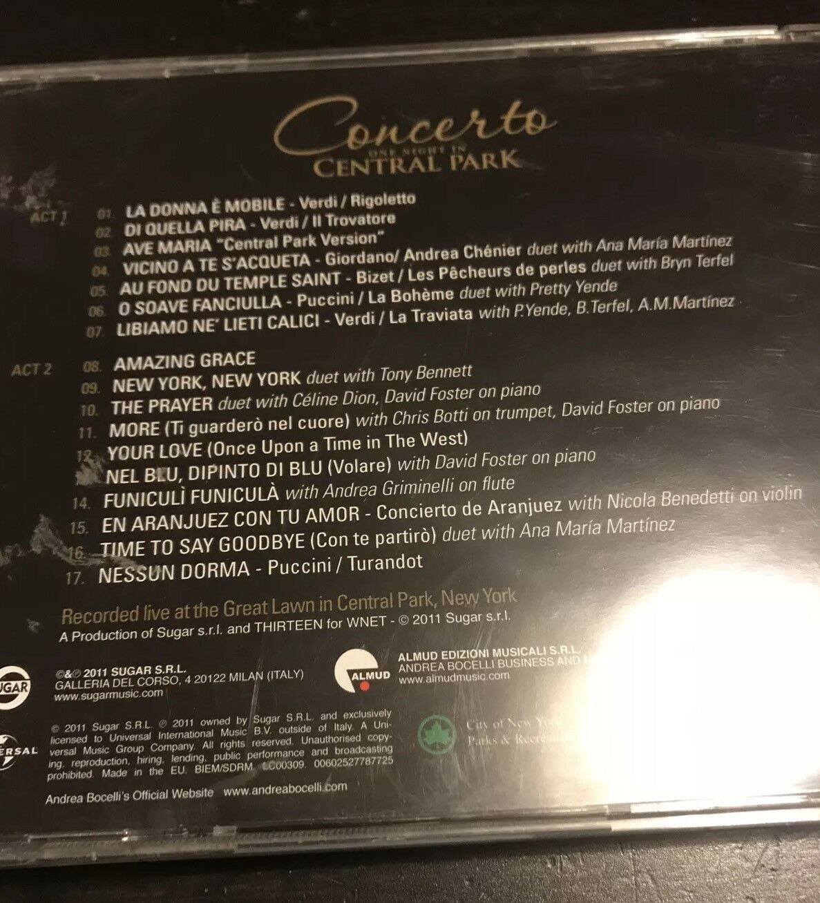 Concerto: One Night in Central Park (2011). Condition is "Good". Dispatched with Royal Mail 1st Class Large Letter.