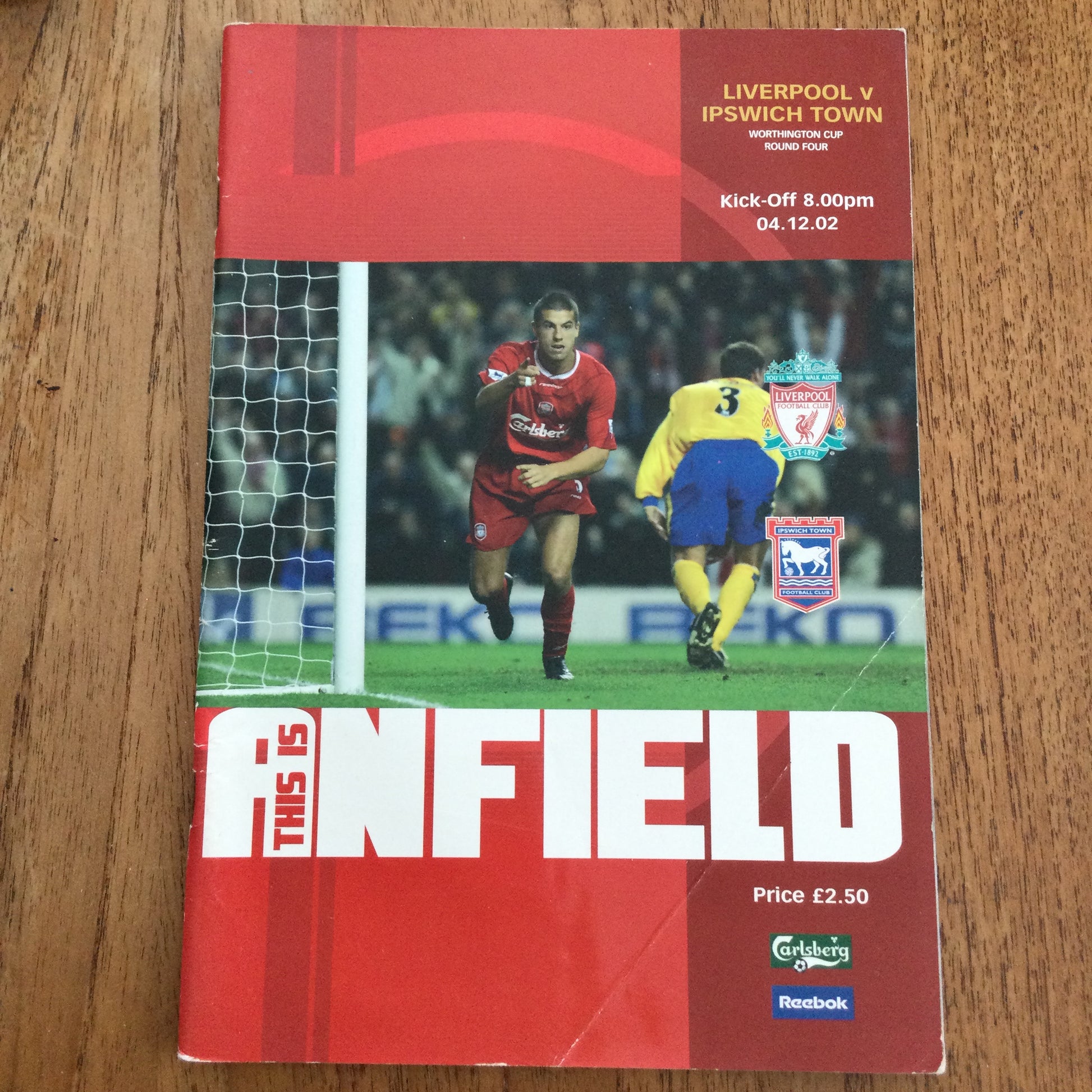 2002/2003 Worthington Cup Liverpool v Ipswich Town 04/12/02 Programme This Is Anfield.