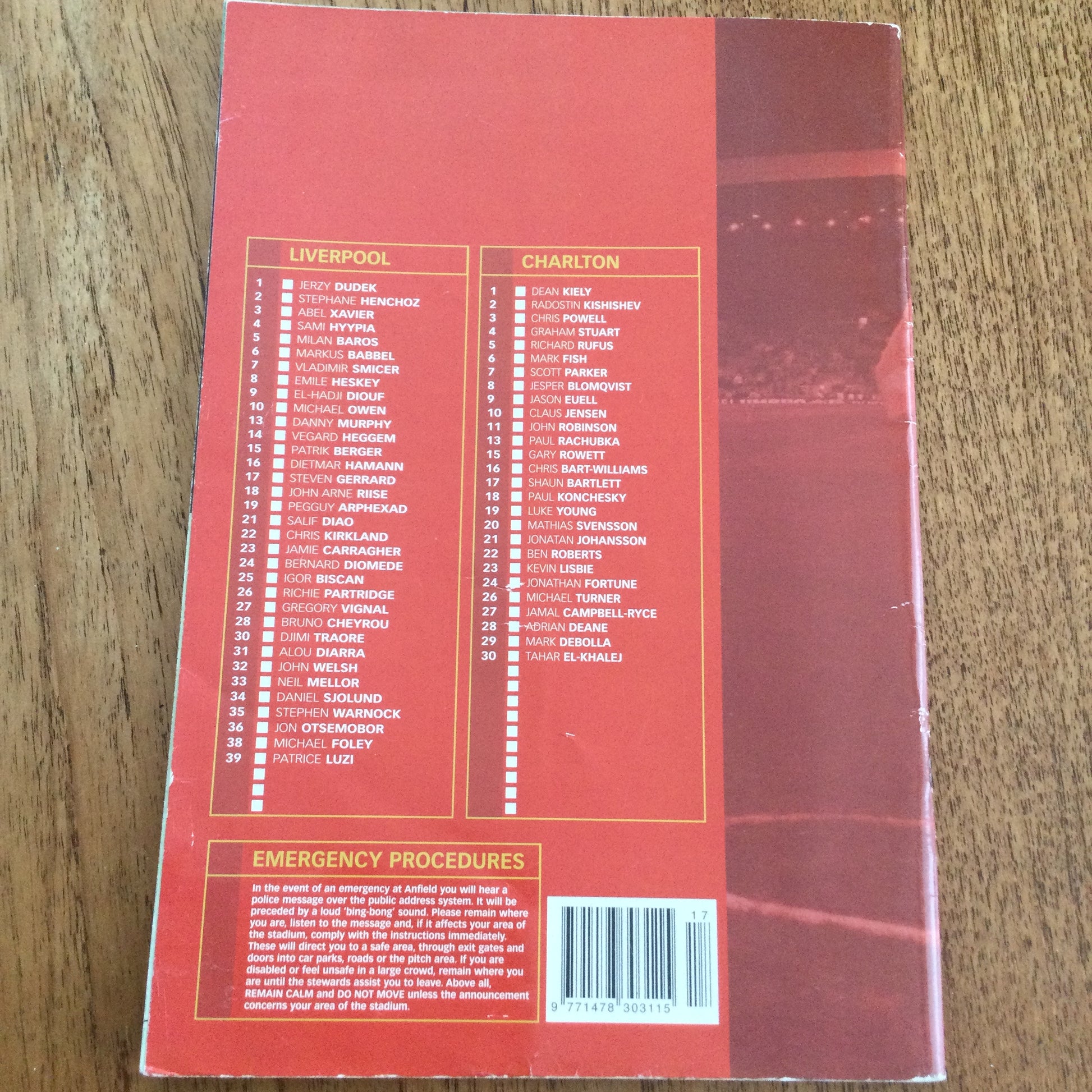 2002/2003 Premiership Liverpool v Charlton 21/04/03 Programme This Is Anfield.