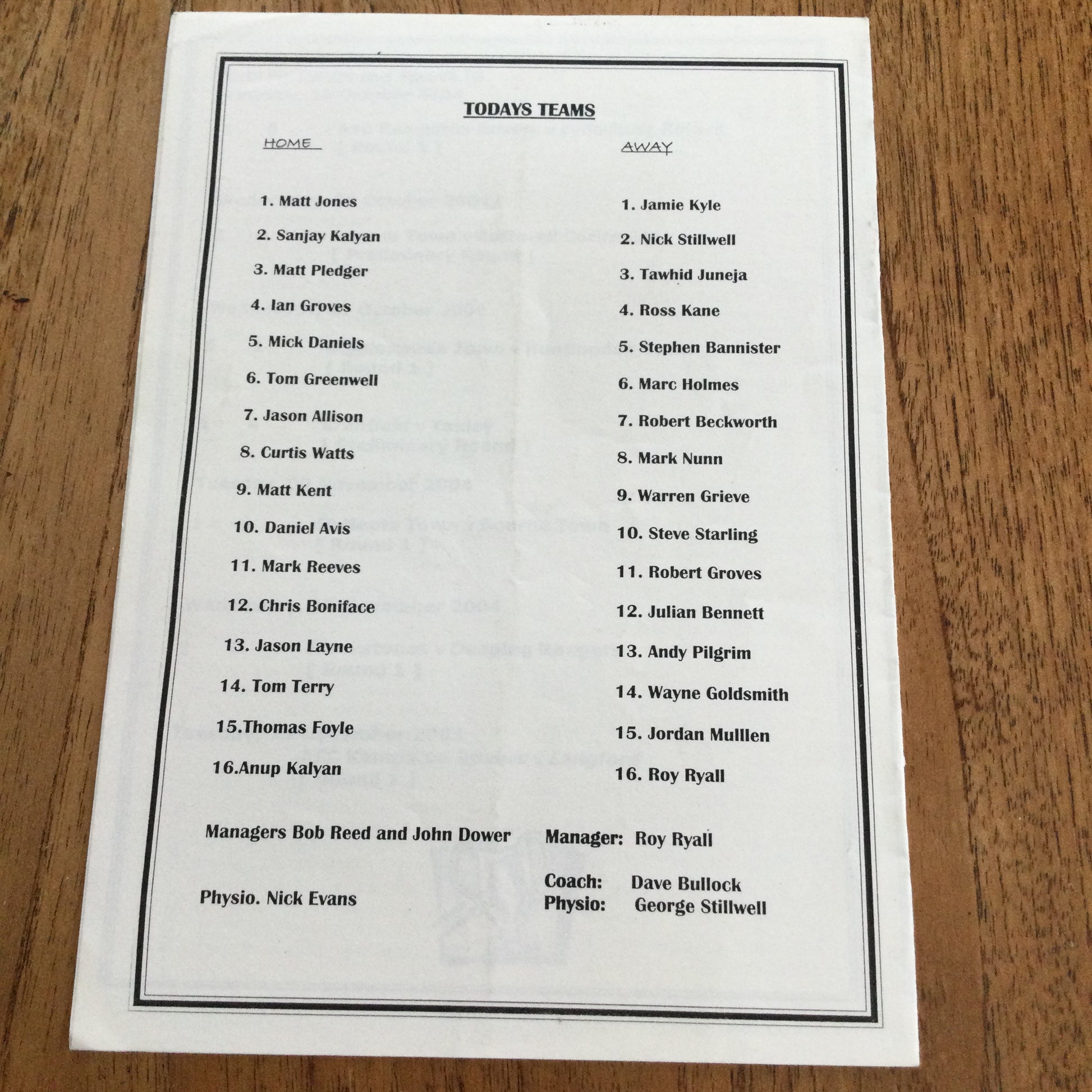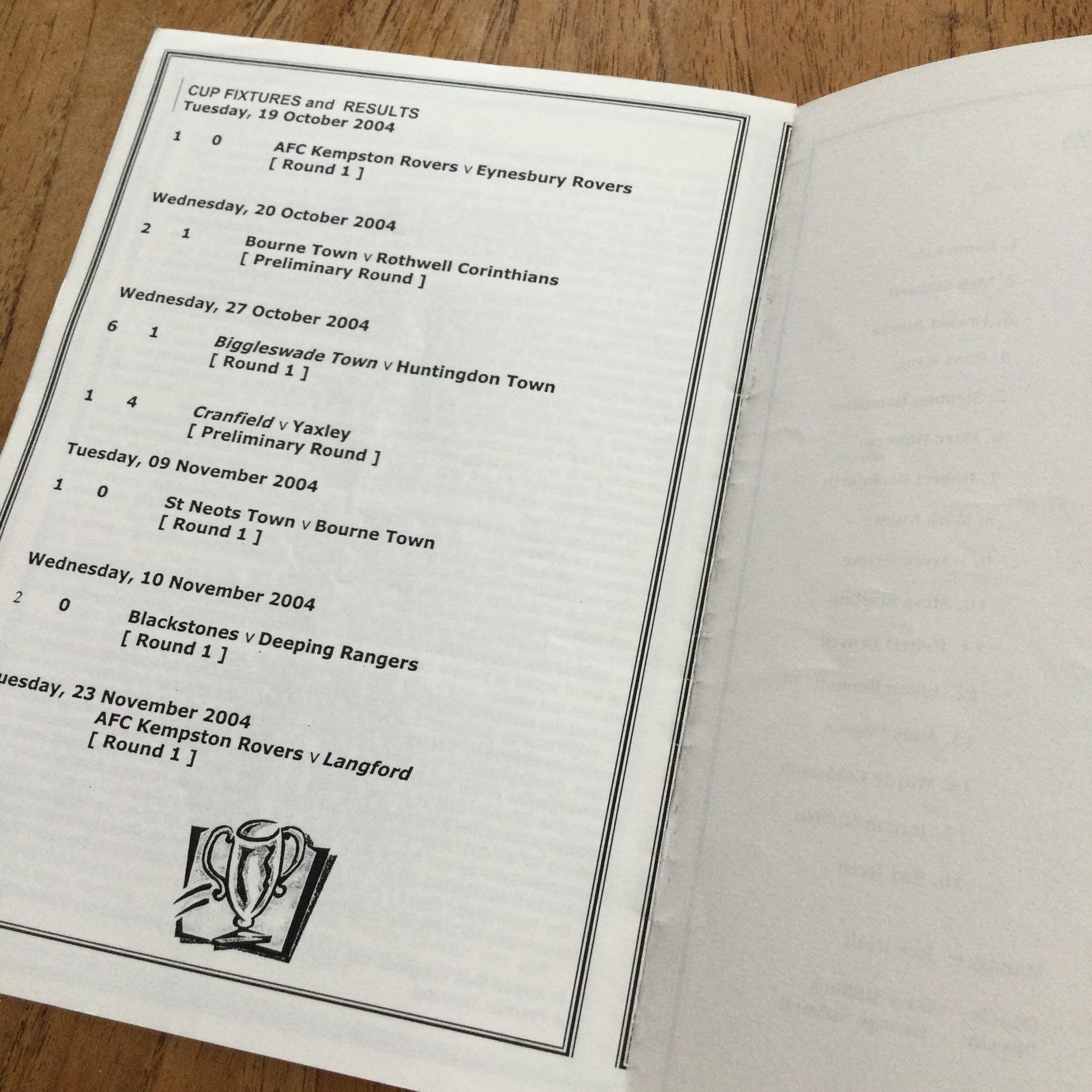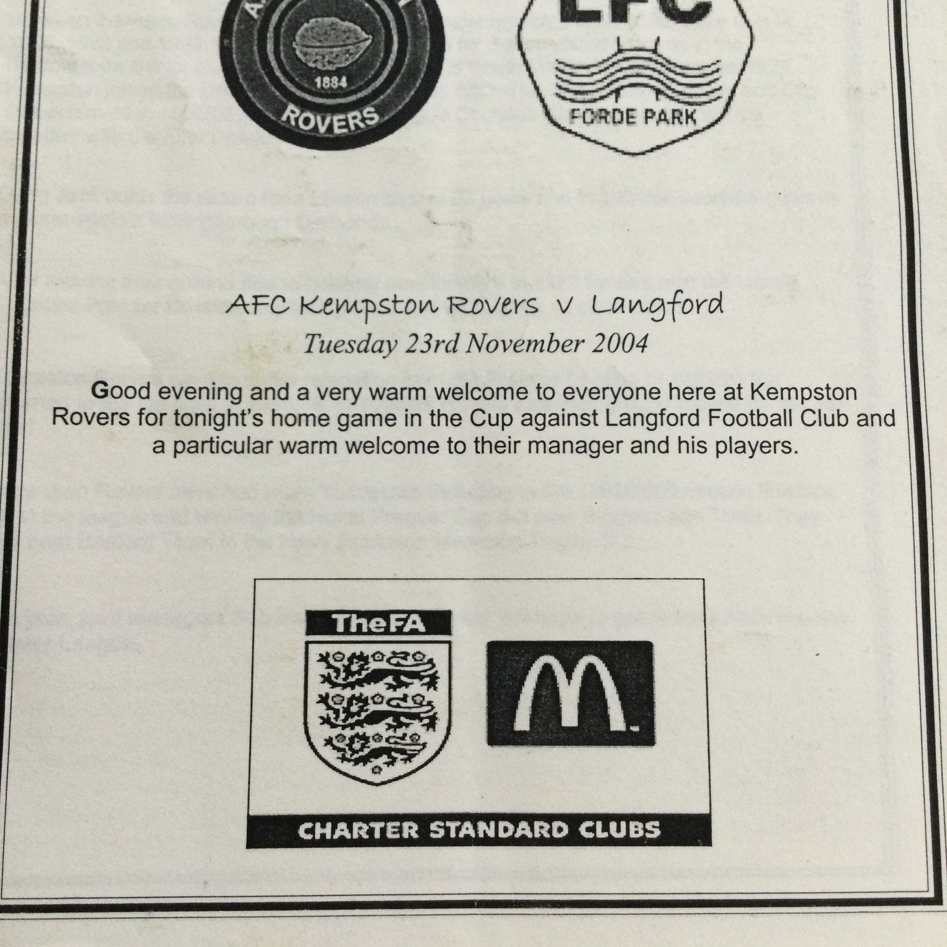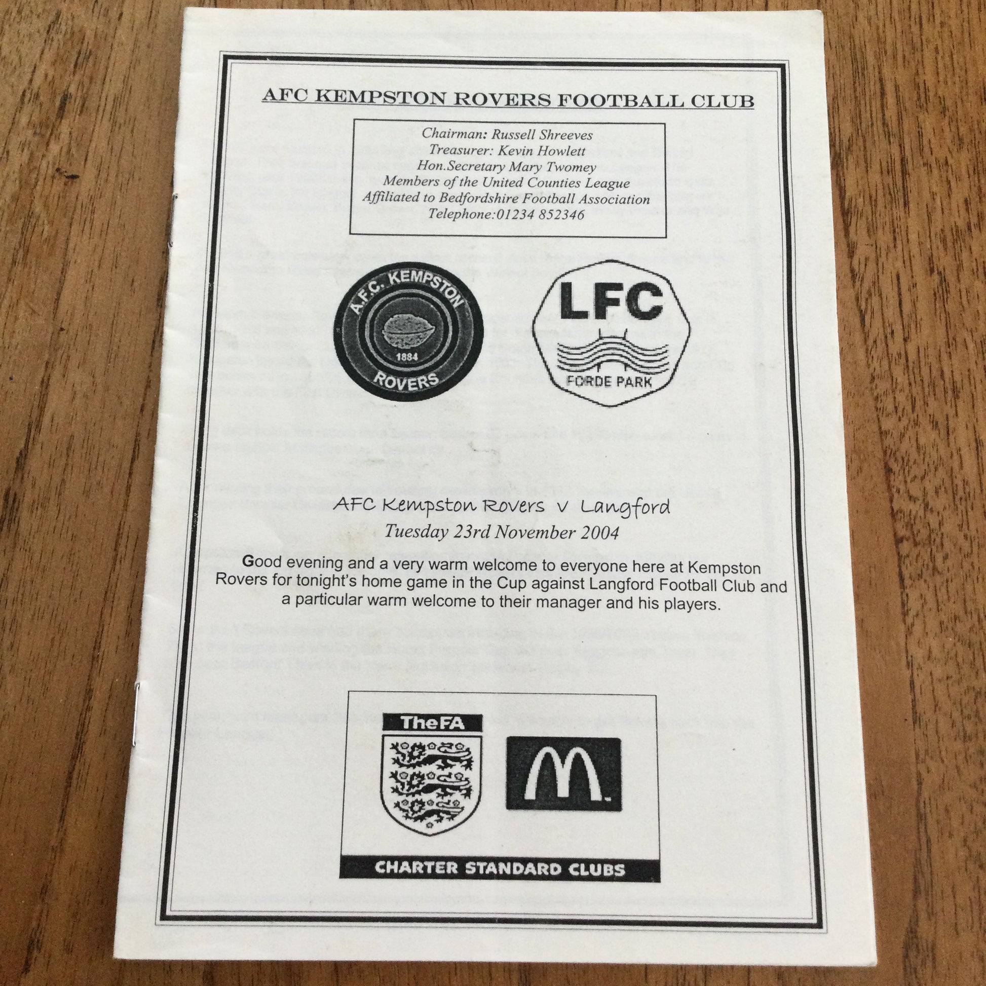 2004/05 AFC Kempston Rovers v Langford 23/11/04 Programme