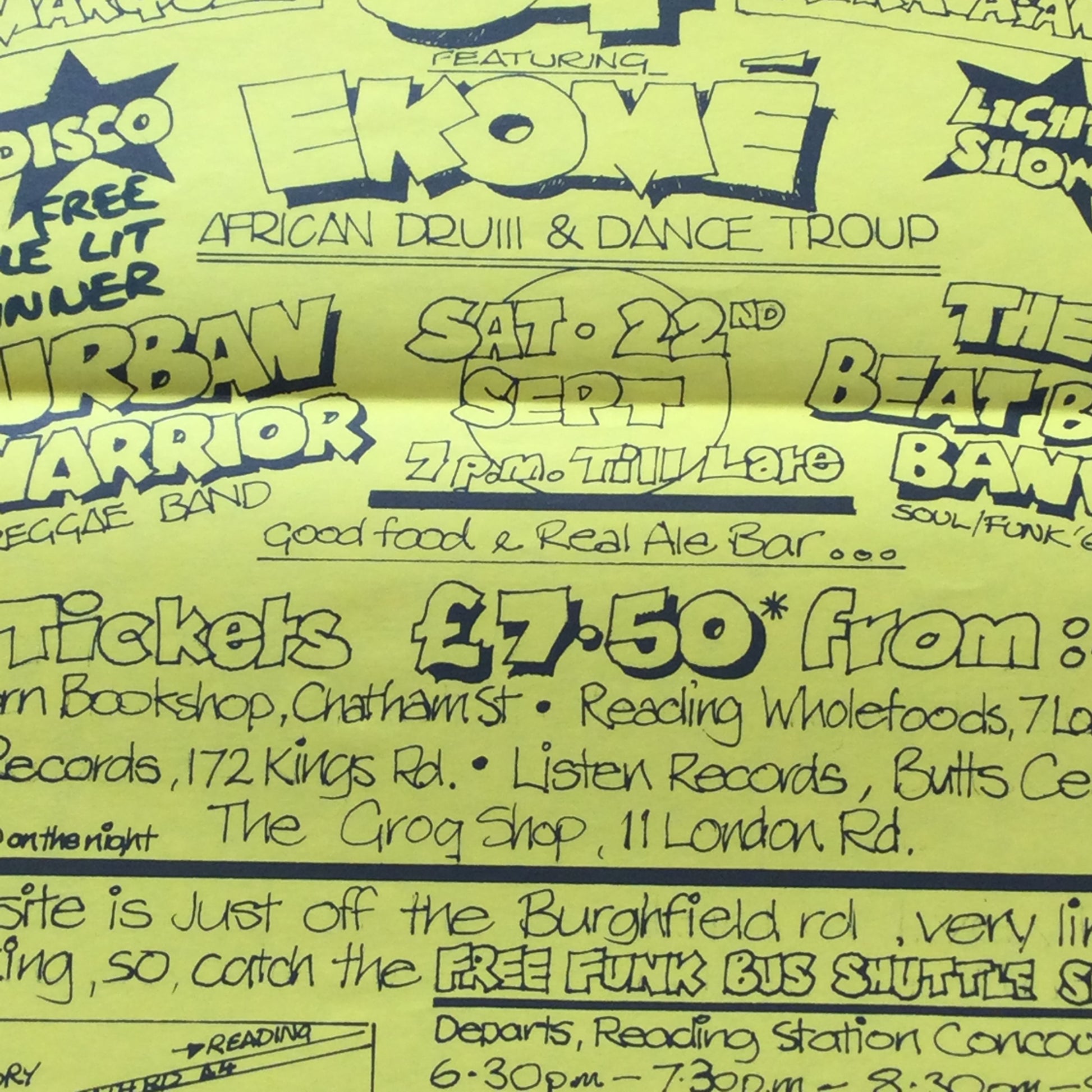 80s World Music / Dance memorabilia. Yellow A3 poster. Flip n Binge 1984. Burghfield Road, Reading