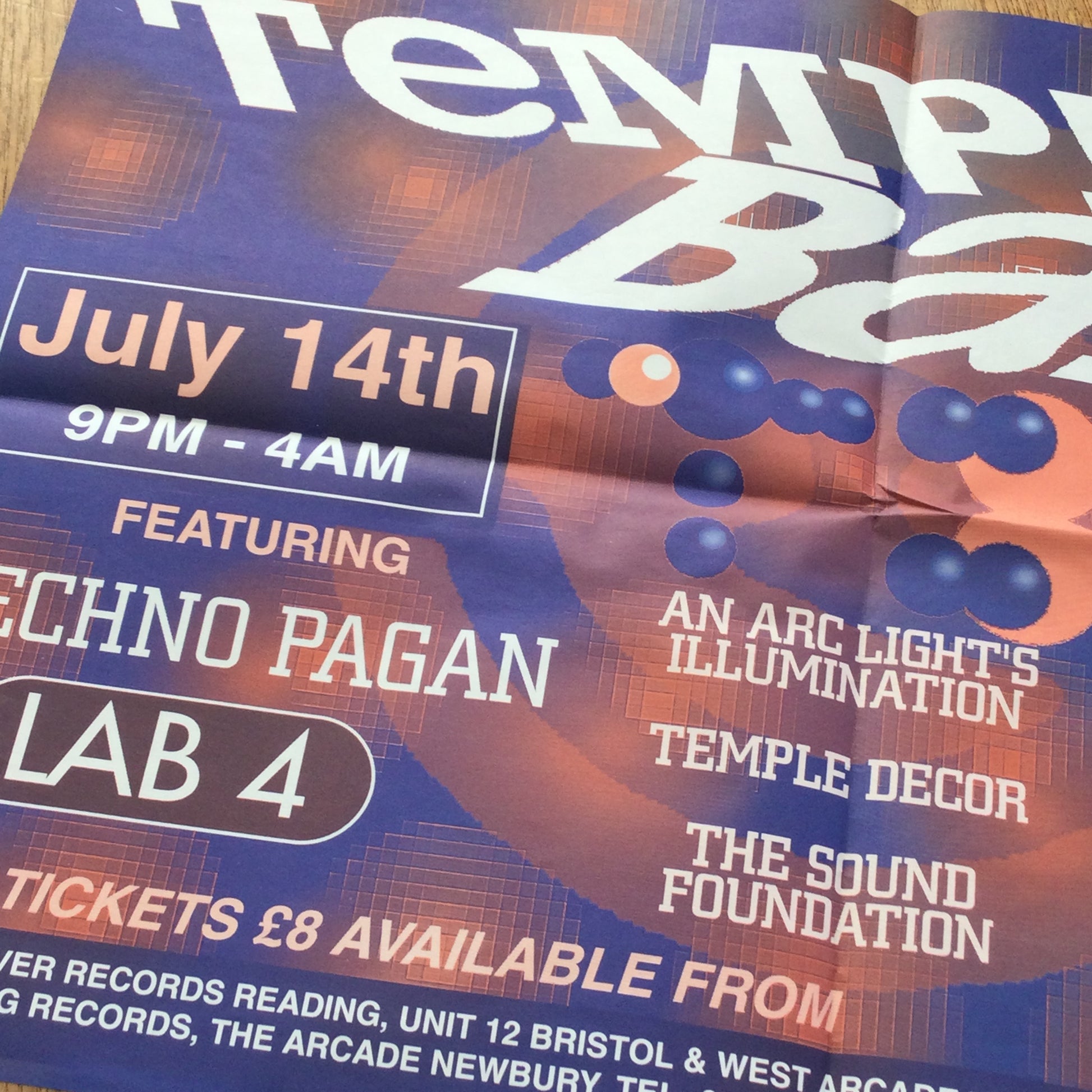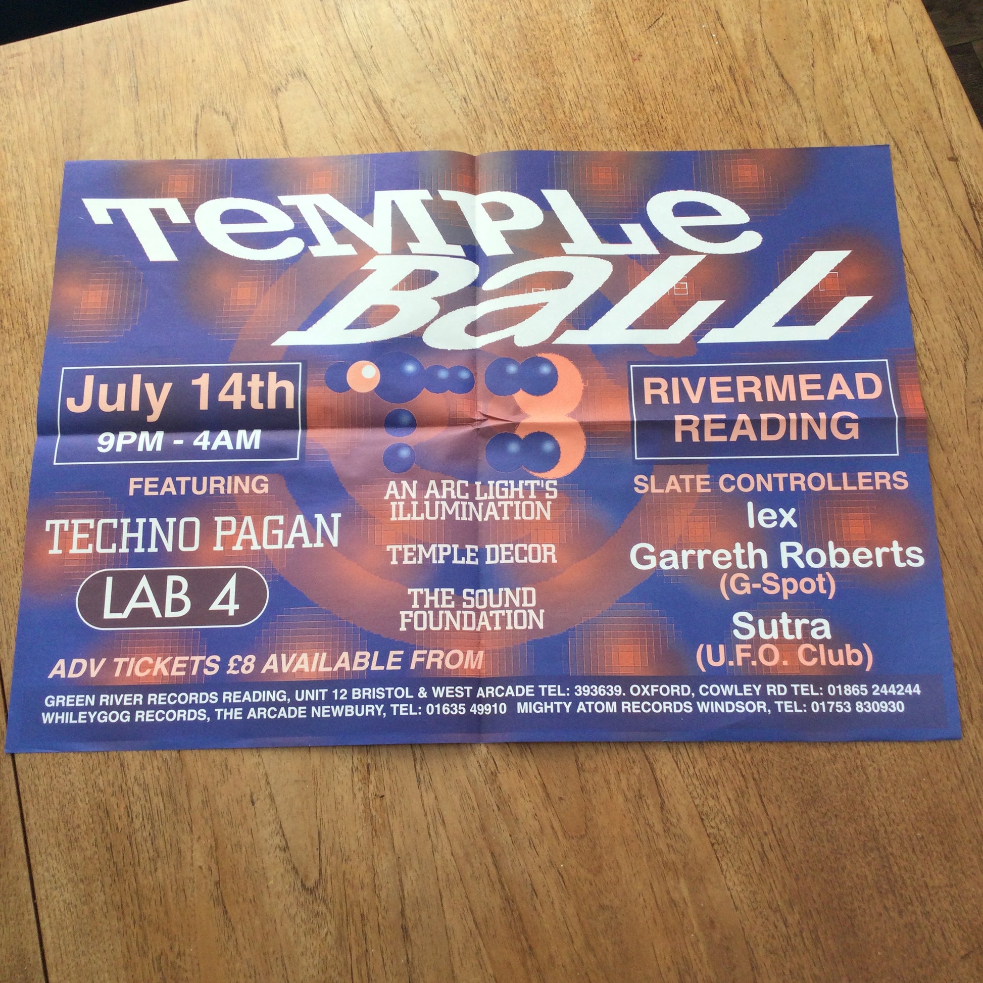 A2 Large Poster. Temple Ball Rivermead Reading. 90s Music scene Reading town. Techno Pagan