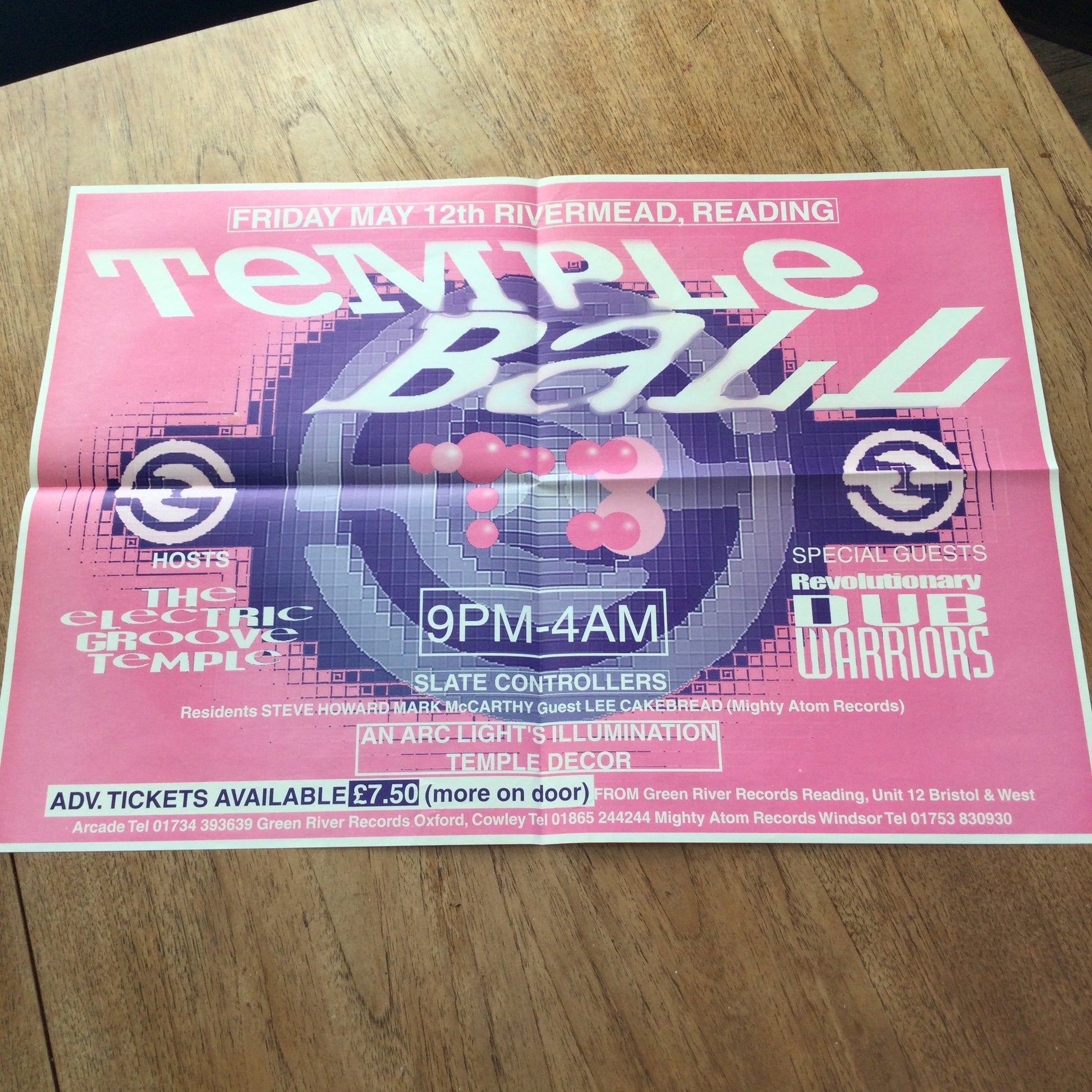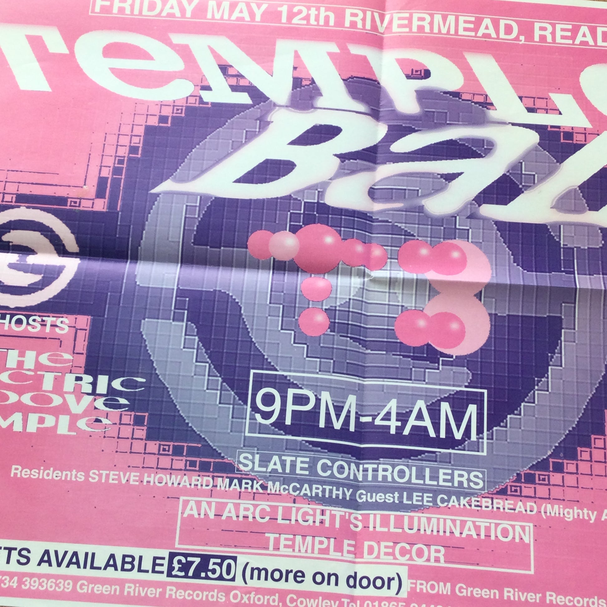 A2 Large Pink Poster. Temple Ball Rivermead Reading. 90s Music scene Reading town. Electric Groove Temple.