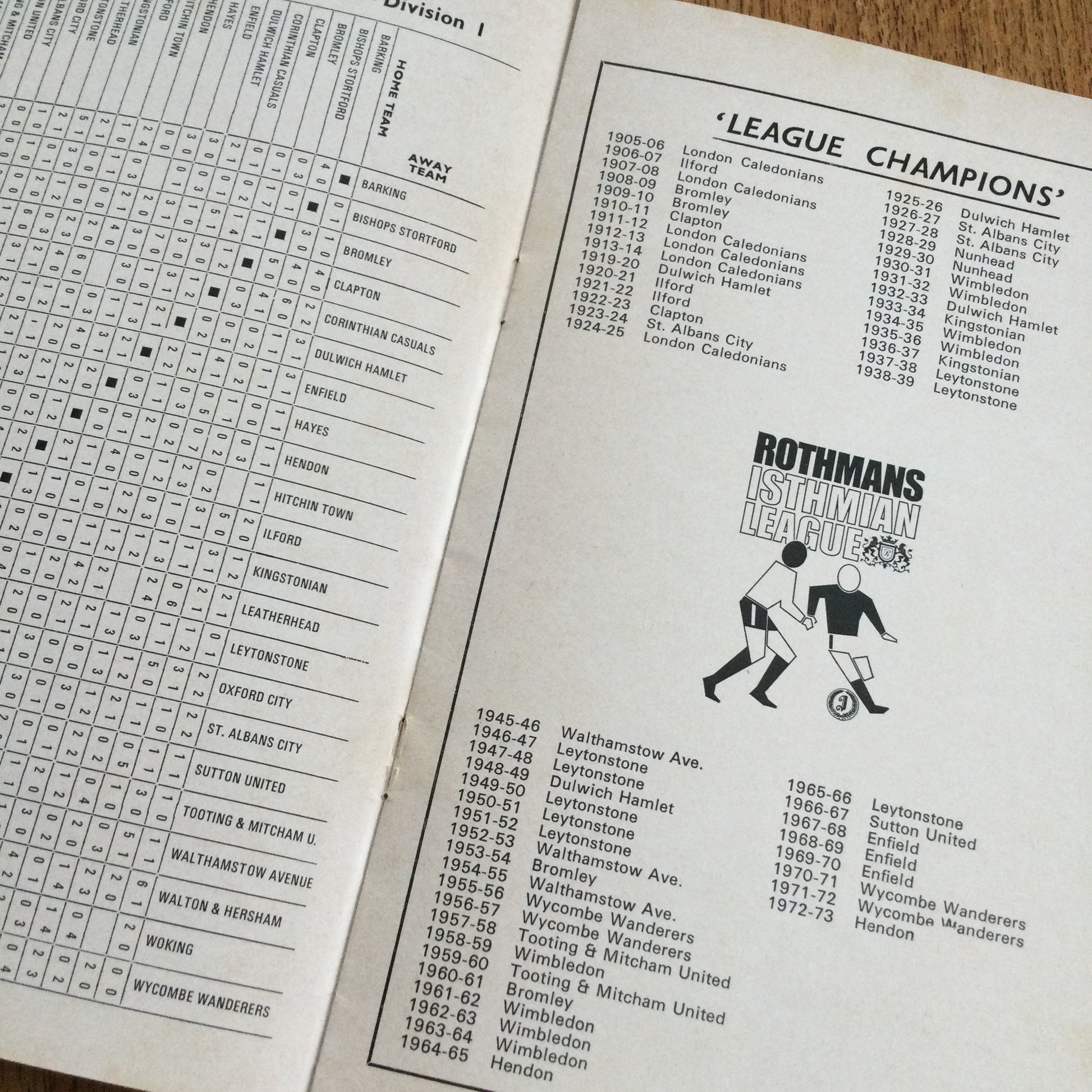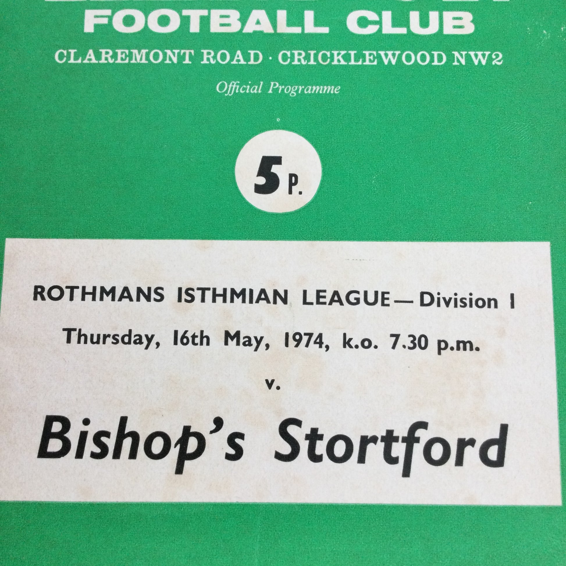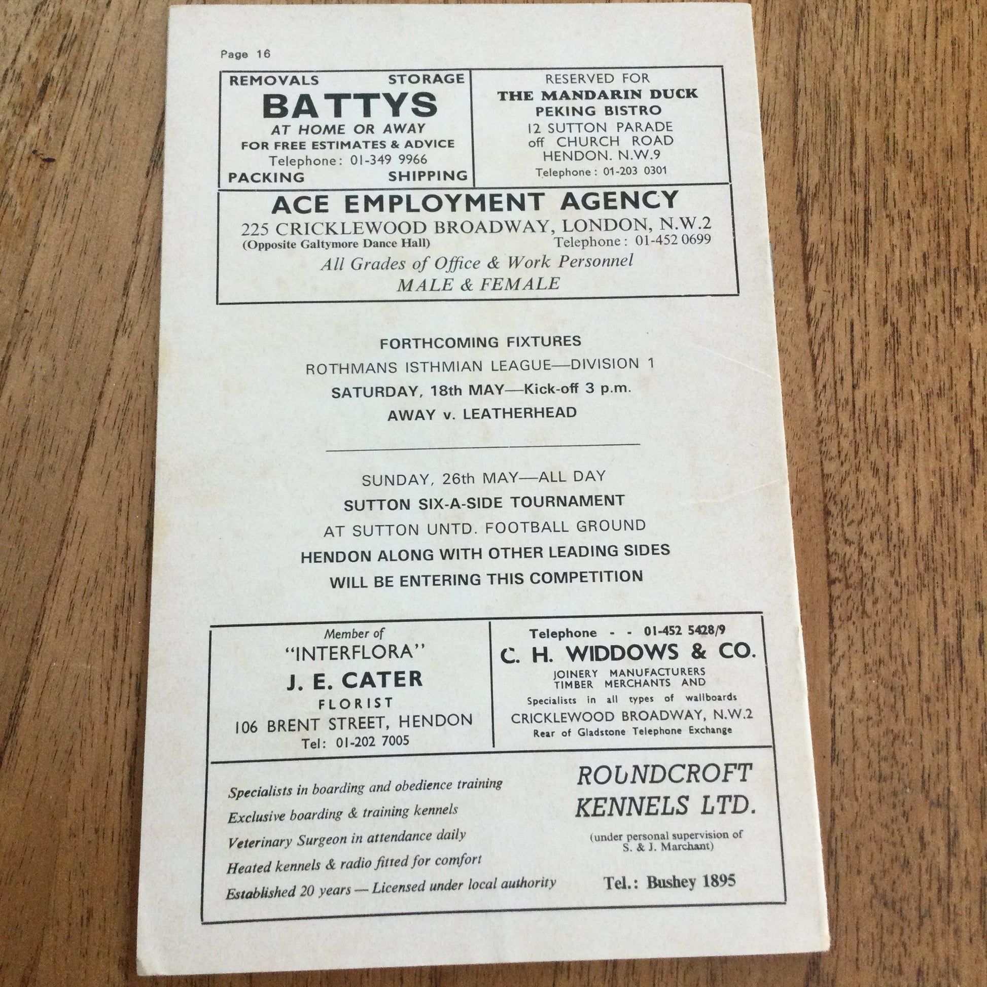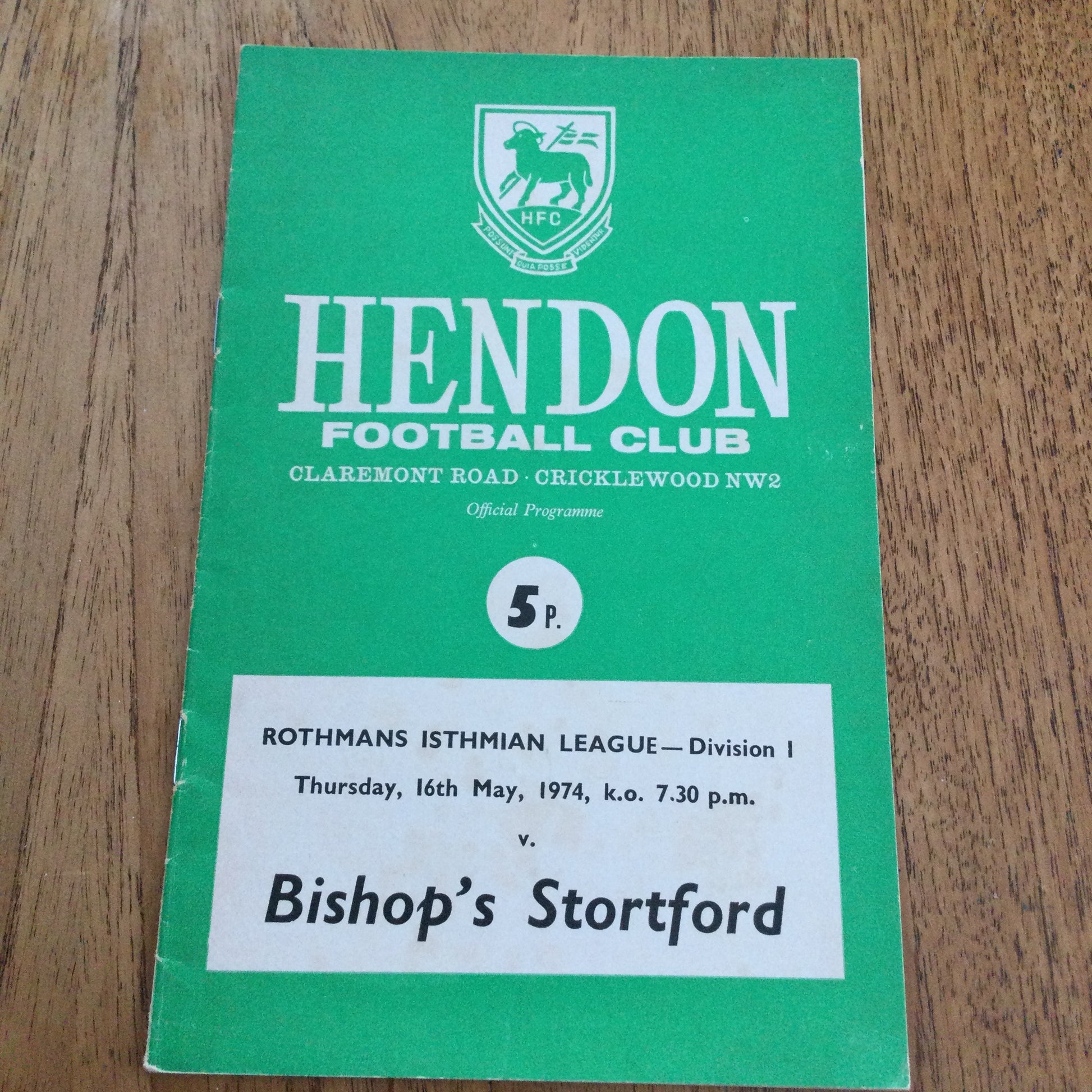 Hendon FC v Bishop's Stortford. Rothman's Isthmian League 16/05/74 1973/74 Programme.