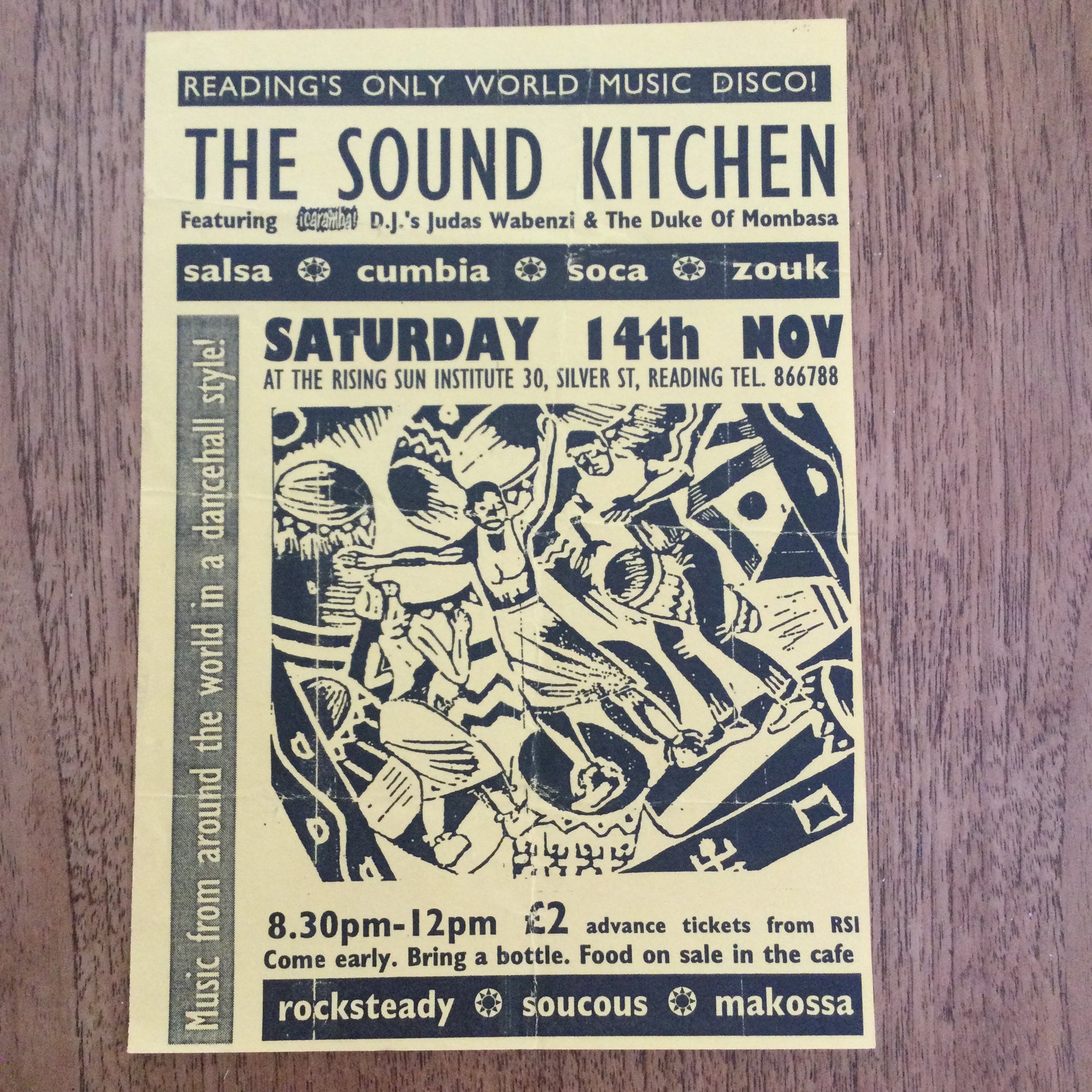 Caramba! Reading World Music Scene Memorabilia. 1990s 90s A5 Flyer. The Sound Kitchen The Duke Of Mombasa