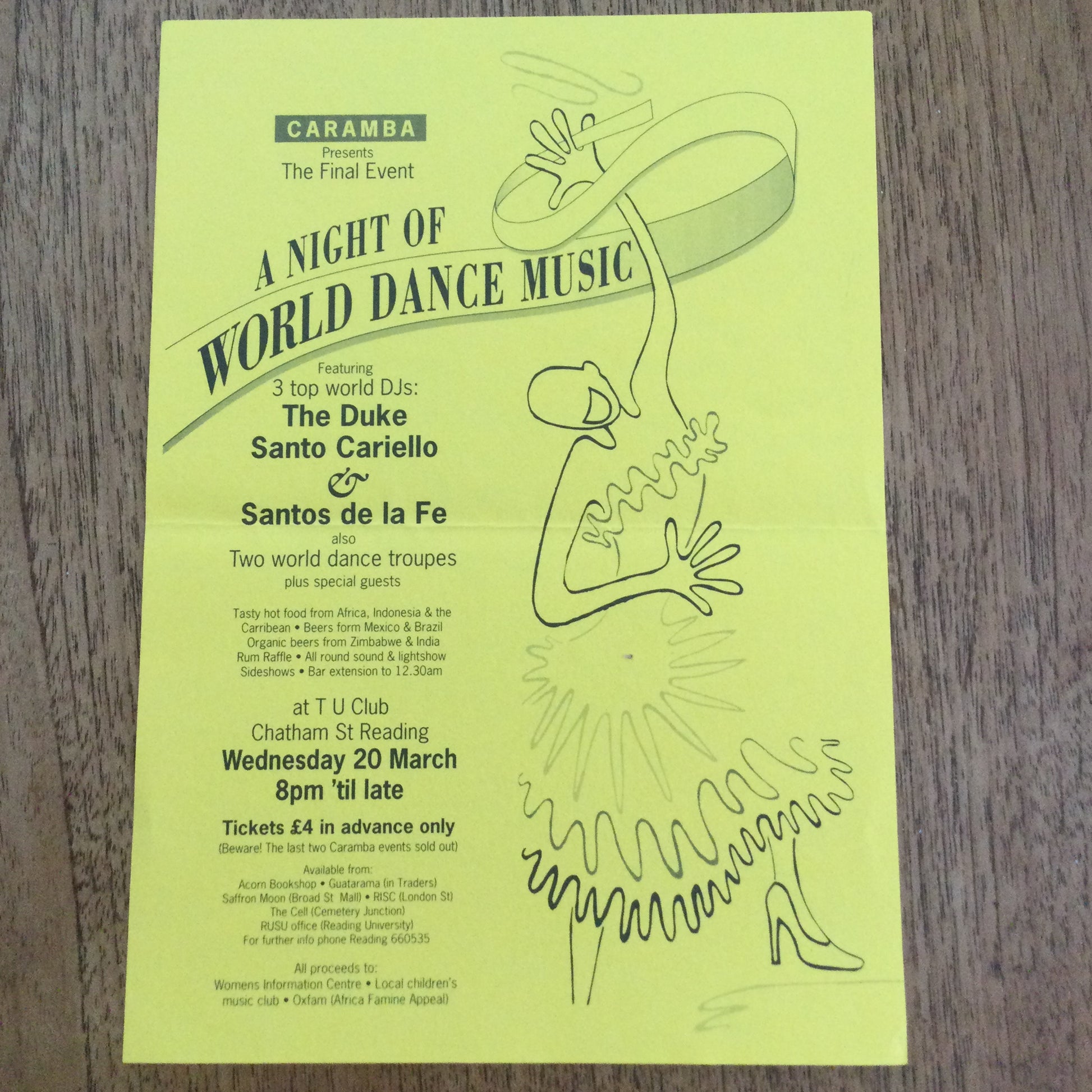 Caramba! Reading World Music Scene Memorabilia. 1990s 90s A5 Flyer The Final Event A Night Of World Dance Music