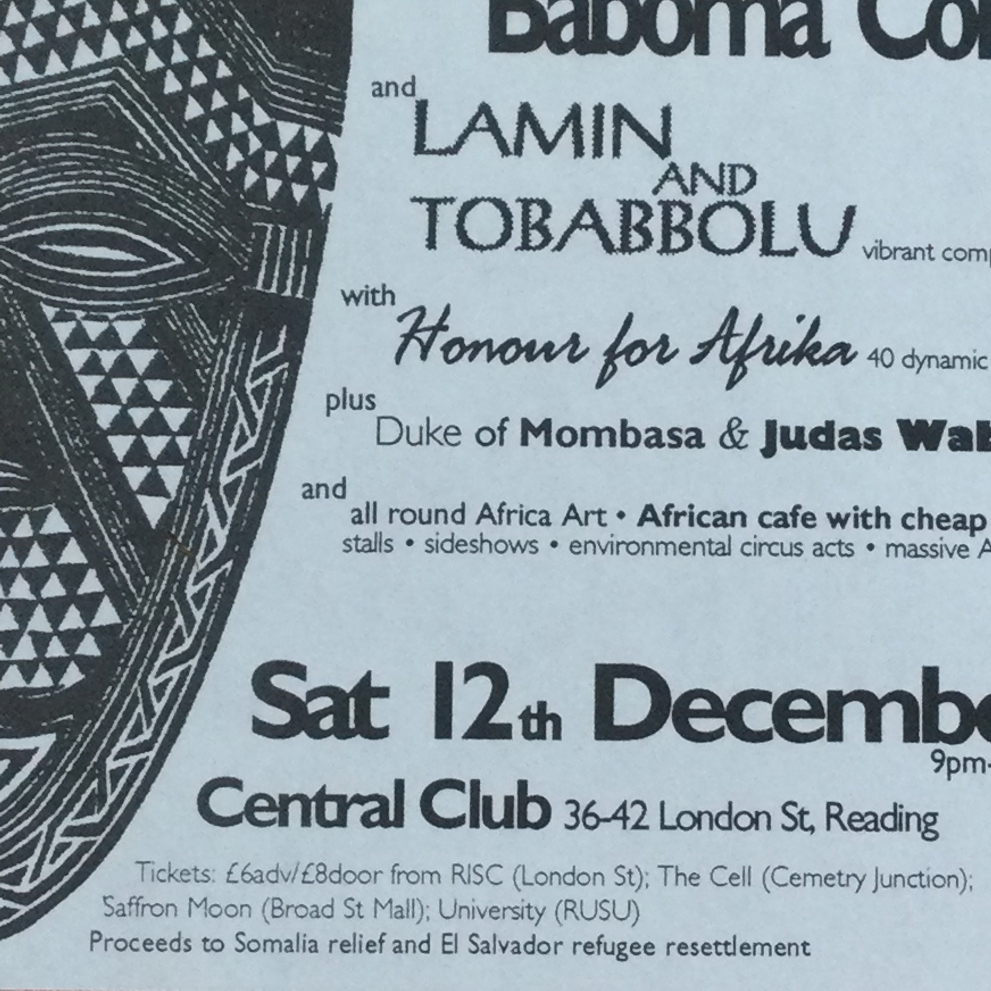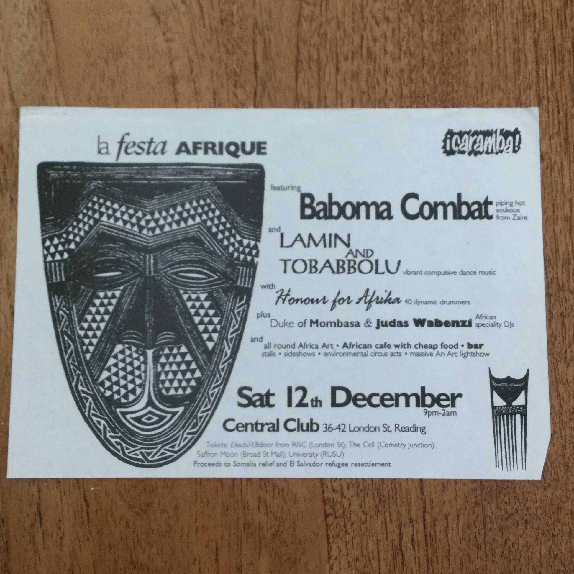 Caramba! Reading World Music Scene Memorabilia. 1990s 90s A5 Flyer La Festa Afrique Baboma Combat