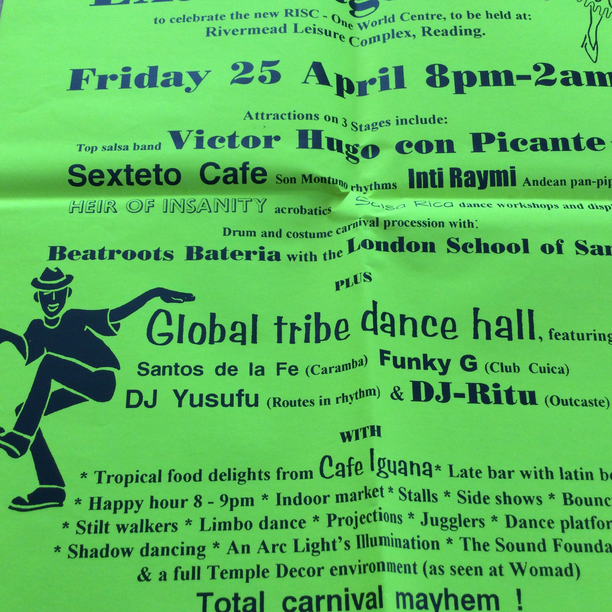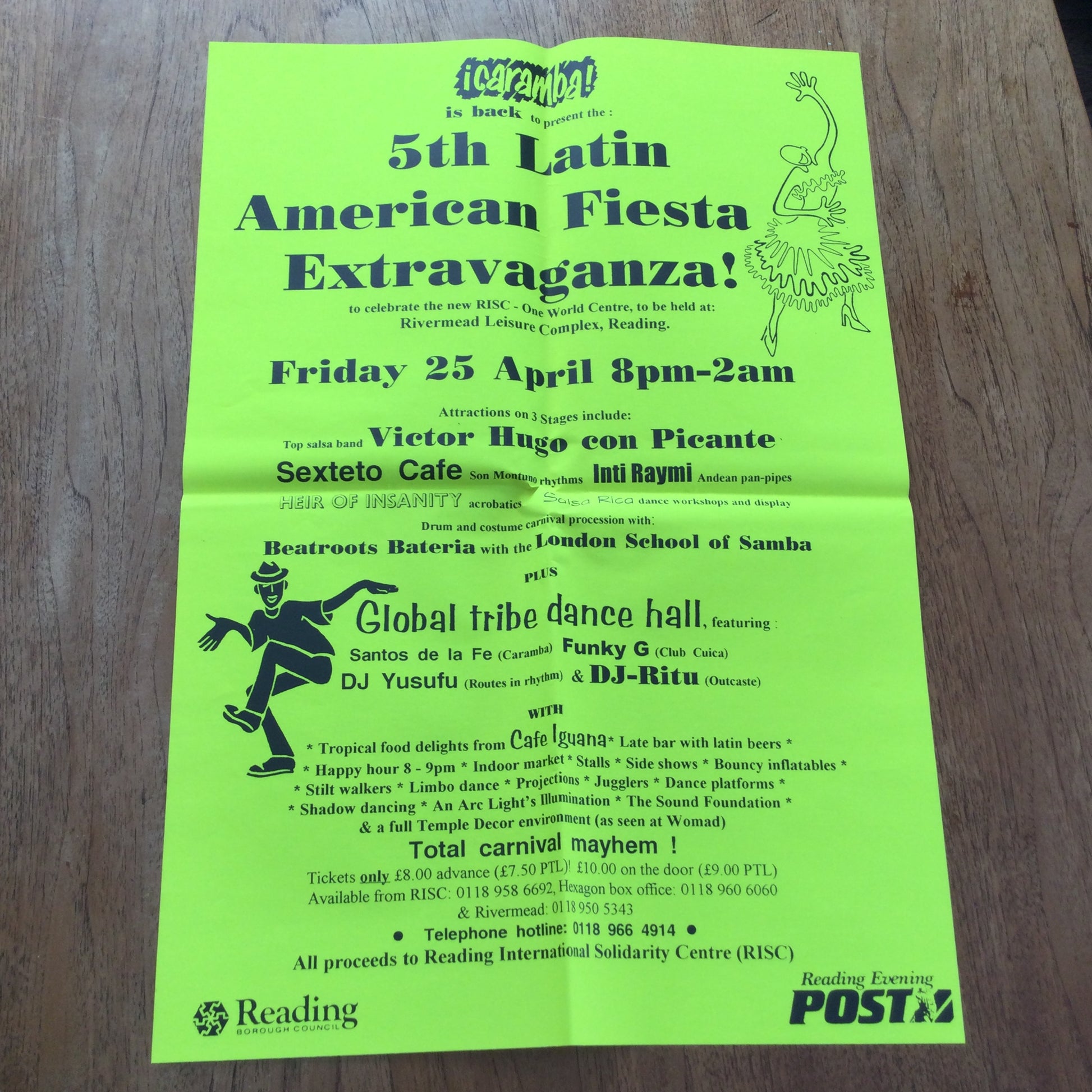 Large Poster Caramba 5th Latin American Fiesta. 1990s Reading World Music Scene. Victor Hugo con Picante