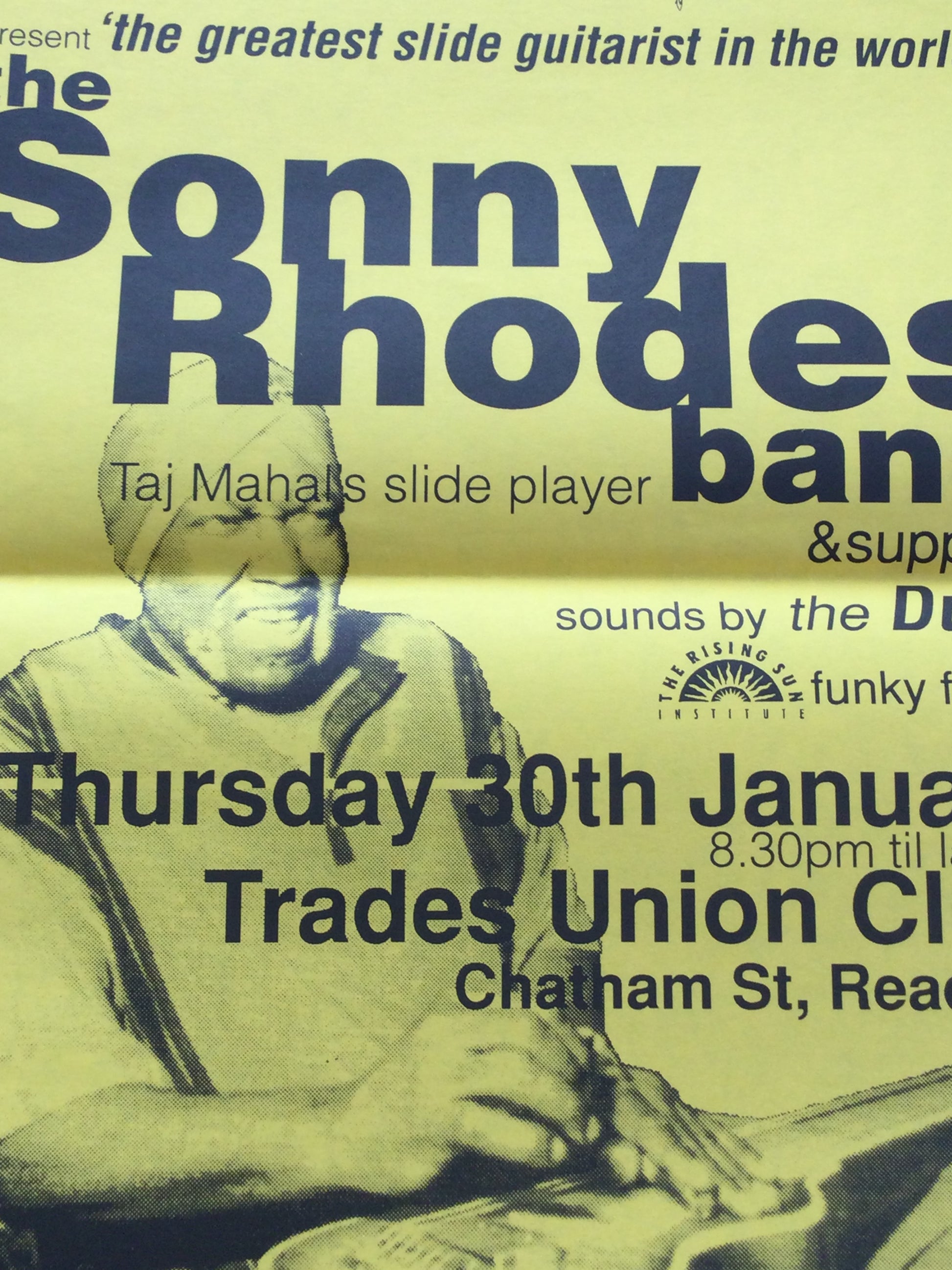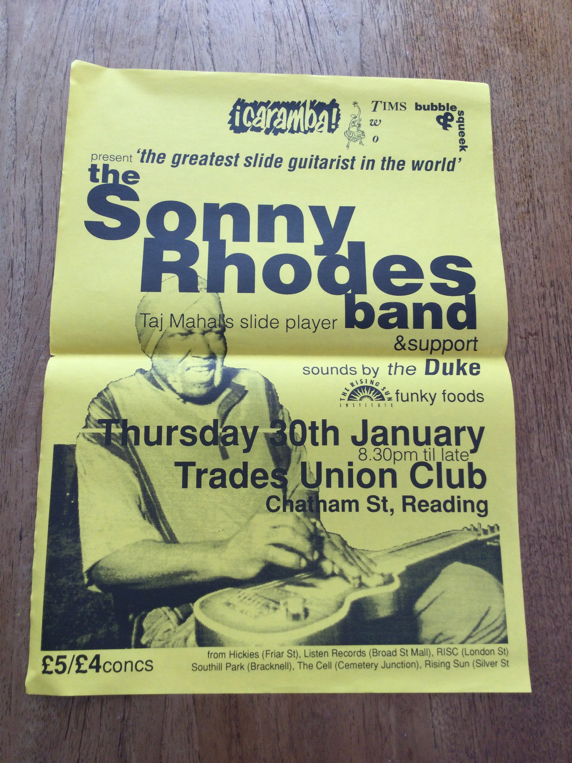 Caramba! Reading World Music Scene Memorabilia. 1990s 90s Poster. Sonny Rhodes Band Taj Mahal's Slide Player