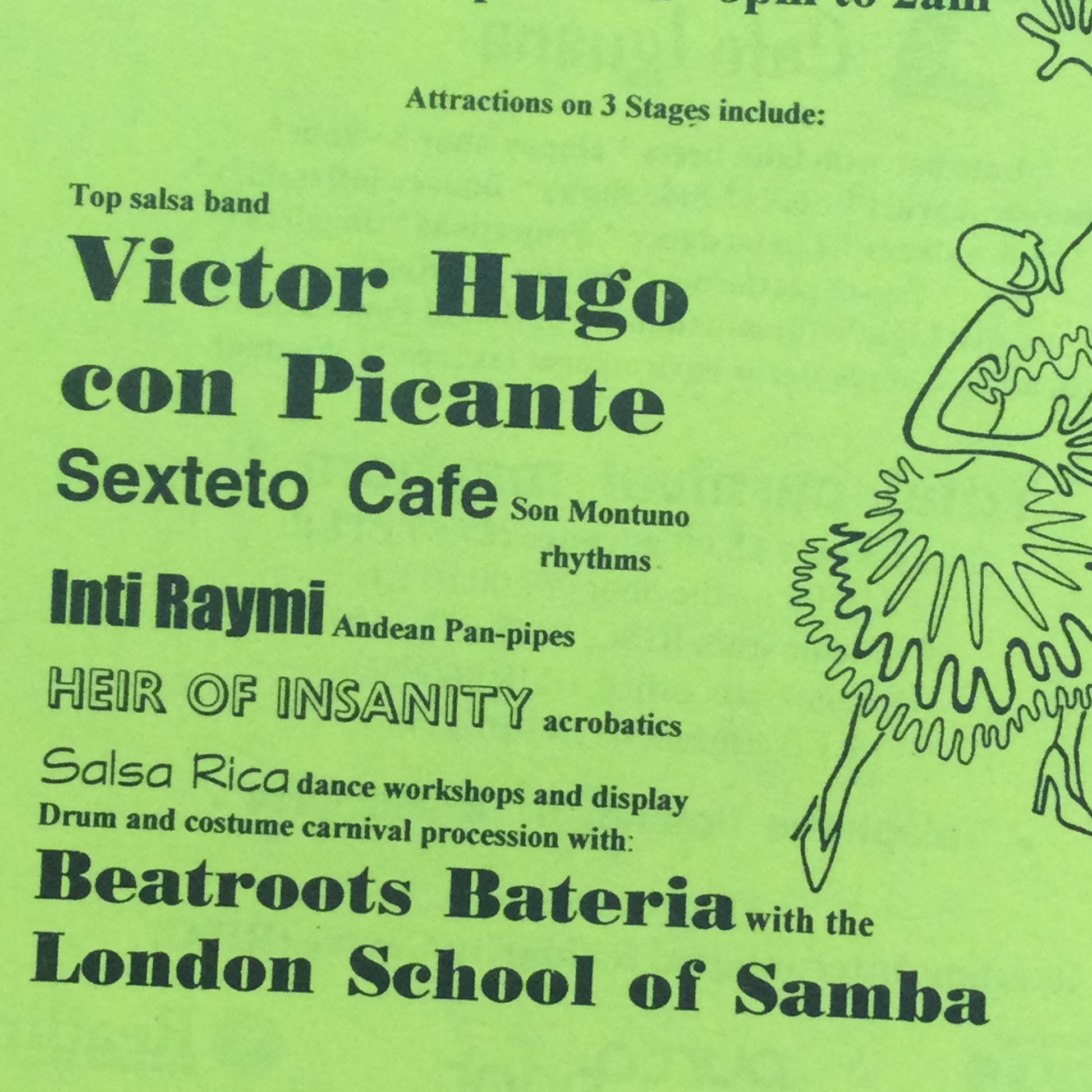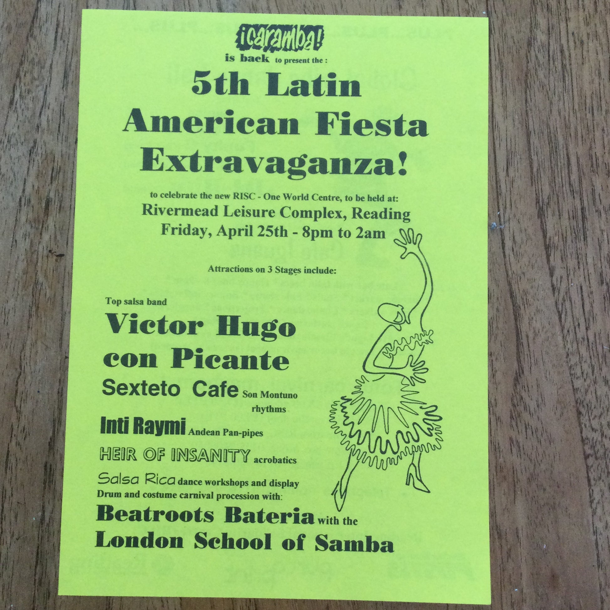 Caramba! Reading World Music Scene Memorabilia. 1990s 90s A5 Flyer 5th Latin American Fiesta Extravaganza