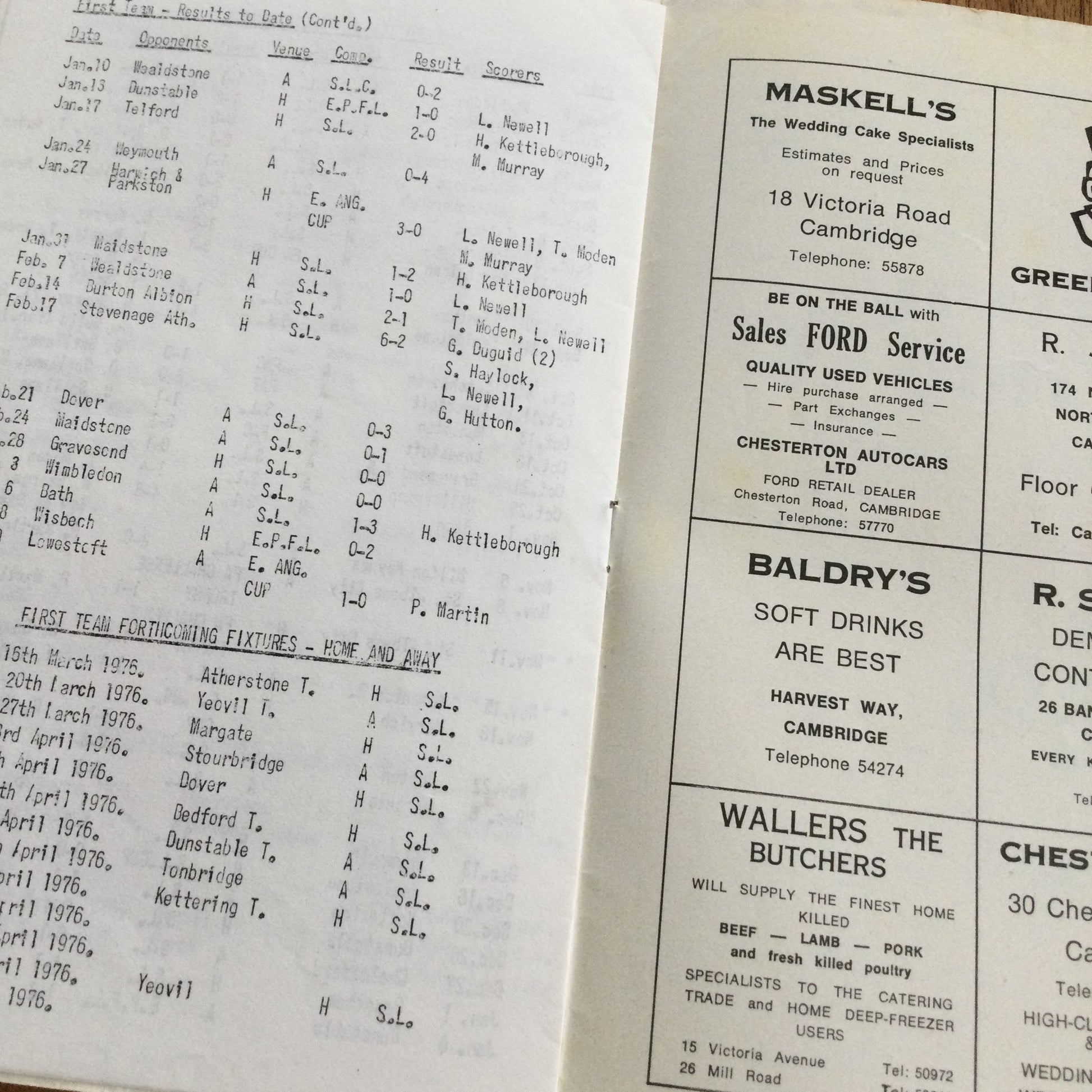 Cambridge City v Hillingdon Borough Southern League Premier Division 13/03/76 1975/76 Programme.