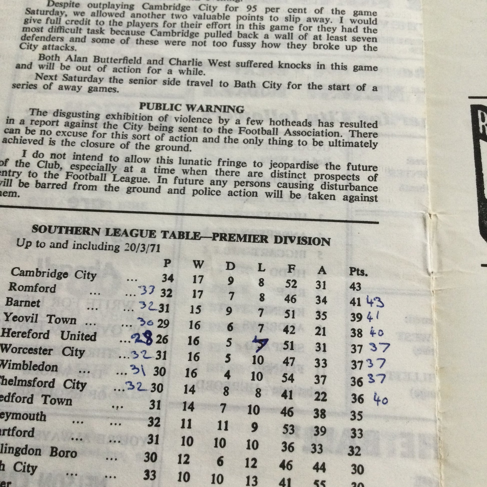 Chelmsford City v Gloucester City Southern League Premier Division 22/03/71 1970/71 Programme.