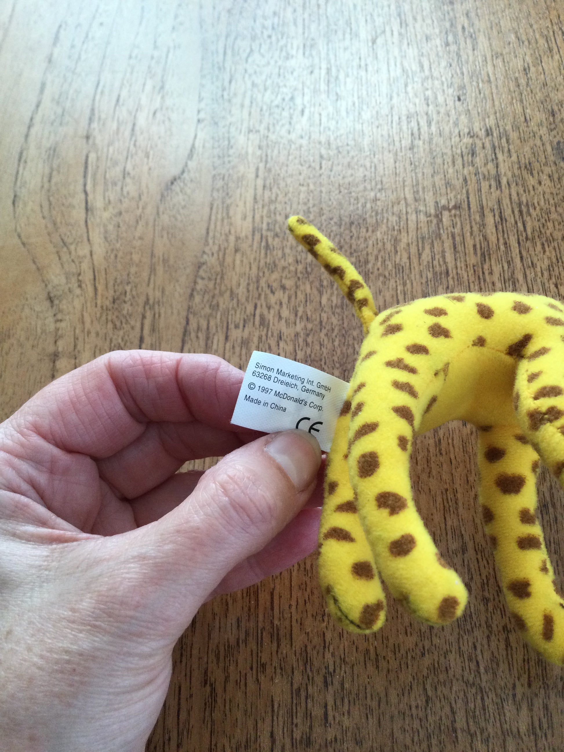 In 1997, McDonald’s partnered with Conservation International to raise awareness about endangered species. As part of this initiative, they distributed a Happy Meal toy set featuring six endangered animals in Europe. These toys were designed to educate children about the importance of protecting threatened species. The set included information about each animal and how they were being impacted by climate change. These were so popular they were followed with 'Endangered Animal Pals', one of which was this giraffe.
