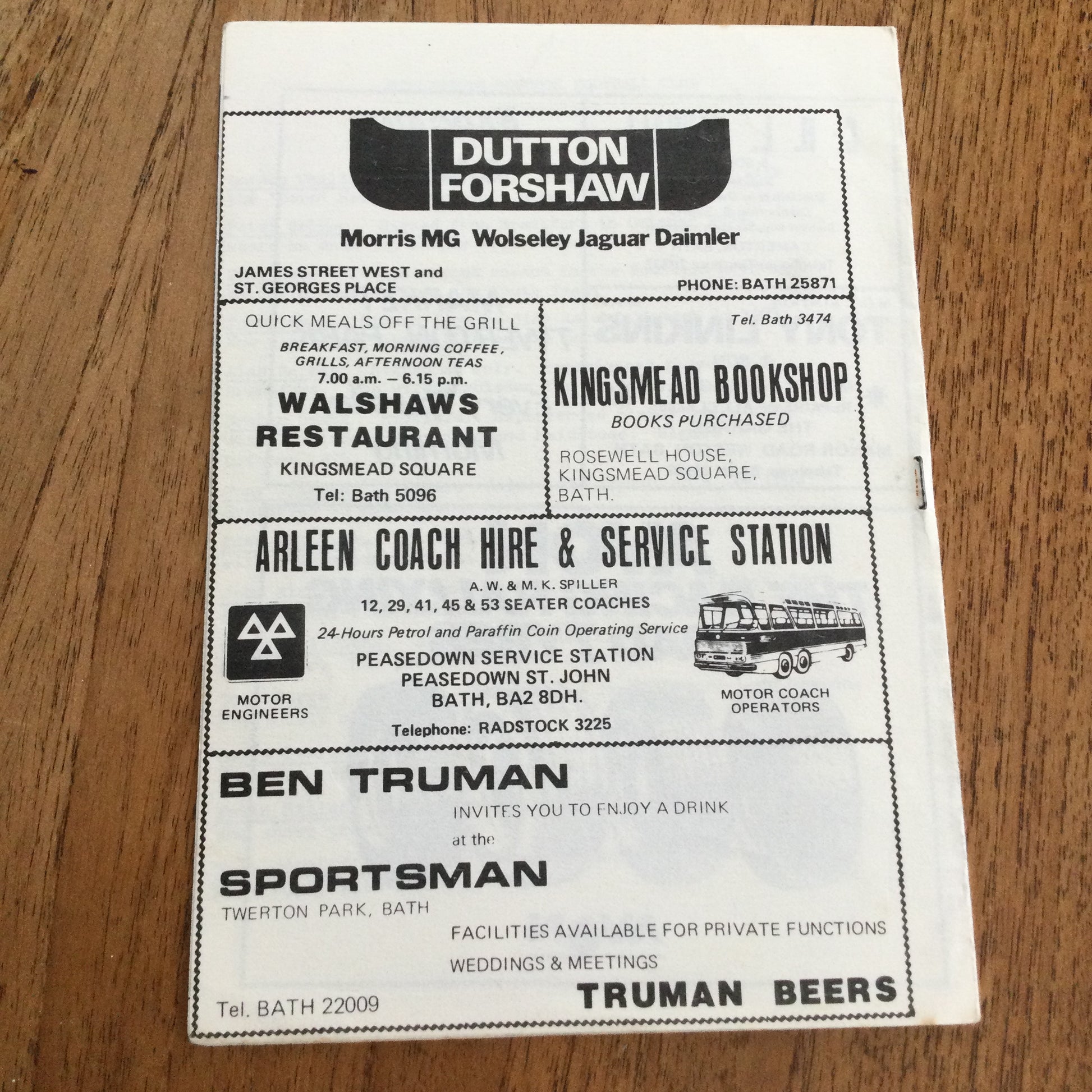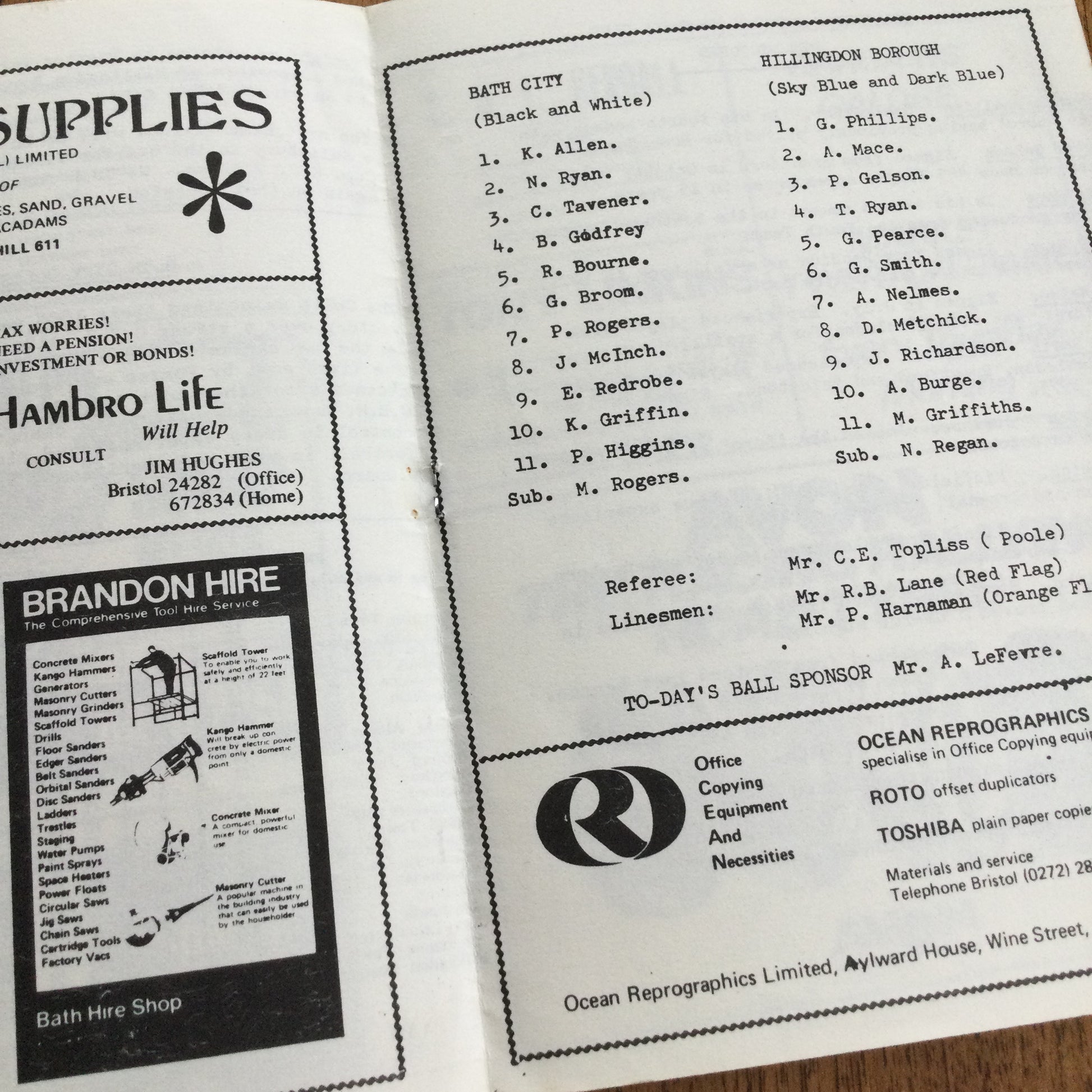 Bath City v Hillingdon Borough Southern League /11/76 1976/77 Programme.