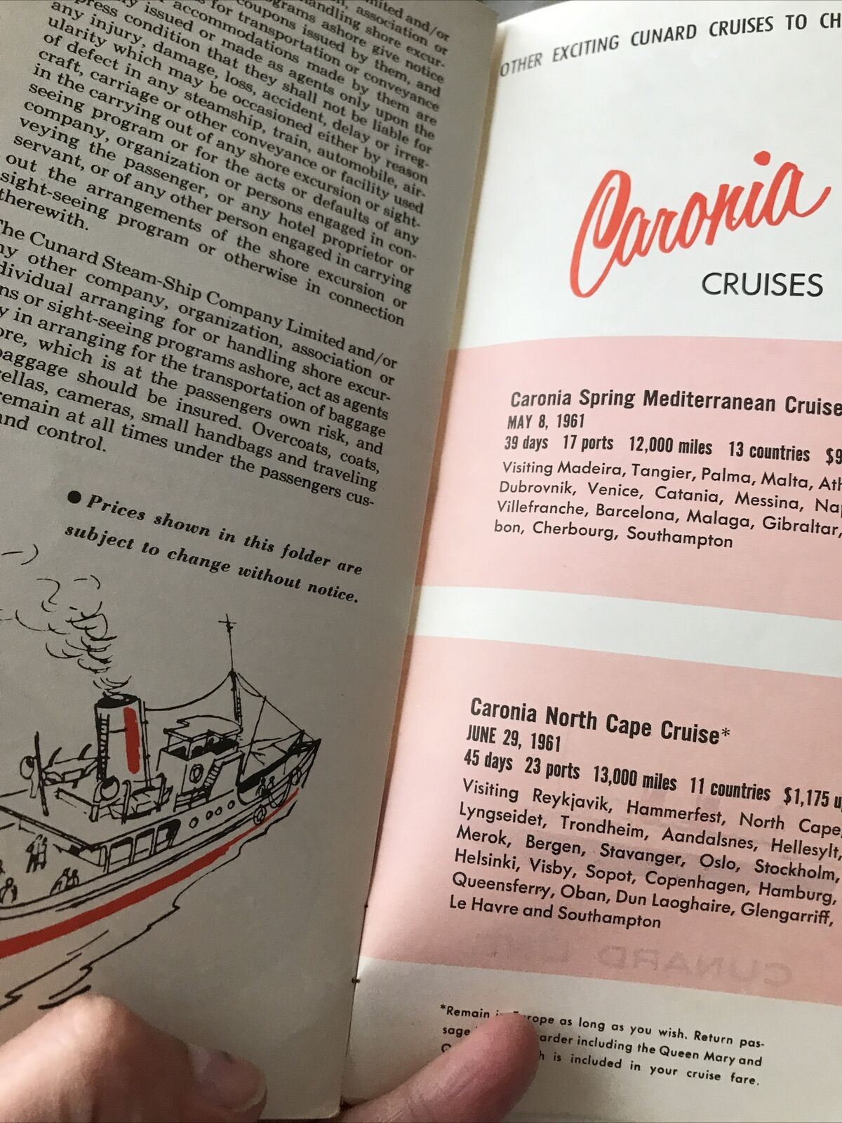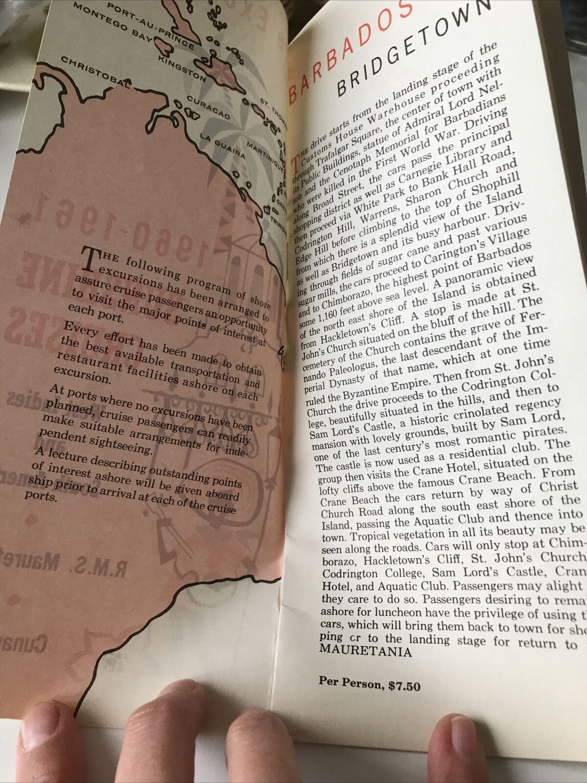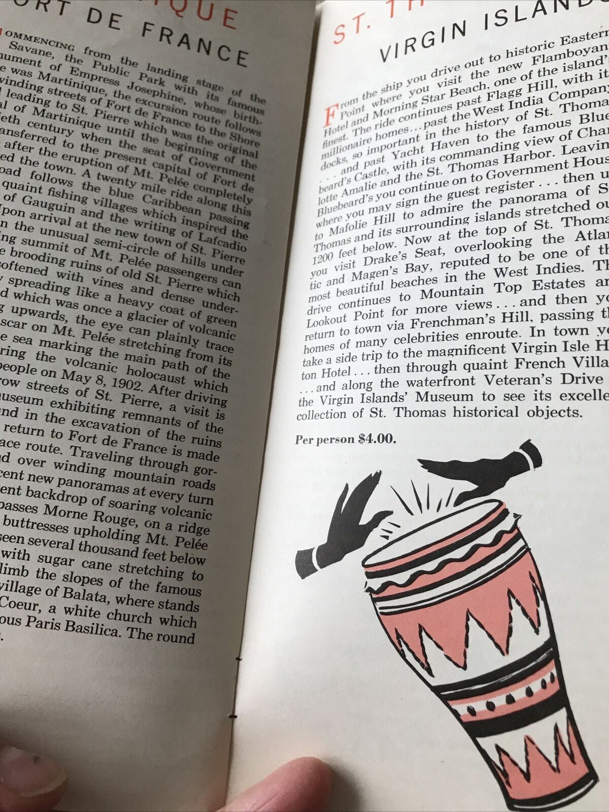 Cunard Cruise Memorabilia 1960s West Indies South America Shore Excursions Book
