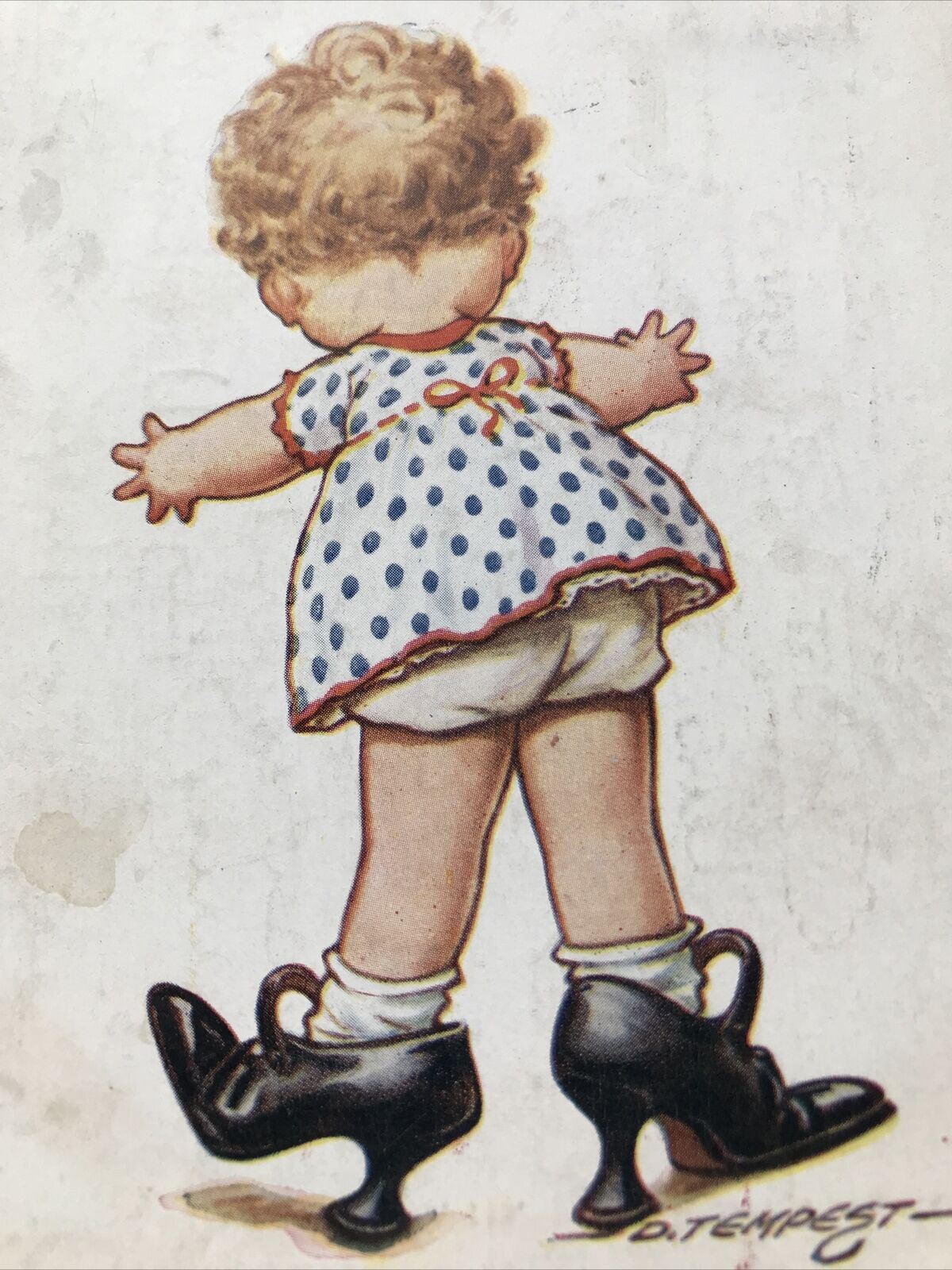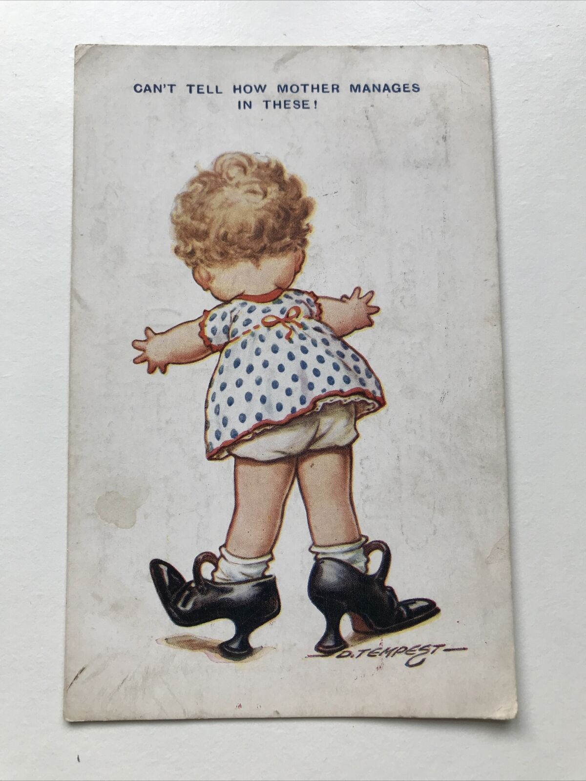 Cute Child Drawing VINTAGE POSTCARD Funny Wearing Mum’s Shoes 1920s Sent 1926.