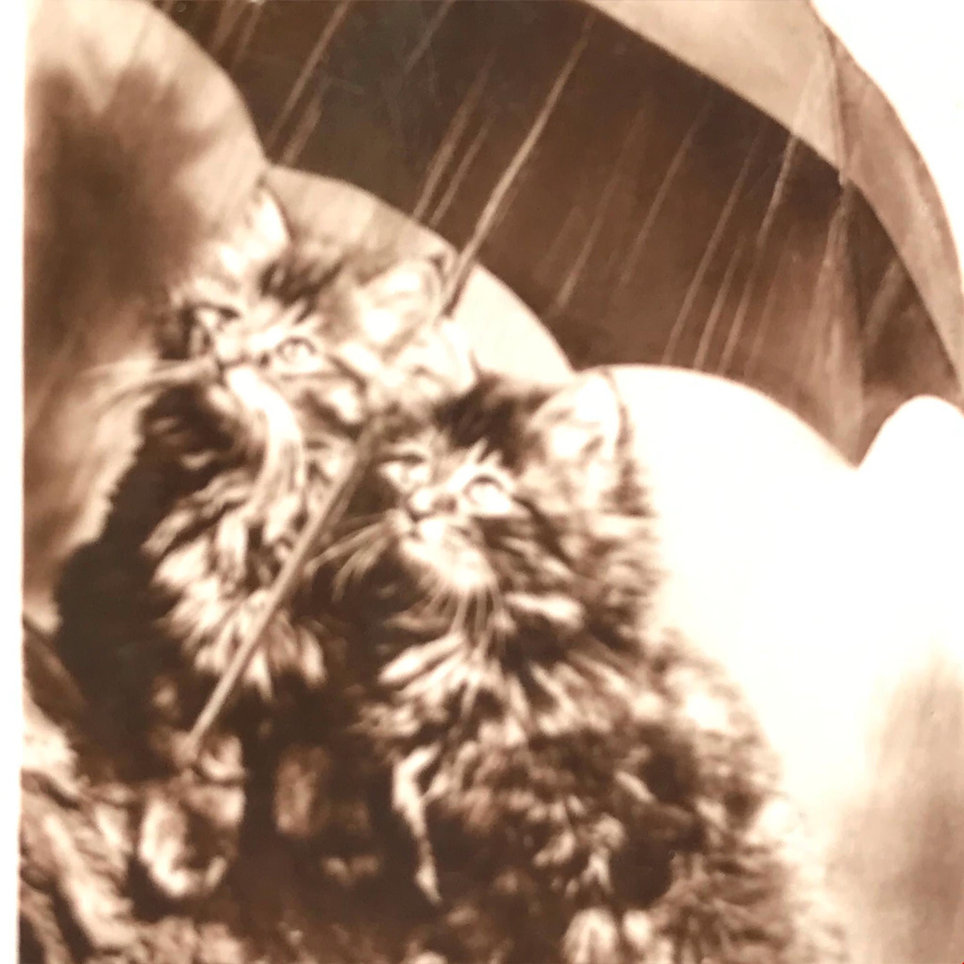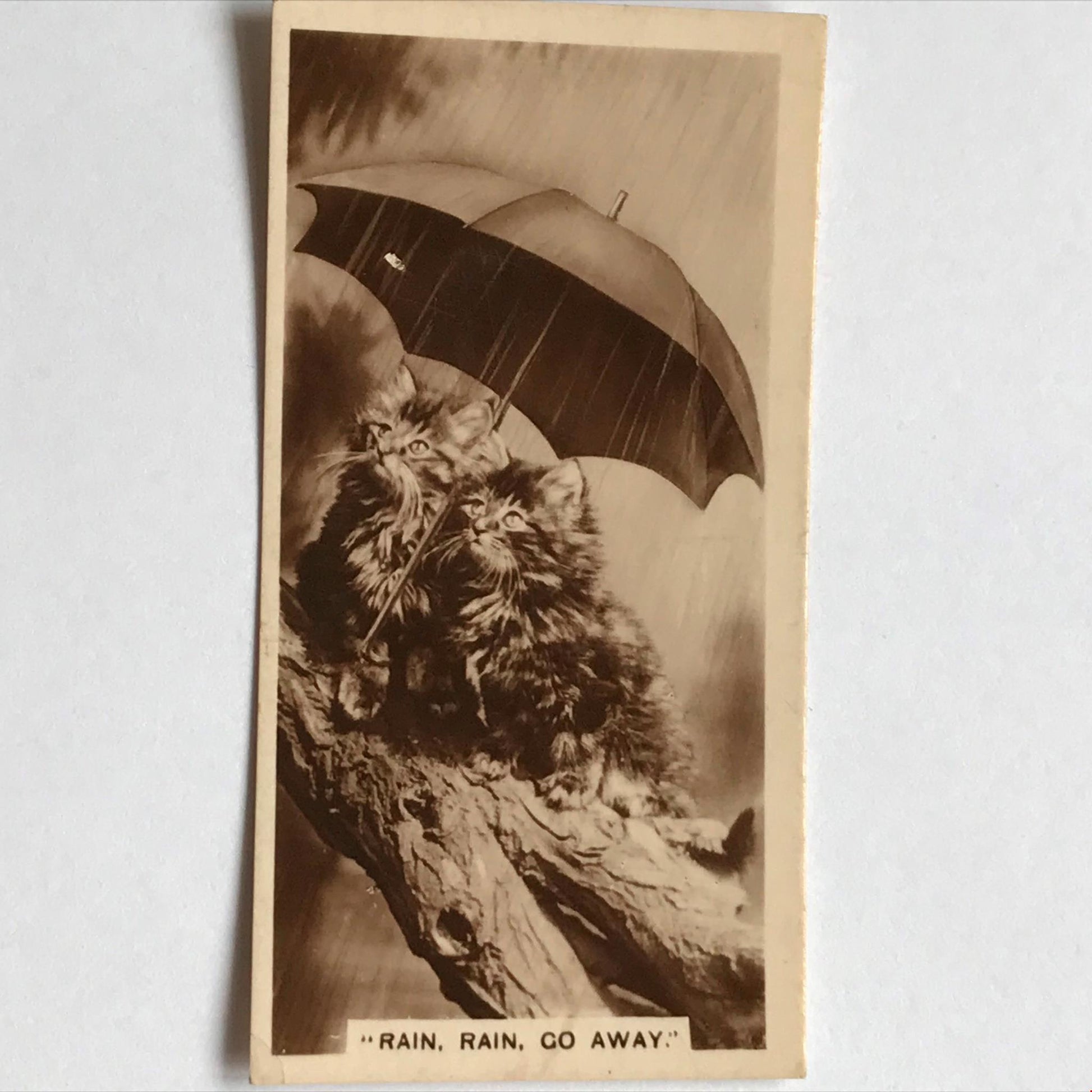 Cats under umbrella ‘Rain rain go away’ - De Reszke cigarette card - CUTE VINTAGE CAT PHOTO