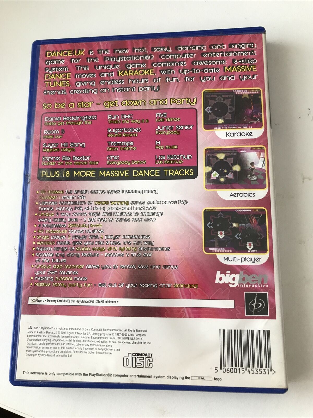 Dance UK game PS2 Play Station 2 3+ Daniel Beddingfield Run DMC Sugarbabes Chic
