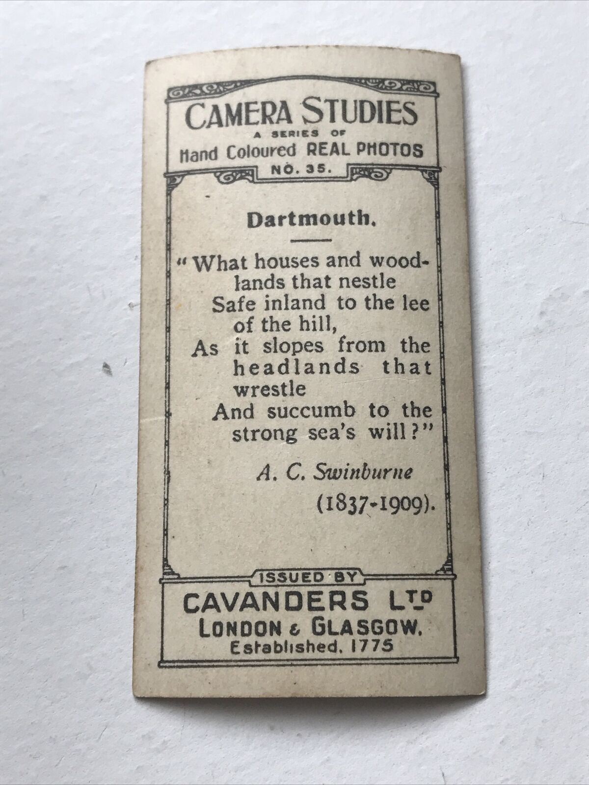 DARTMOUTH Hand Coloured Photo Cavanders Cigarette Card. Camera Studies