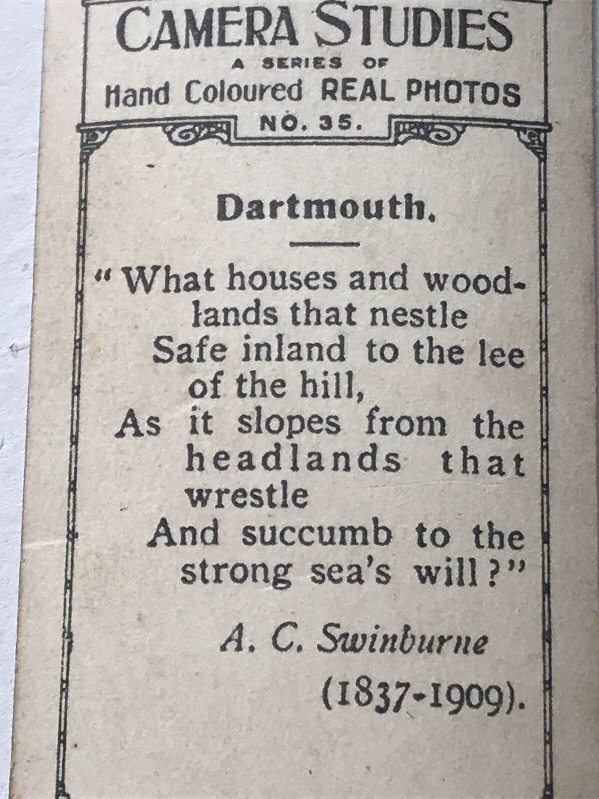 On the back there is a poem by A C Swinburne