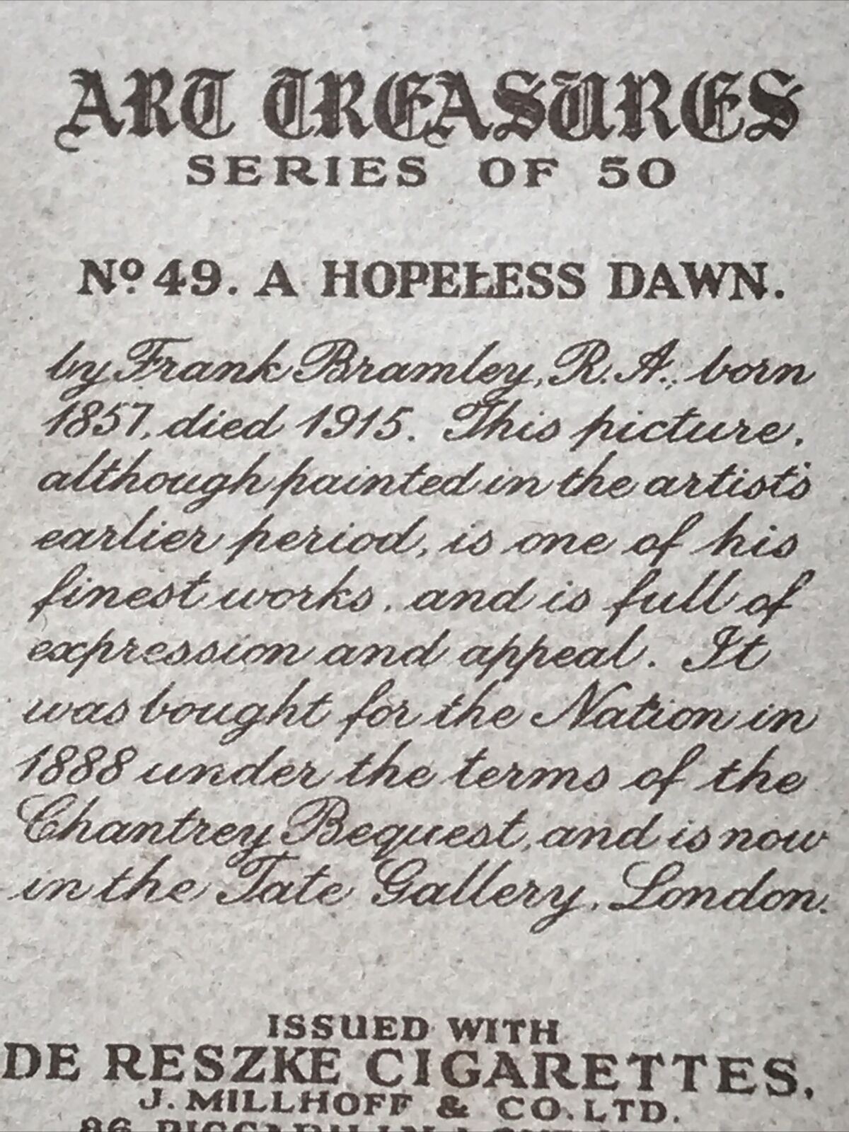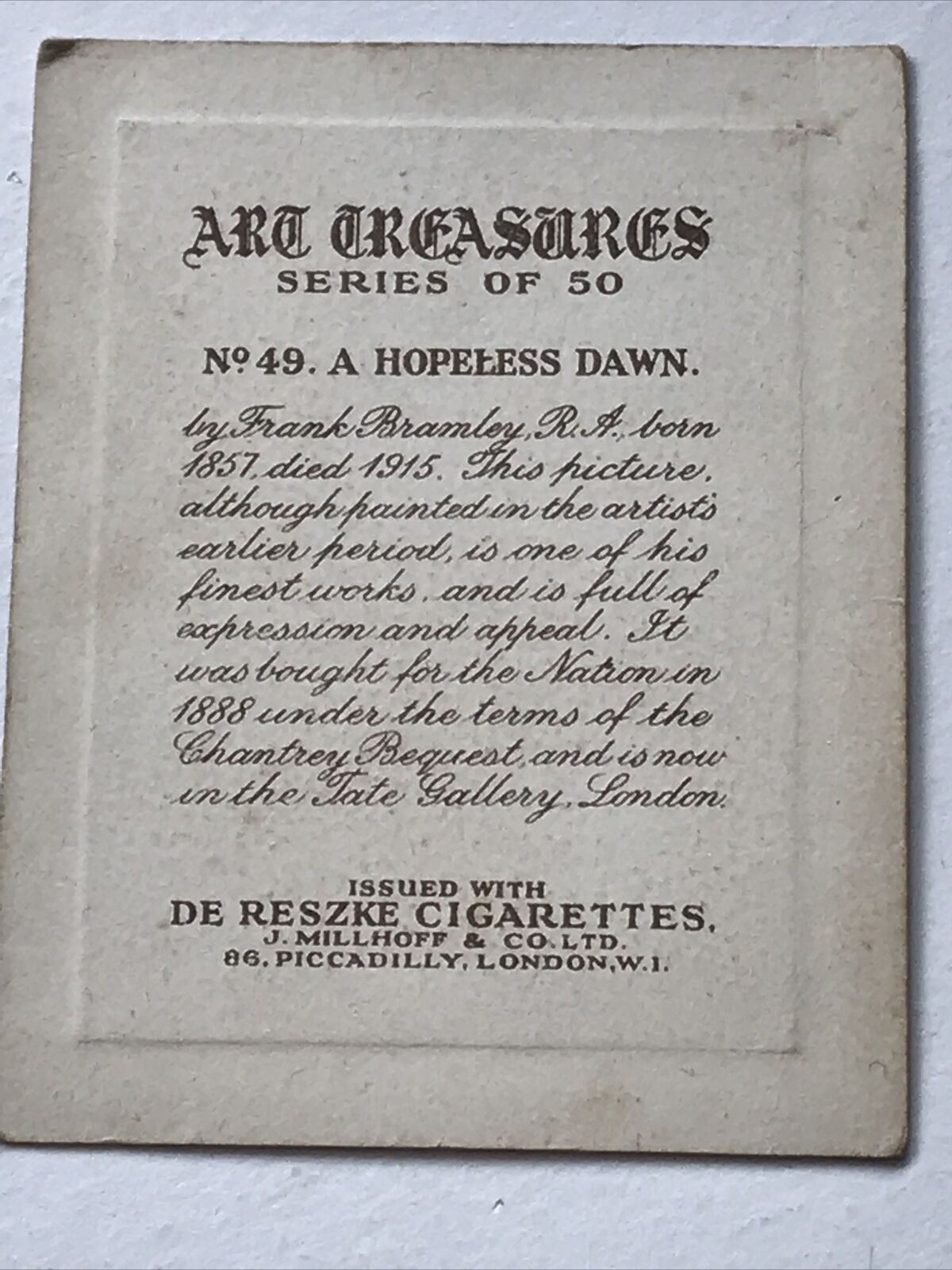 De Reszke Cigarette Card #49 A HOPELESS DAWN, Frank Bramley RA ART TREASURES