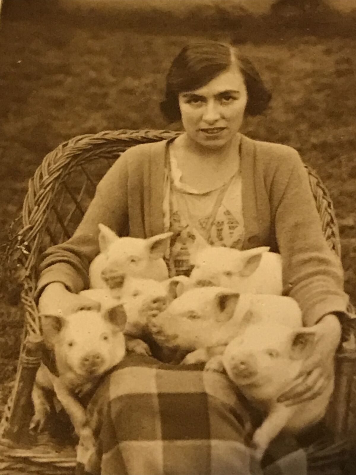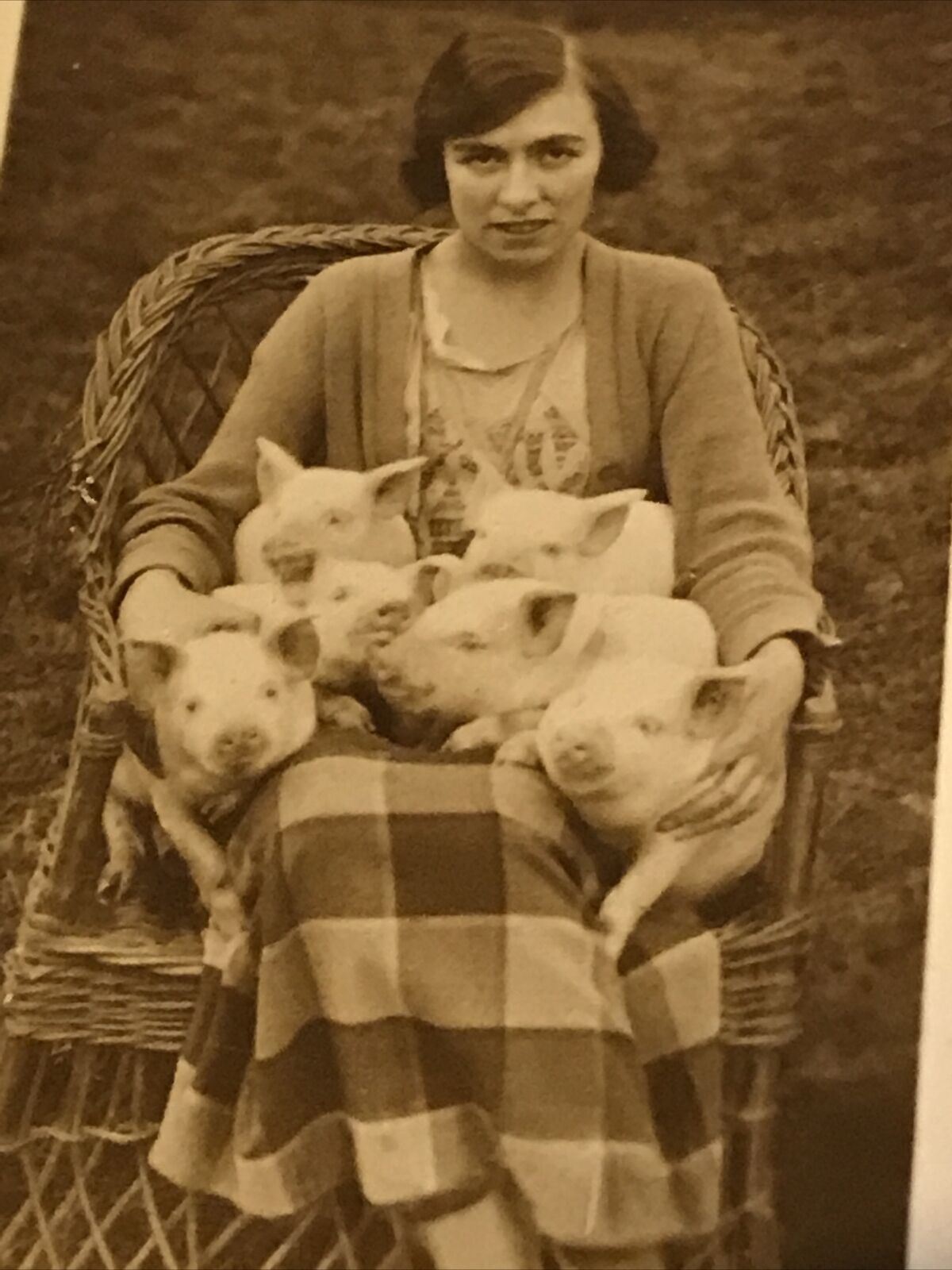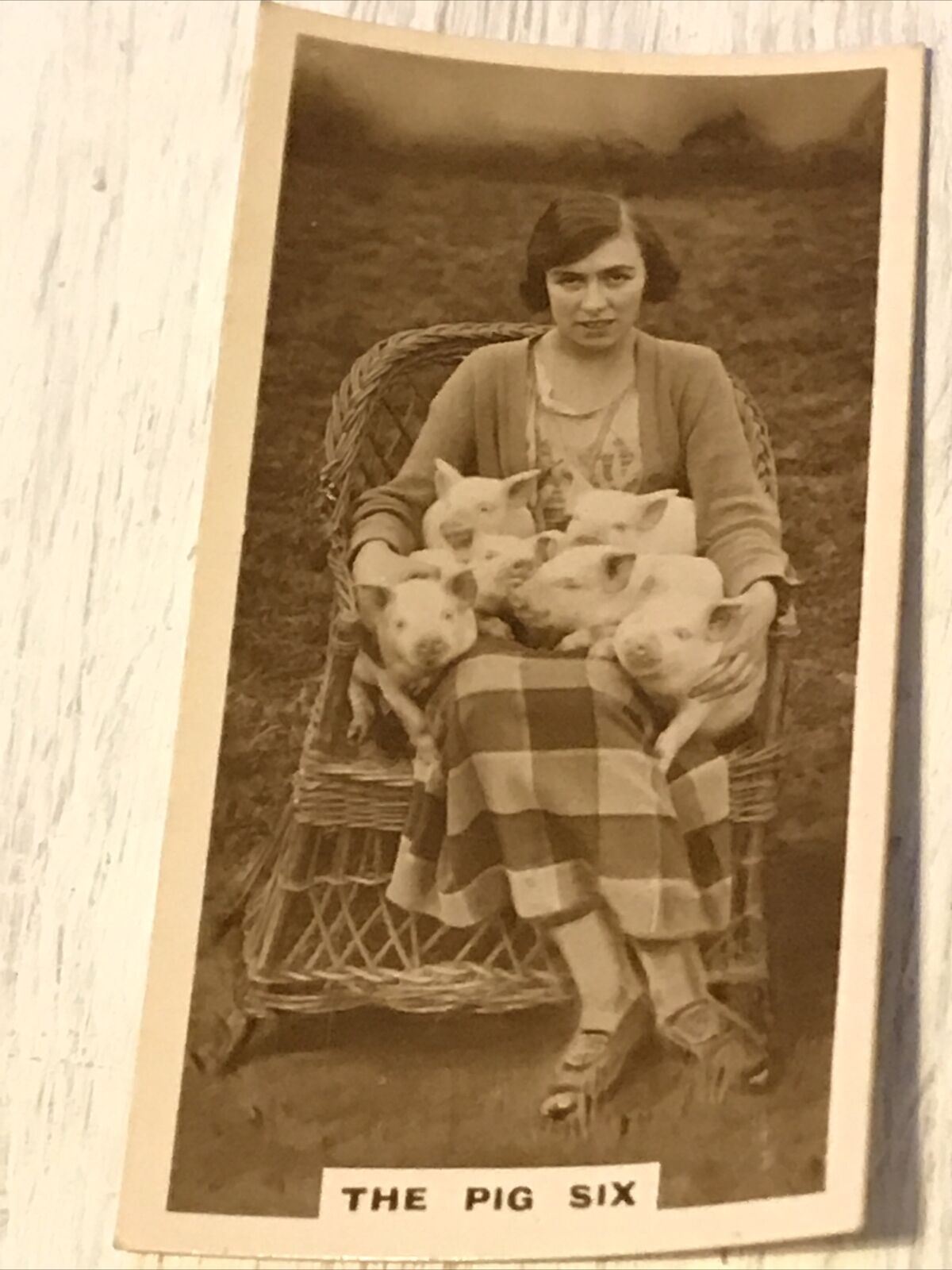 De Reszke Cigarette Card Series 2 no.21 The Pig Six. Women & piglets photo